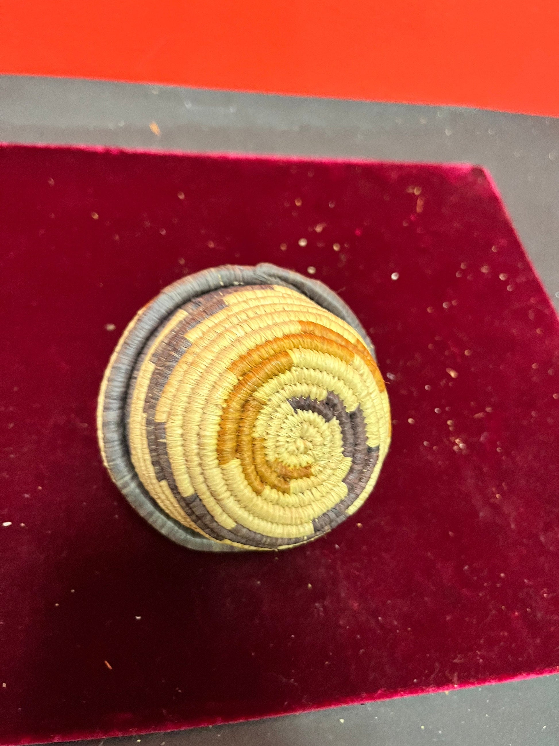 A 4 inch high Navajo southwestern woven lidded basket fabulous condition