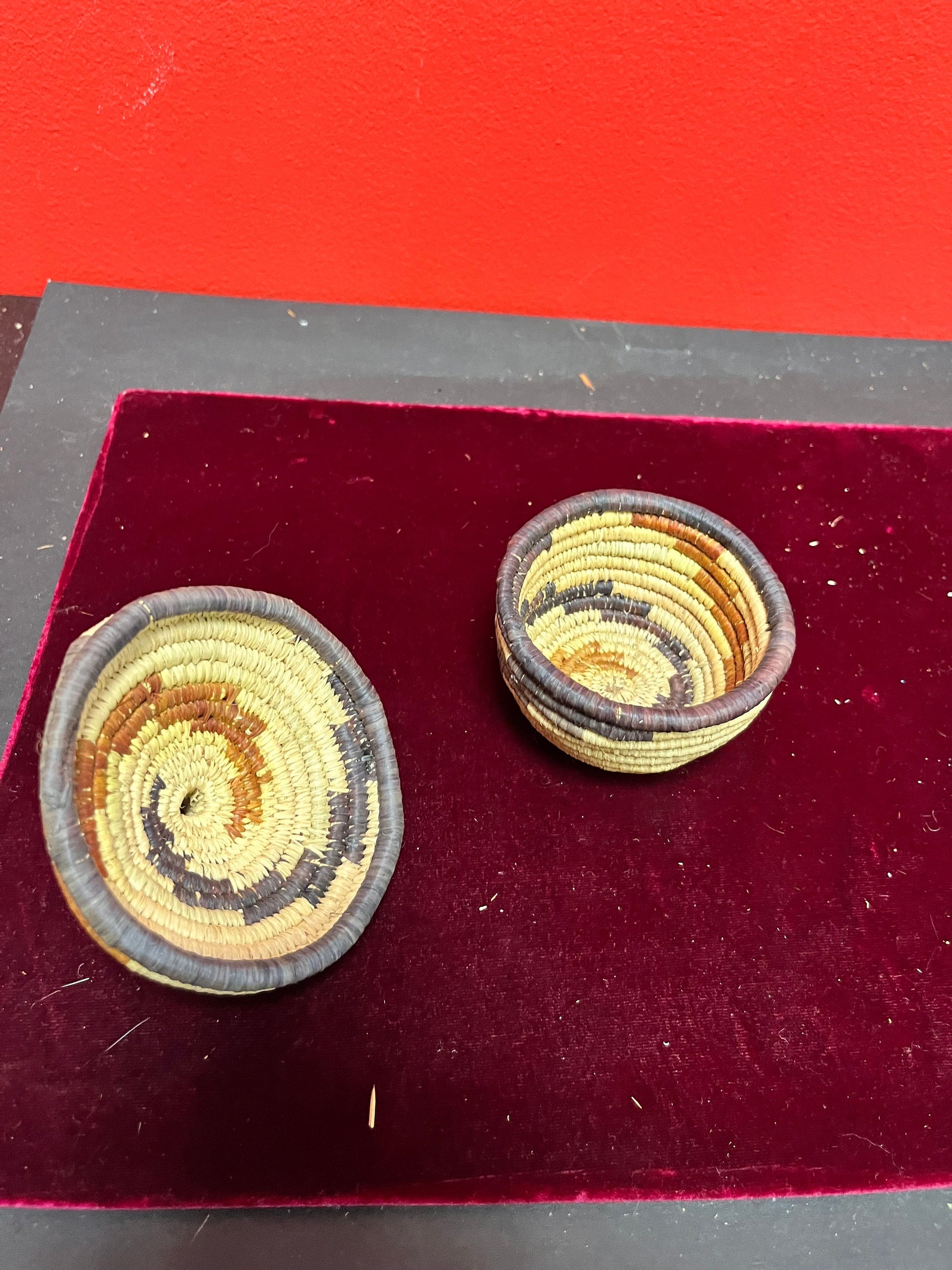 4 inch high Navajo southwestern woven lidded basket fabulous condition