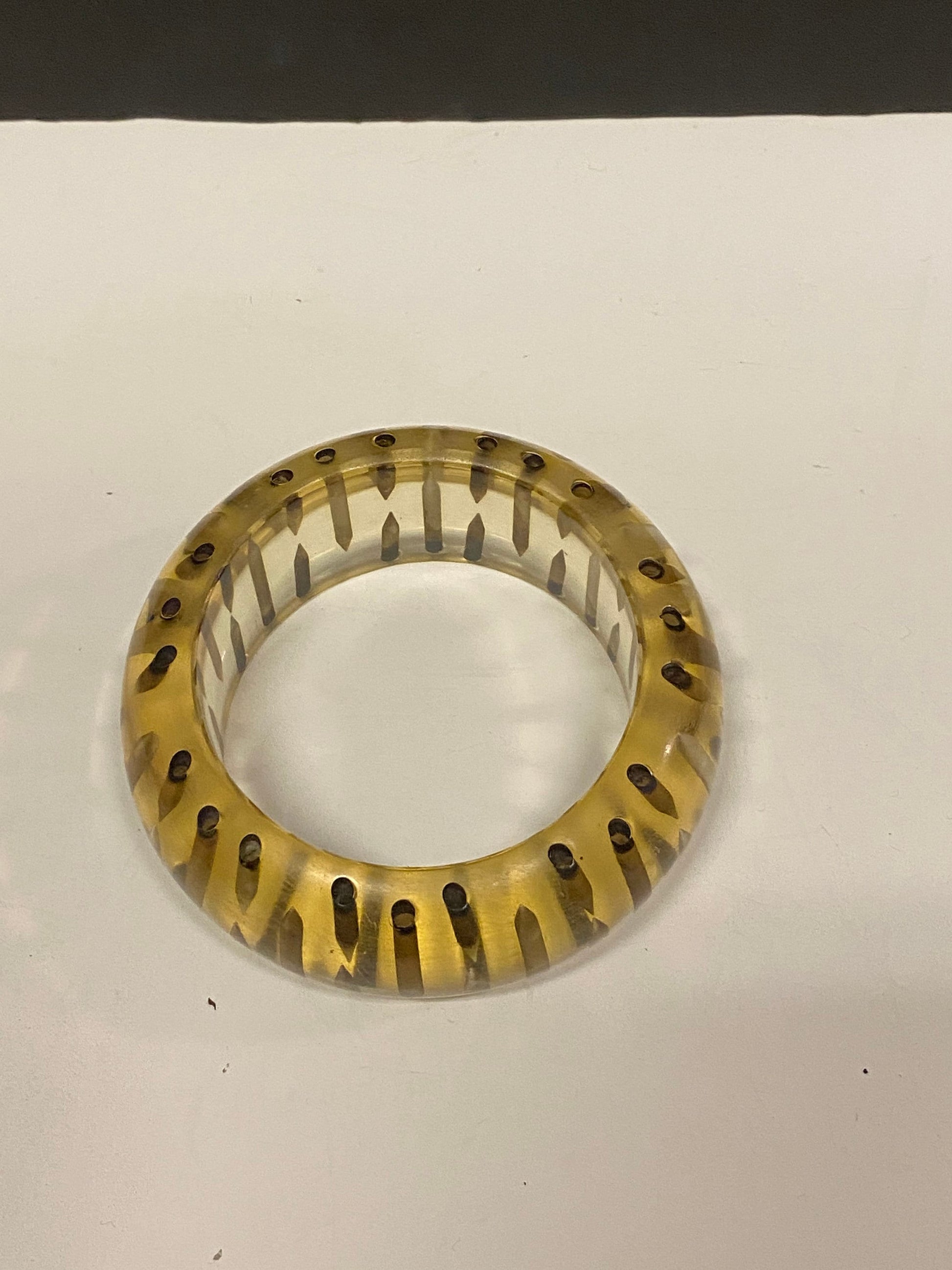 A 4 inch with 3 inch inside diameter Lucite and porcupine quill bangle bracelet mid century magical Impressive piece