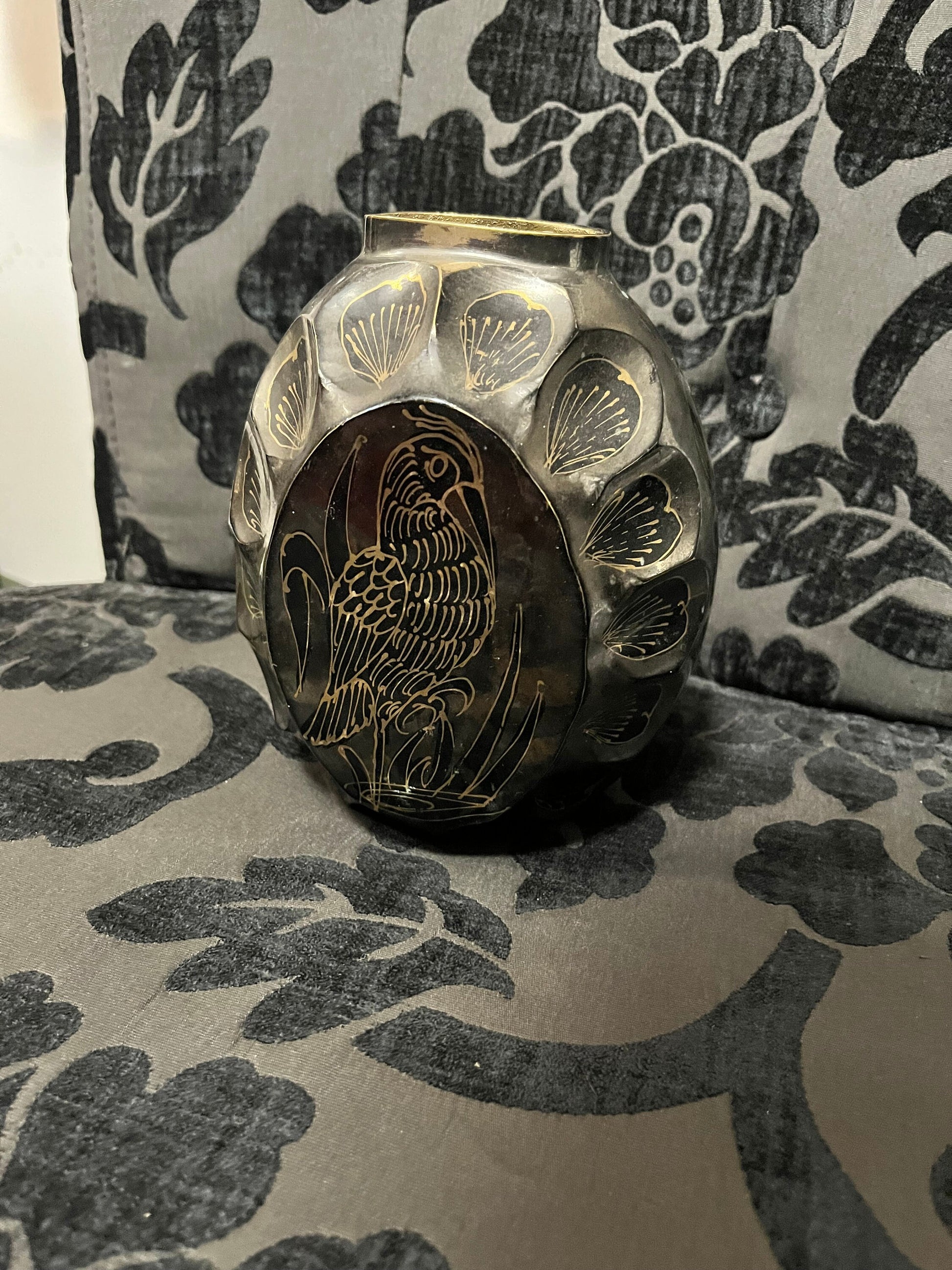 7 inch Indian heavy superb brass vase great imagery of peacock wow