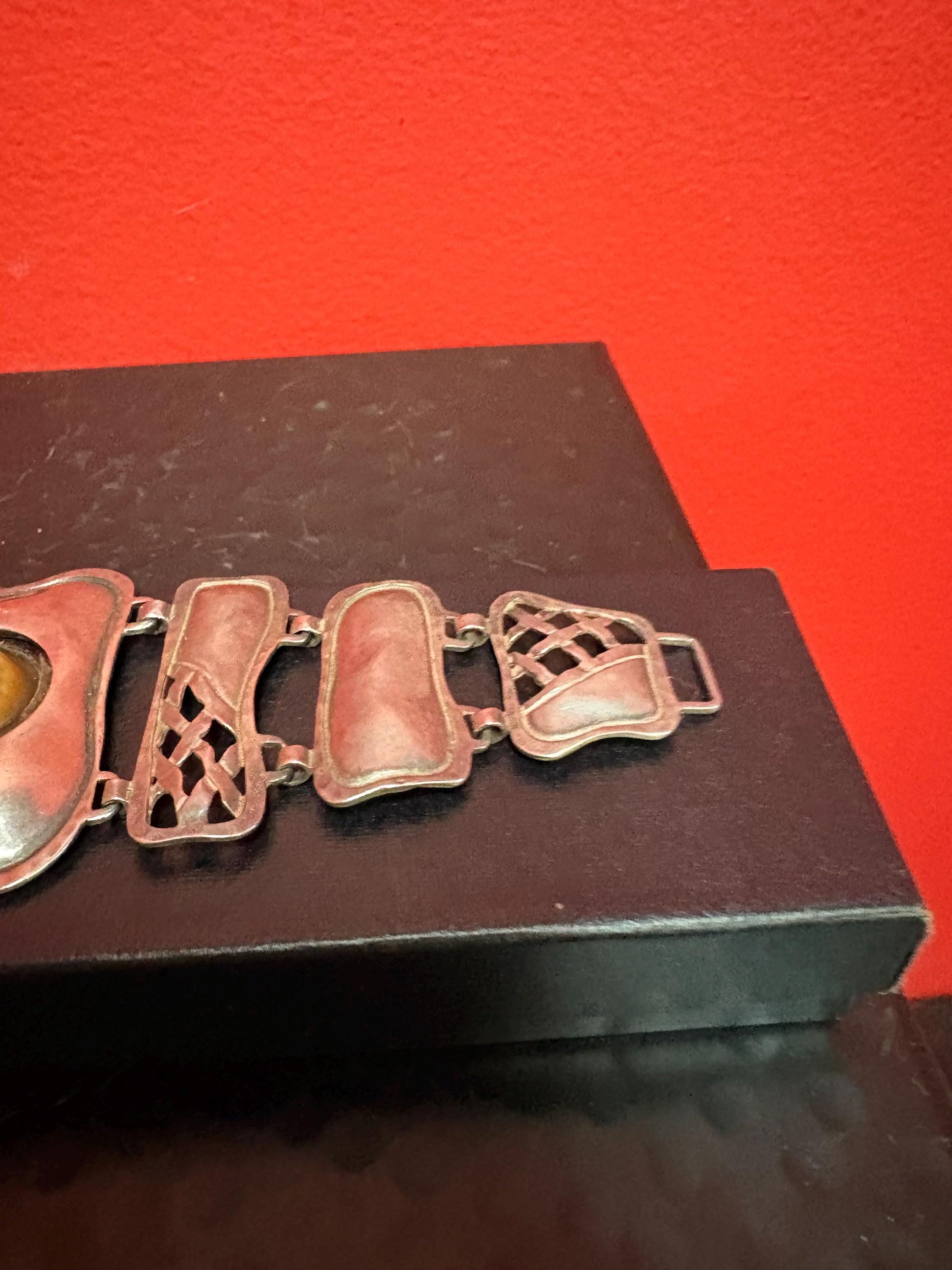 A 7 inch long stunning art nouveau signed sterling silver bracelet with cartouche wonderful quality antique beauty - B