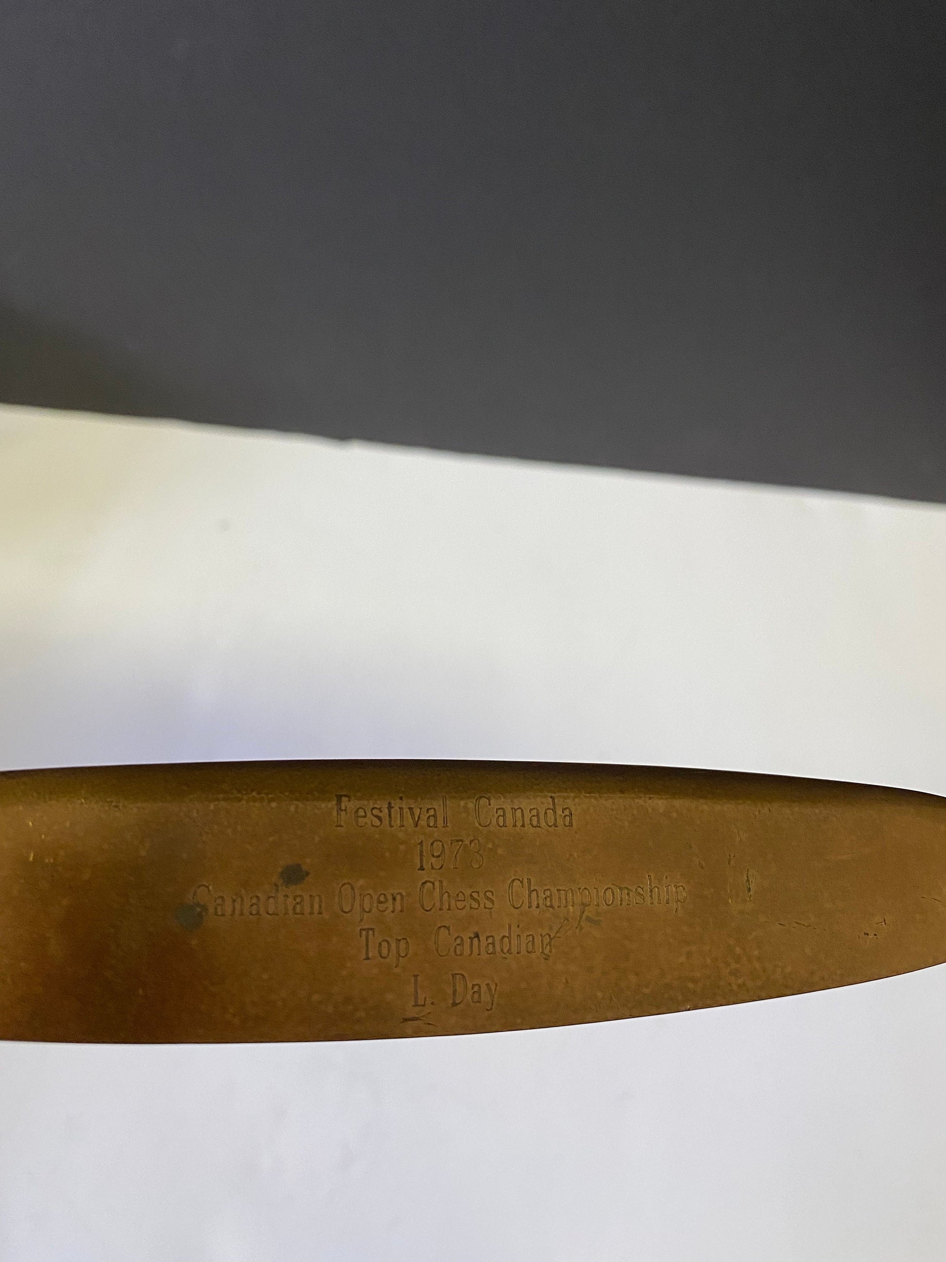 A Absolutely stunning 12 inch bronze chess trophy from my personal collection signed Inscribed on the back great piece