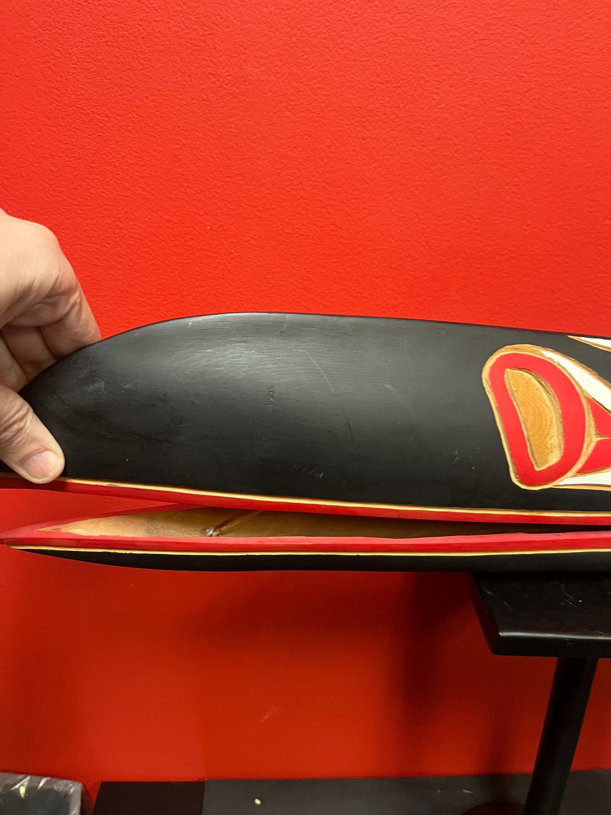 Beautiful 28 inch long stained cedar indigenous first nations Pacific northwest Coast transformation paddle plaque - wow