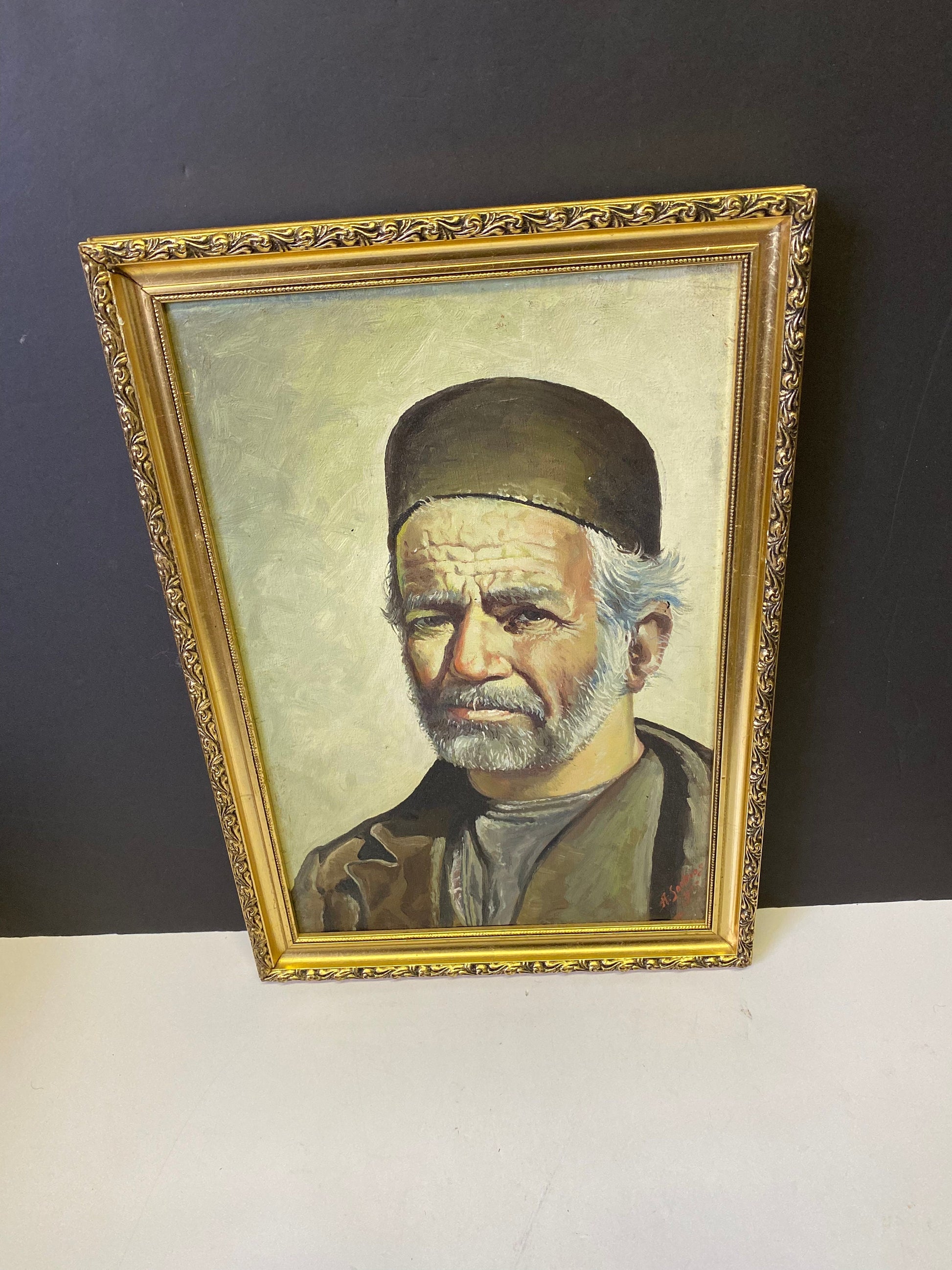 A Fabulous 17 x 12 inch gilt framed Arabic oil portrait on canvas signed H . Sookias 1973 great detail and presence rare piece