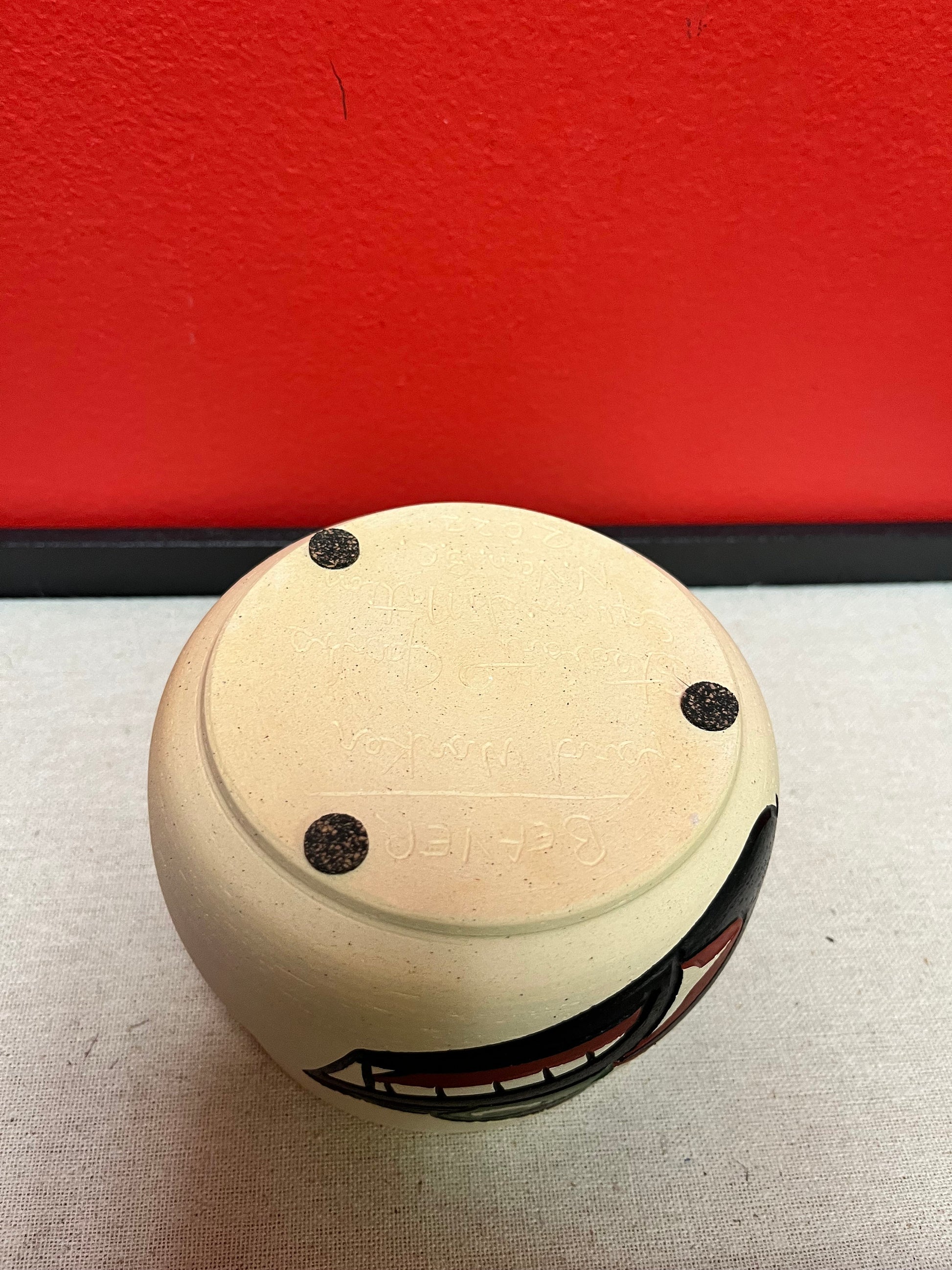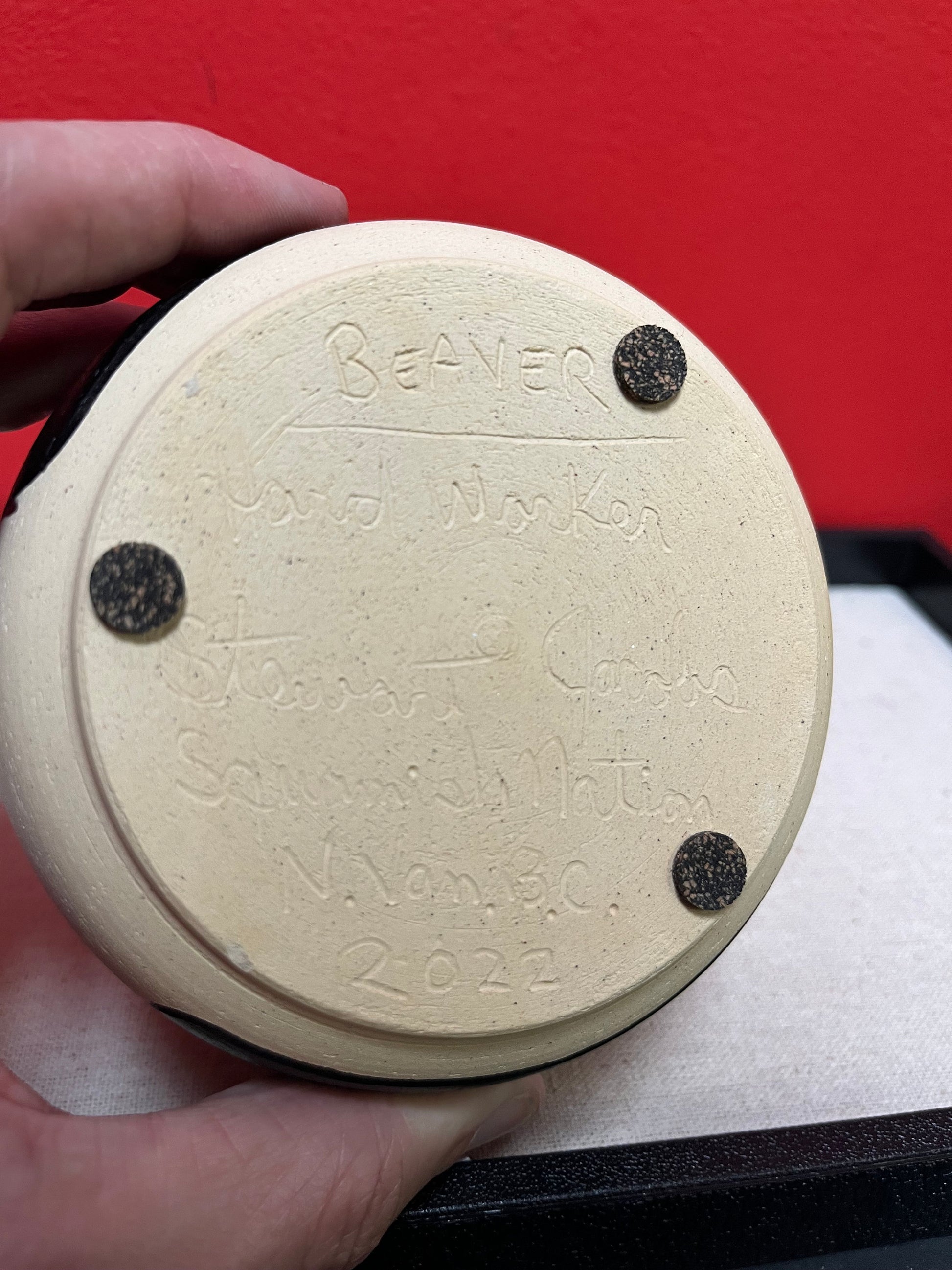 A Fabulous 3 1/2 by 4 1/2“ wide Indigenous First Nations pacific northwest coast, Stewart Jacobs pottery beaver bowl wonderful quality