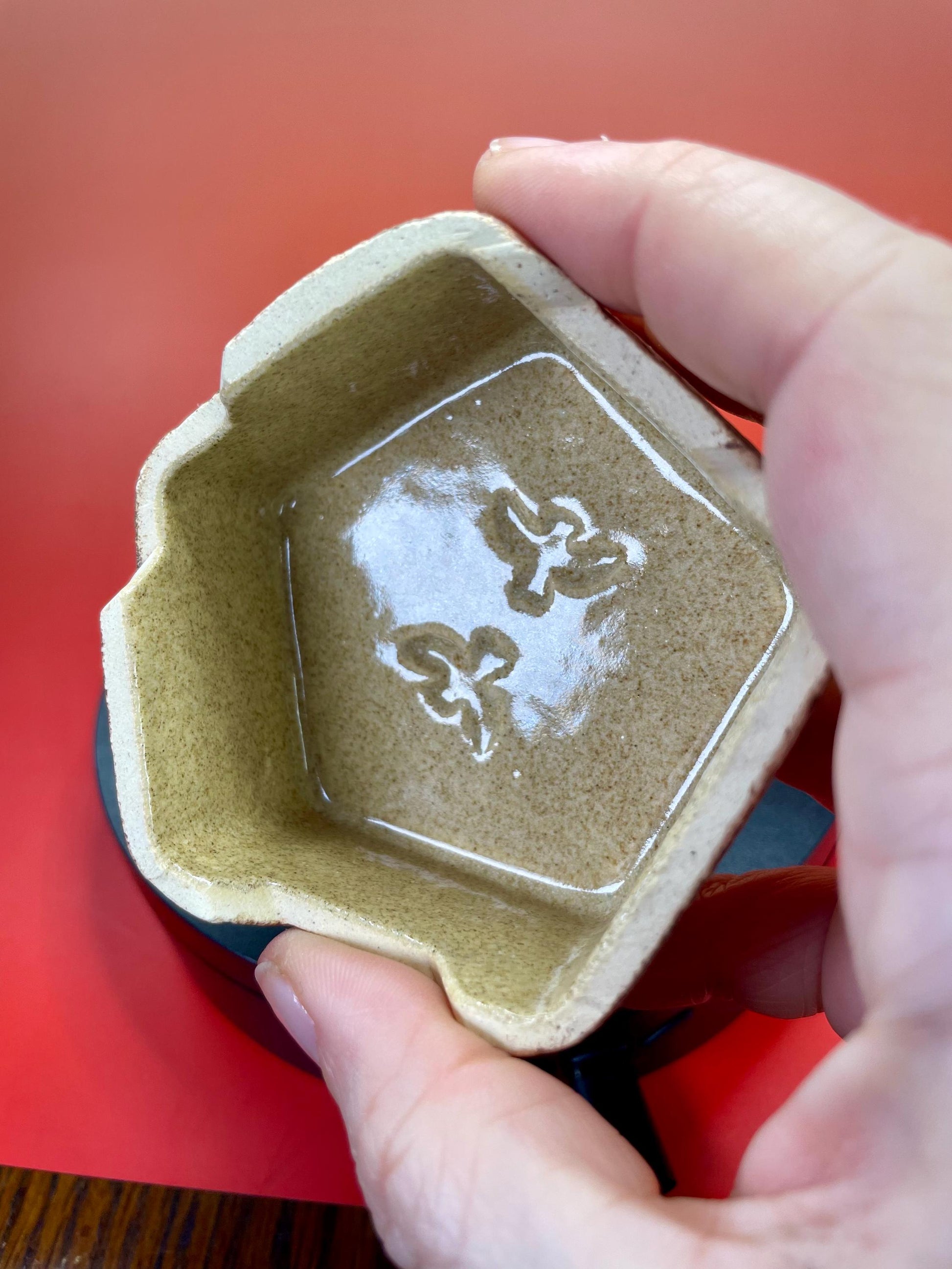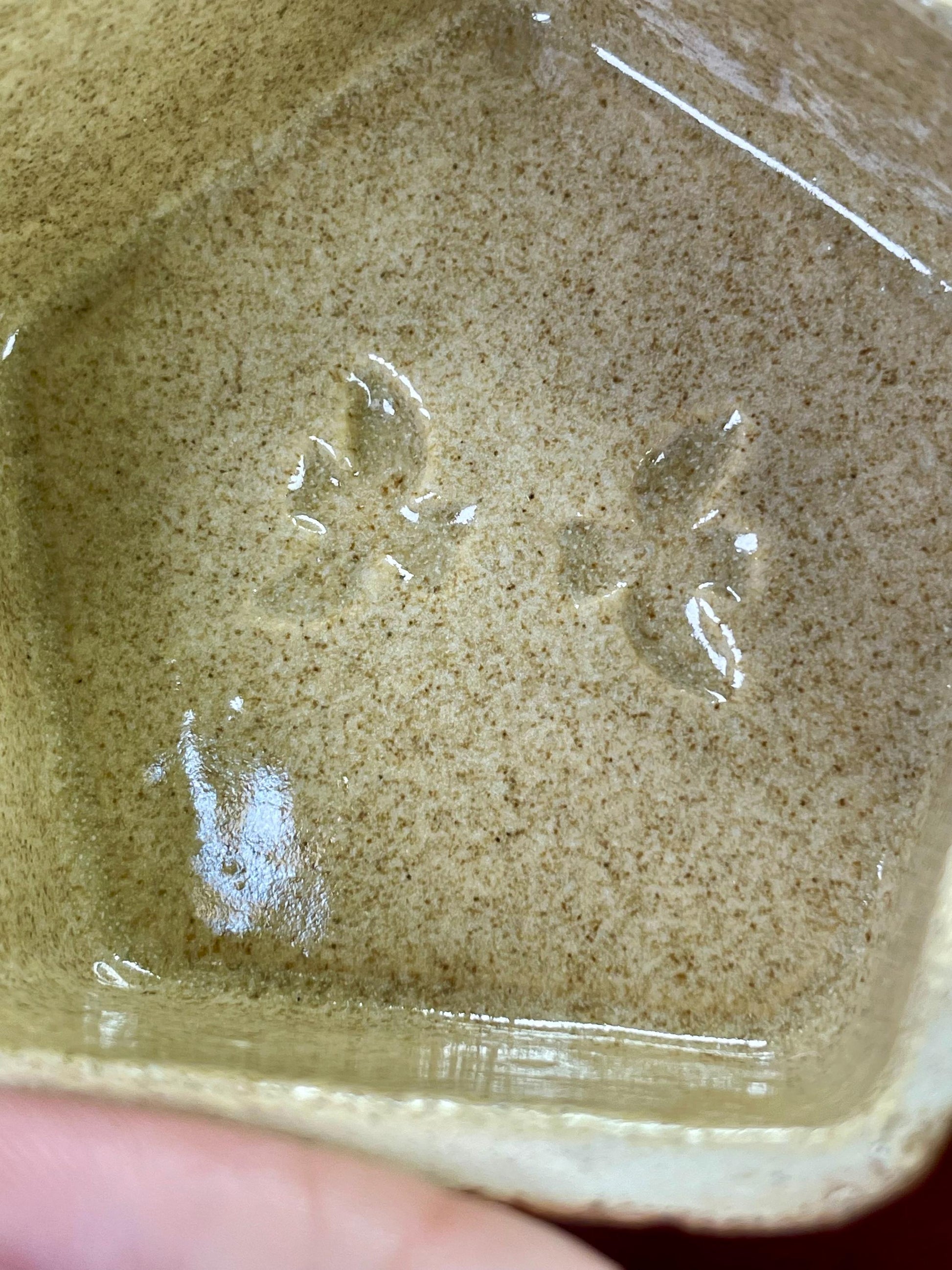 Beautiful glaze and technique. Felted bottom so wont scratch surfaces