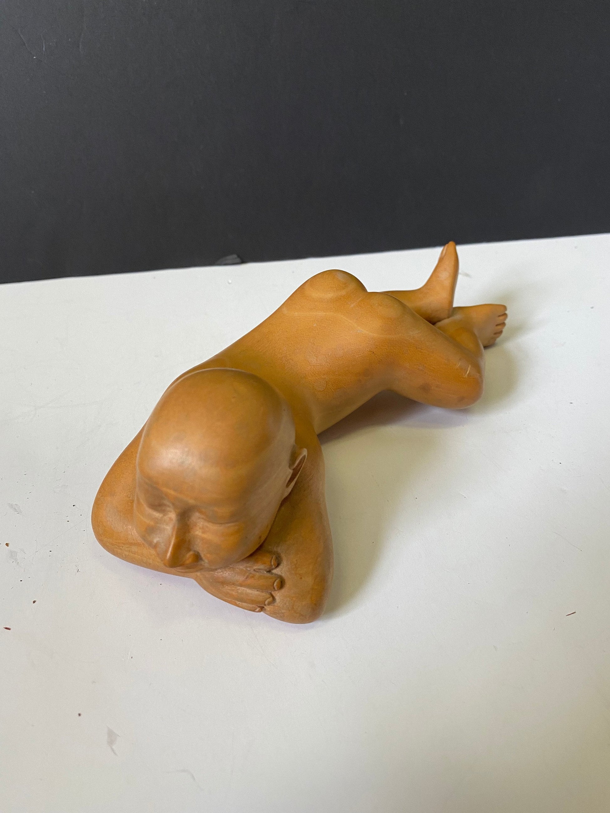 A Fabulous older Indonesian Carved statue of a man reclining Top notch Carving and detail Unbelievable piece