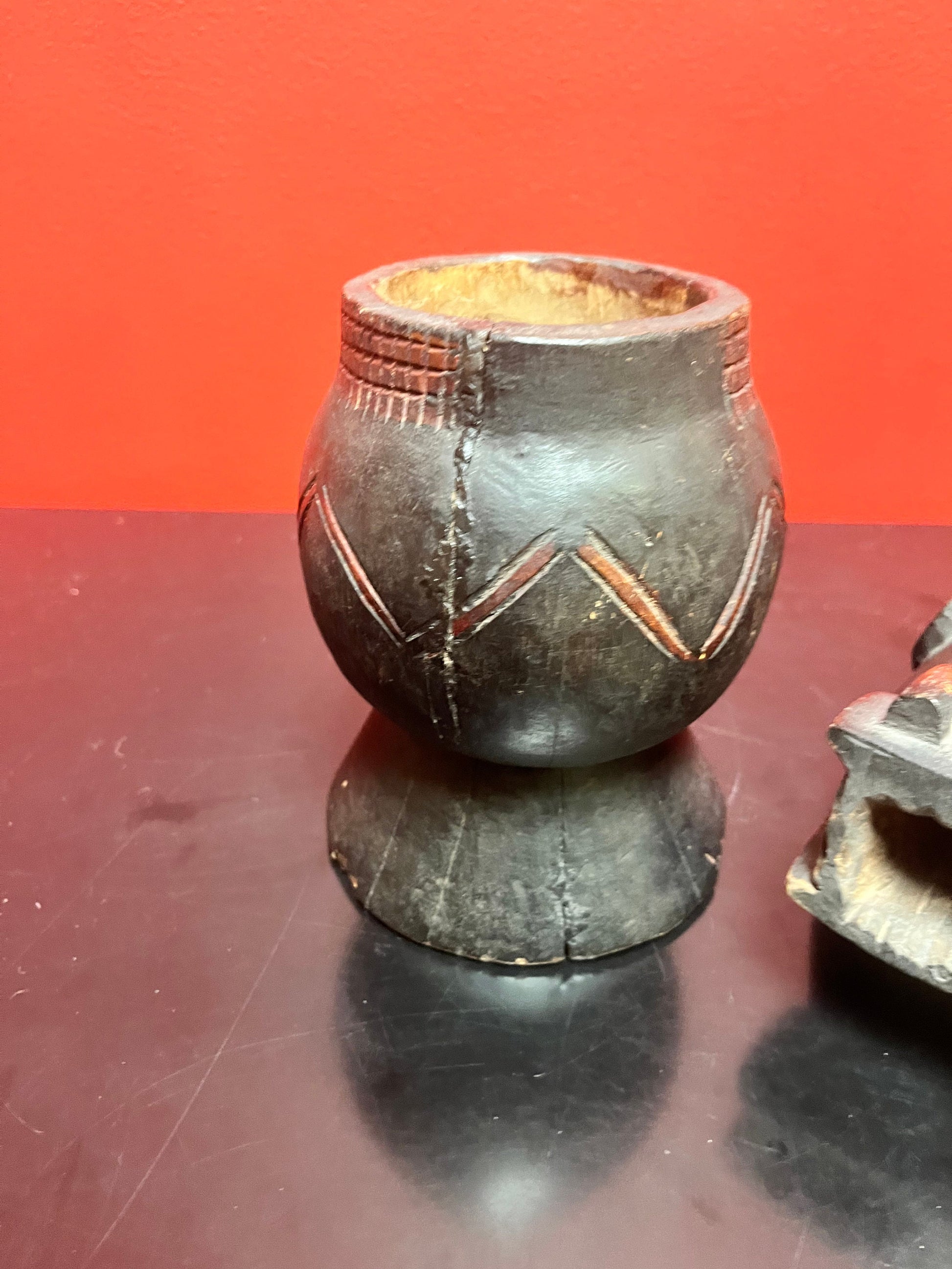 Fabulous rare antique African figural carved box wonderful patina, and facial expression beautiful piece of African history - 9