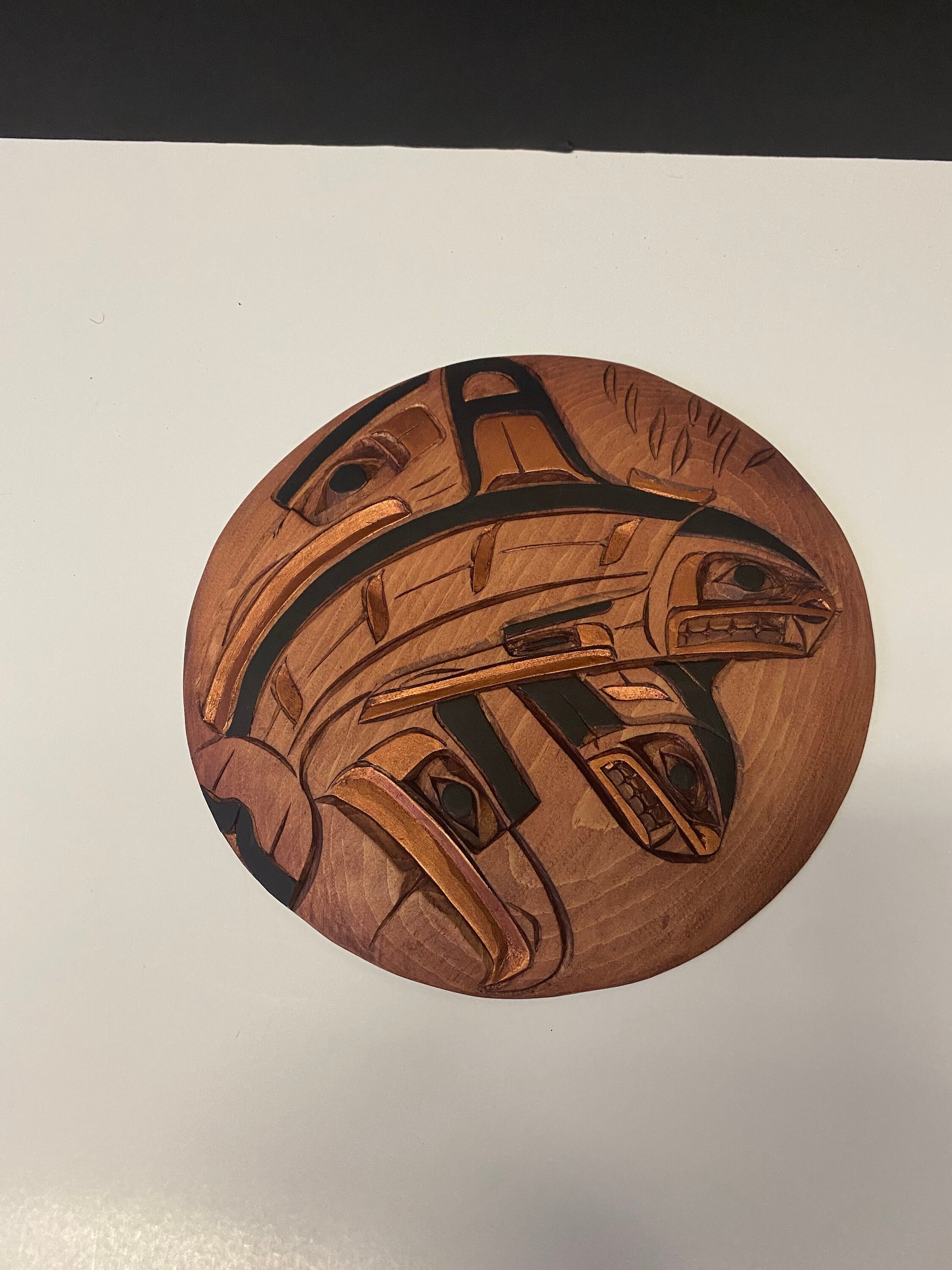 A Fabulous Vancouver Island indigenous first nations Charlie George plaque of killer whale Raven and eagle 10 inches
