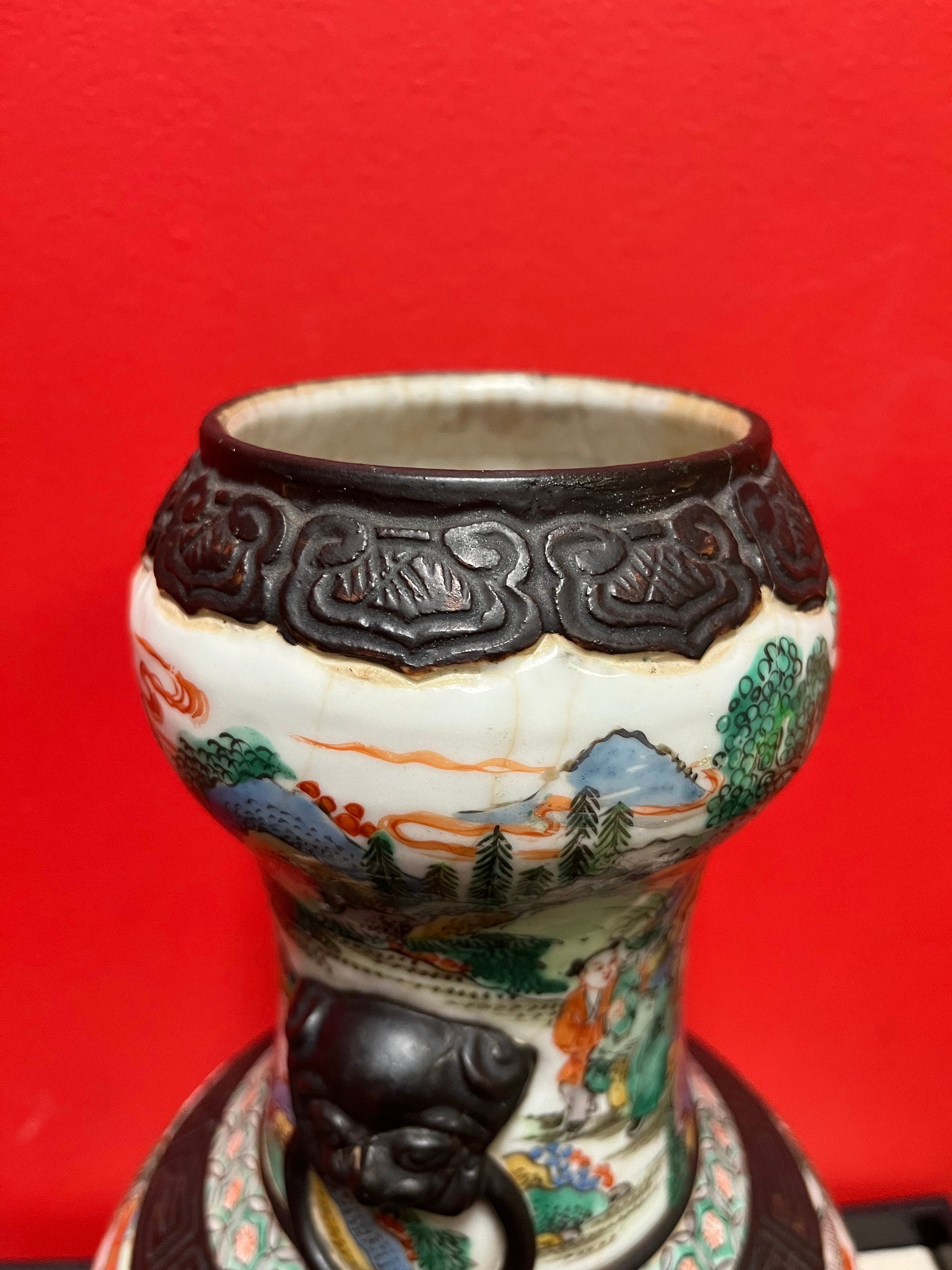 Lovely 14 inch Chinese Nanking late 19 century porcelain and bronze double gourd  vase  fabulous piece  see photos