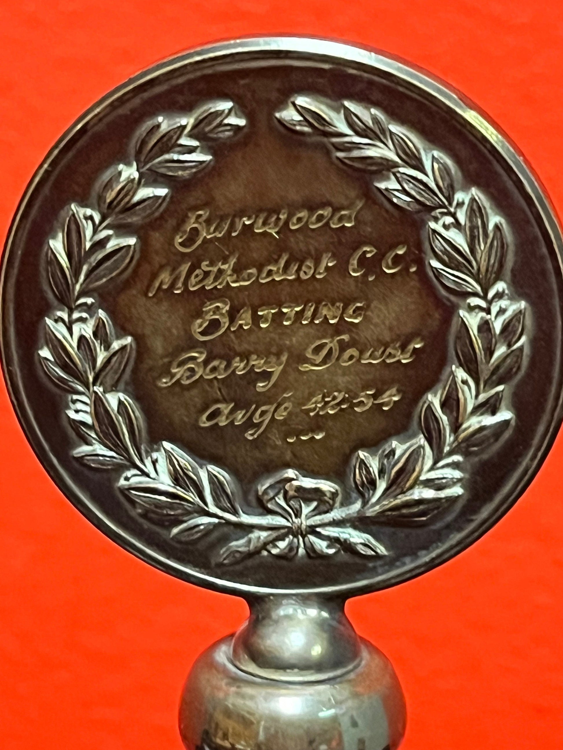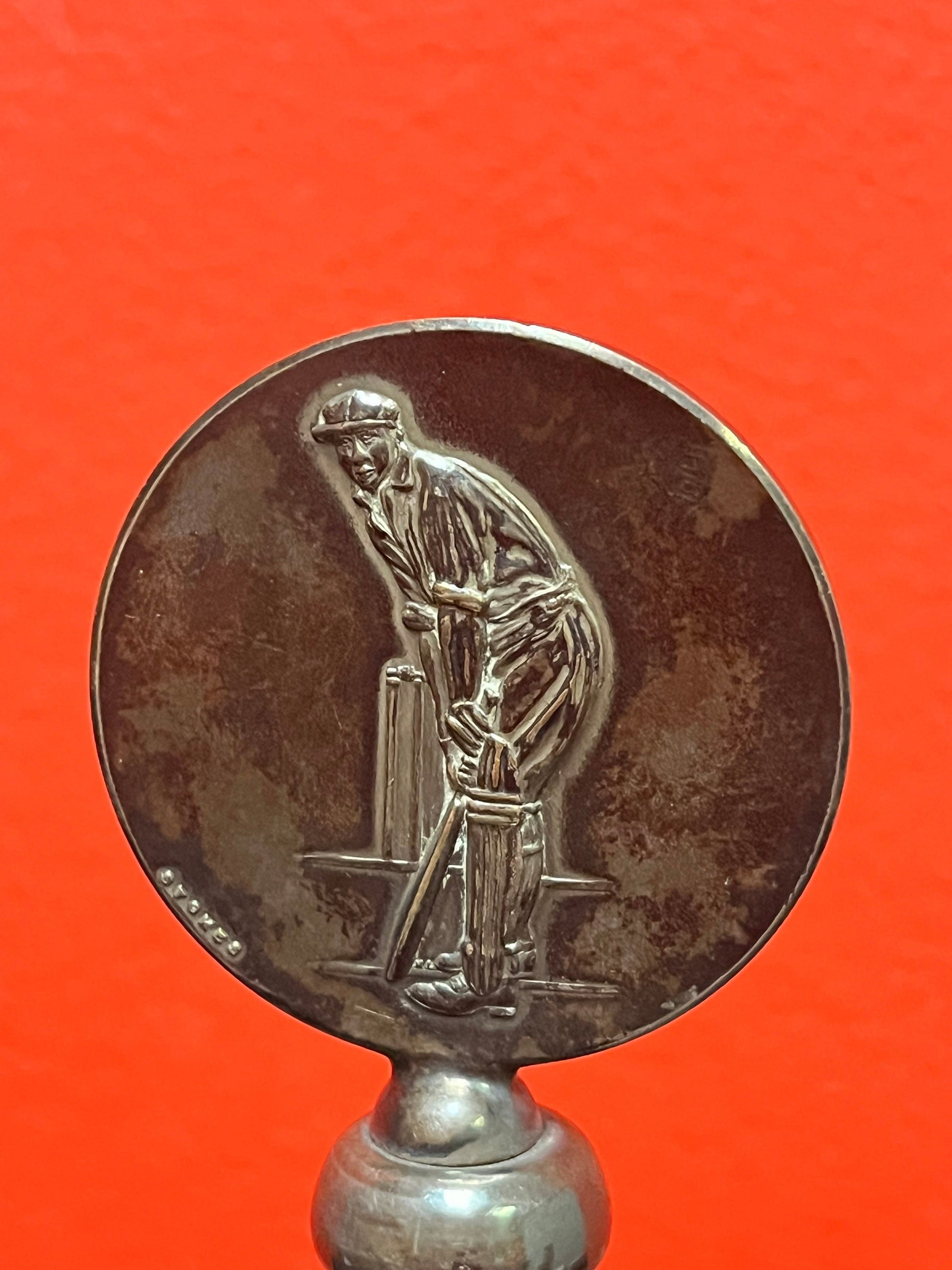 Lovely 1950s heavy silver cricket trophy on Bakelite stand amazing - 5 inches tall needs a polish -