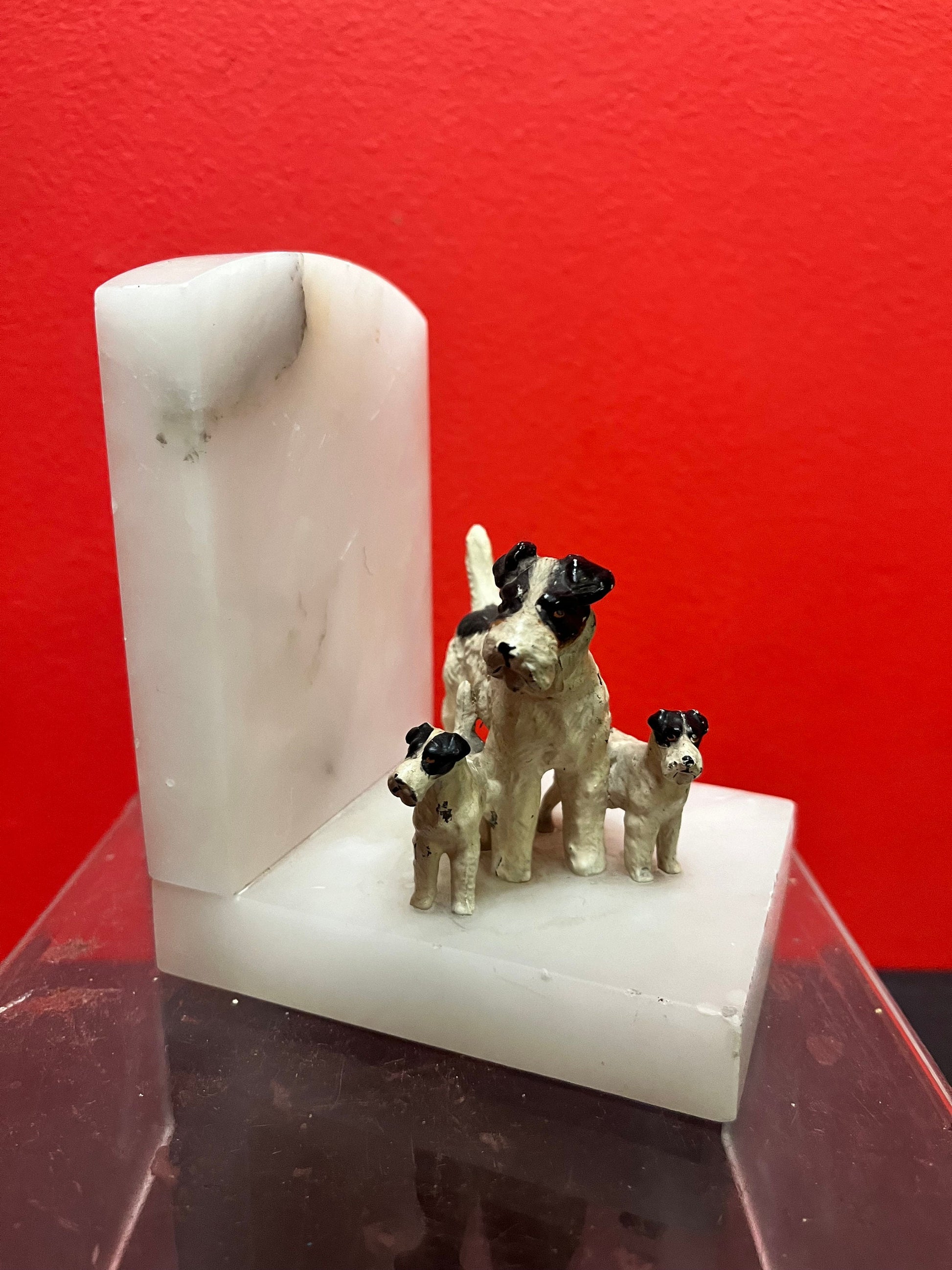 Lovely 4 inch European cold painted bronze terrier dog statue on marble book end