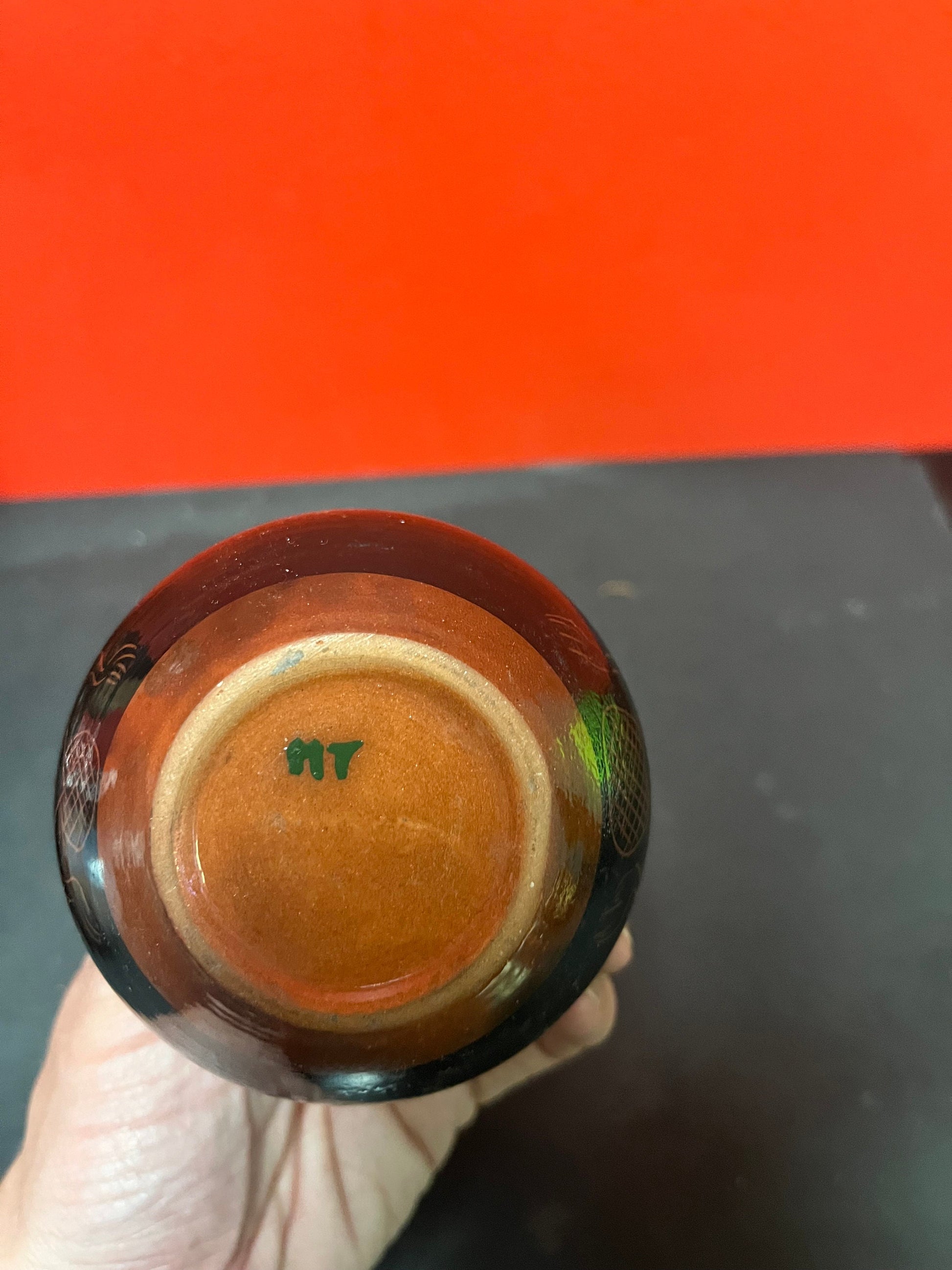 Lovely 4 inch high Canadian indigenous first nations Haida pottery vase signed great imagery perfect condition