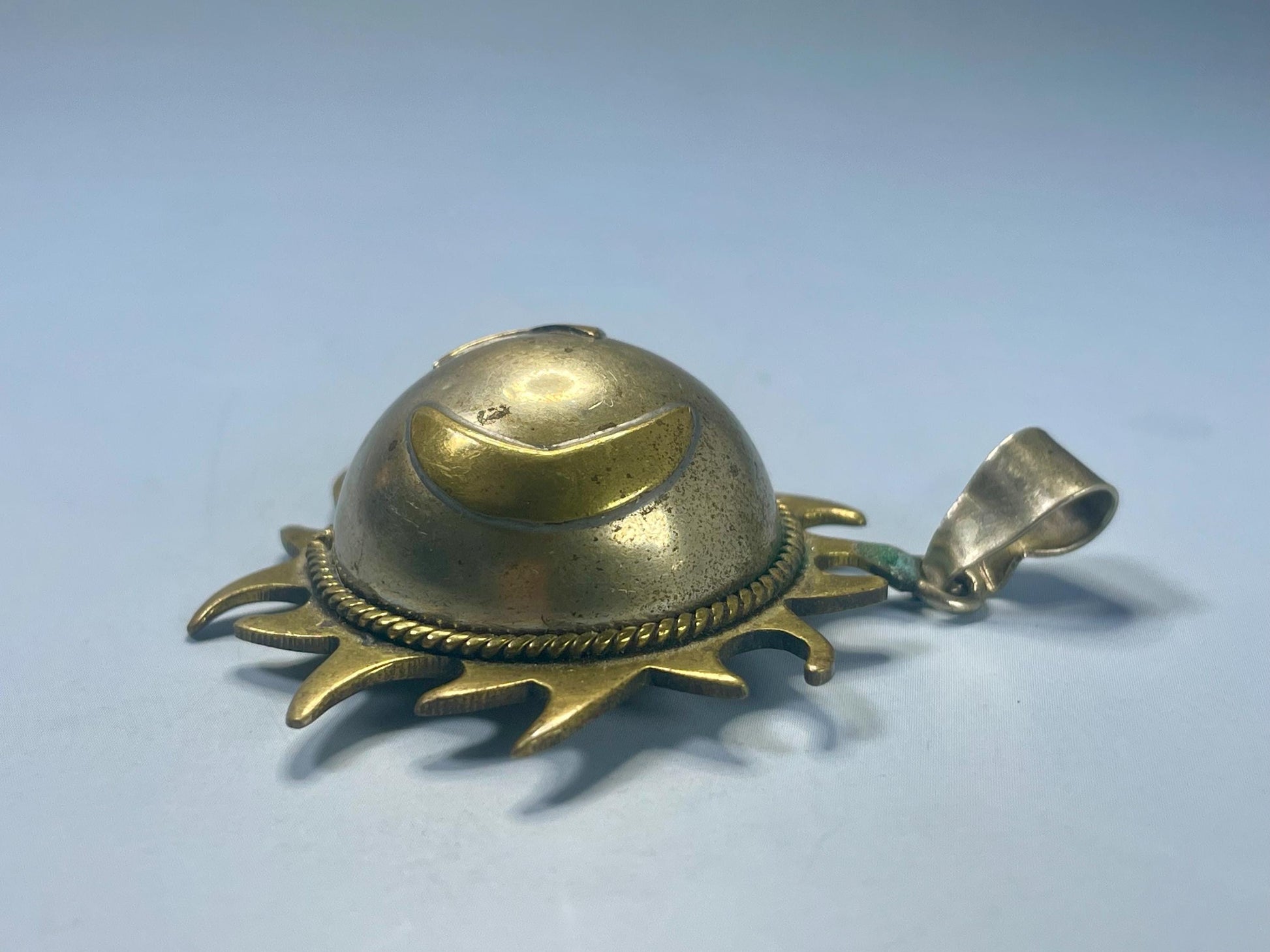 Lovely 2 inch brass Sun and Moon pendant jingling bell inside that sounds lovely when shaken perfect gift
