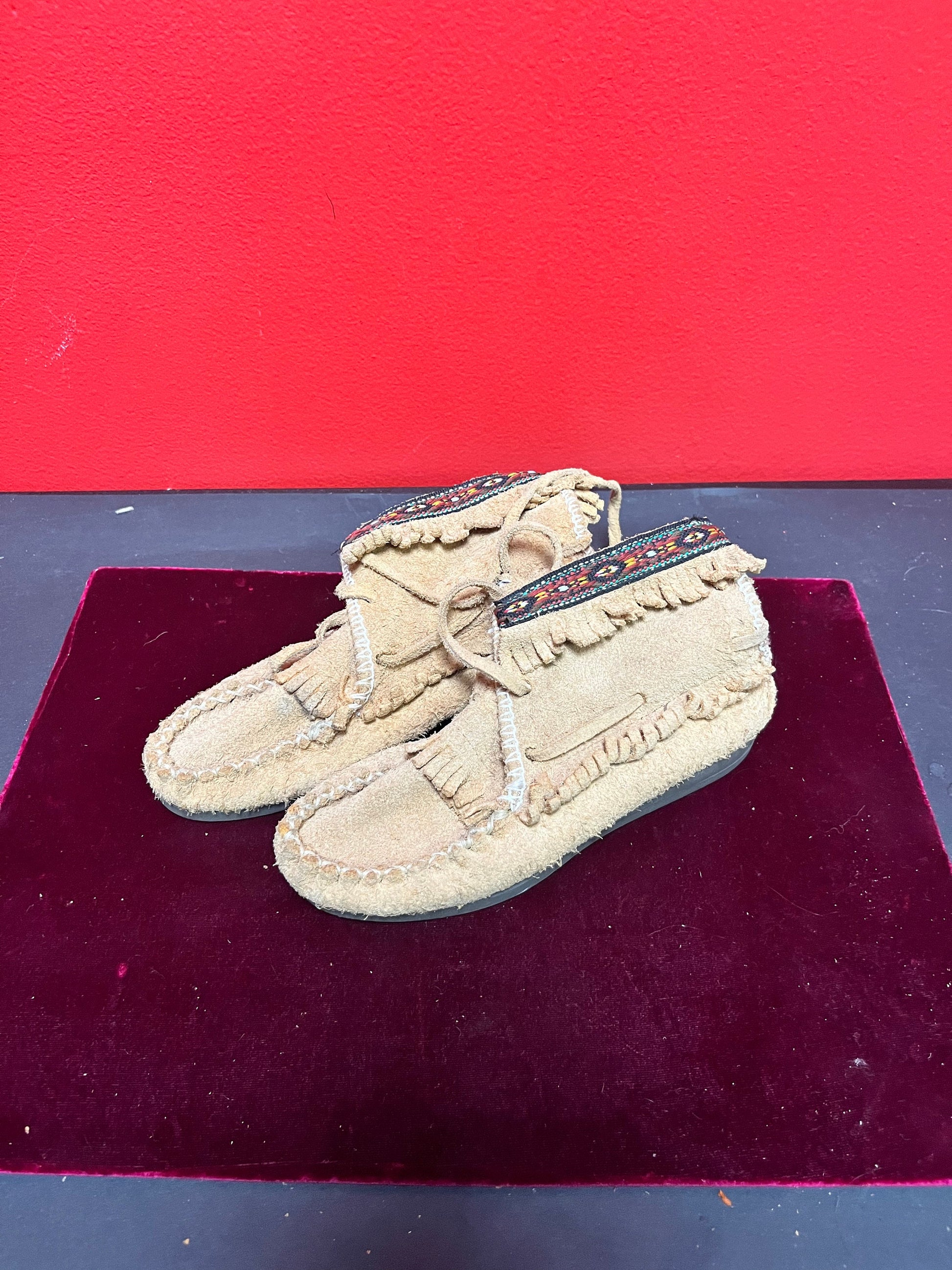 Lovely Canadian leather and beaded 7.5 inch long indigenous moccasins Great condition