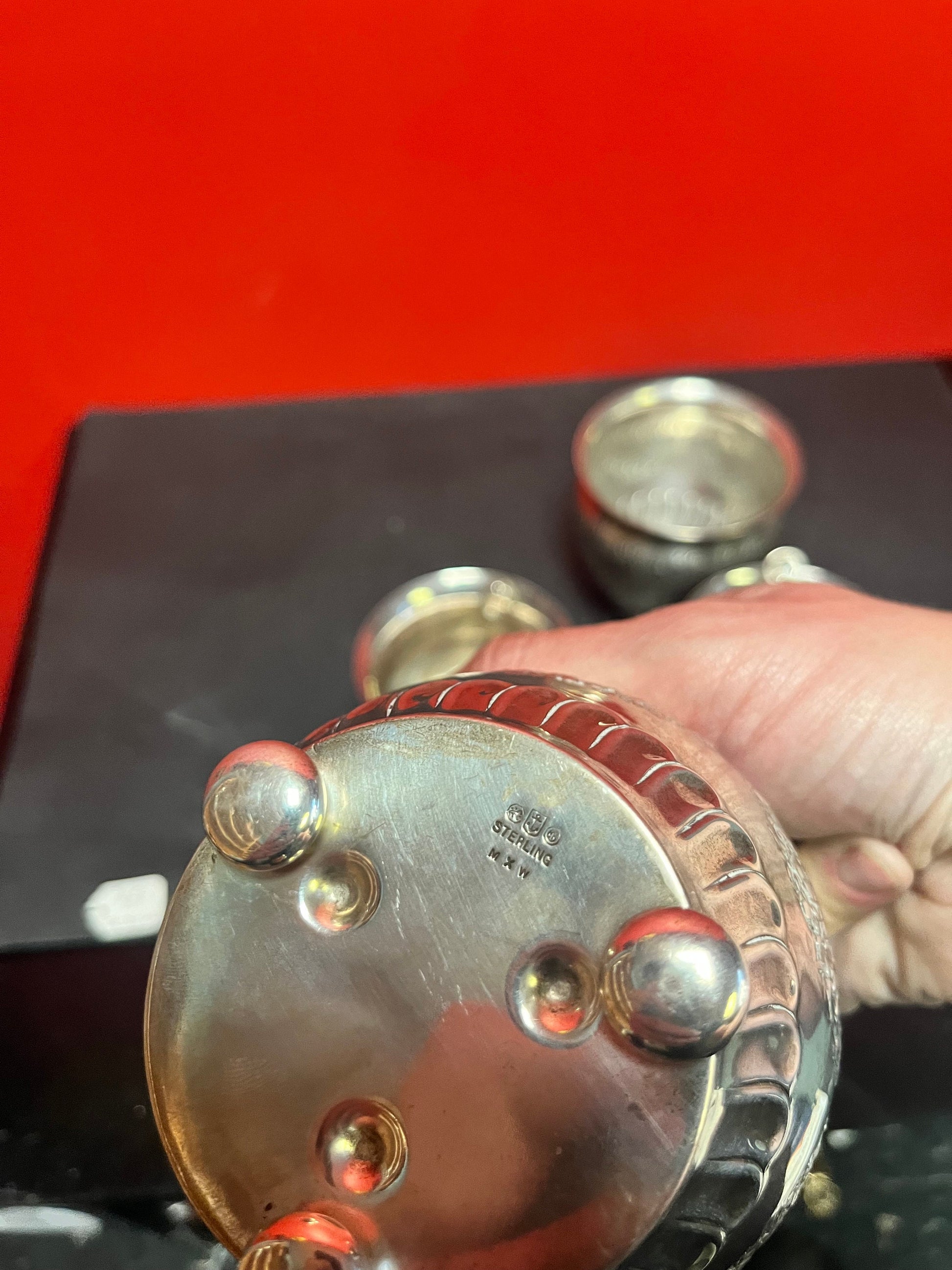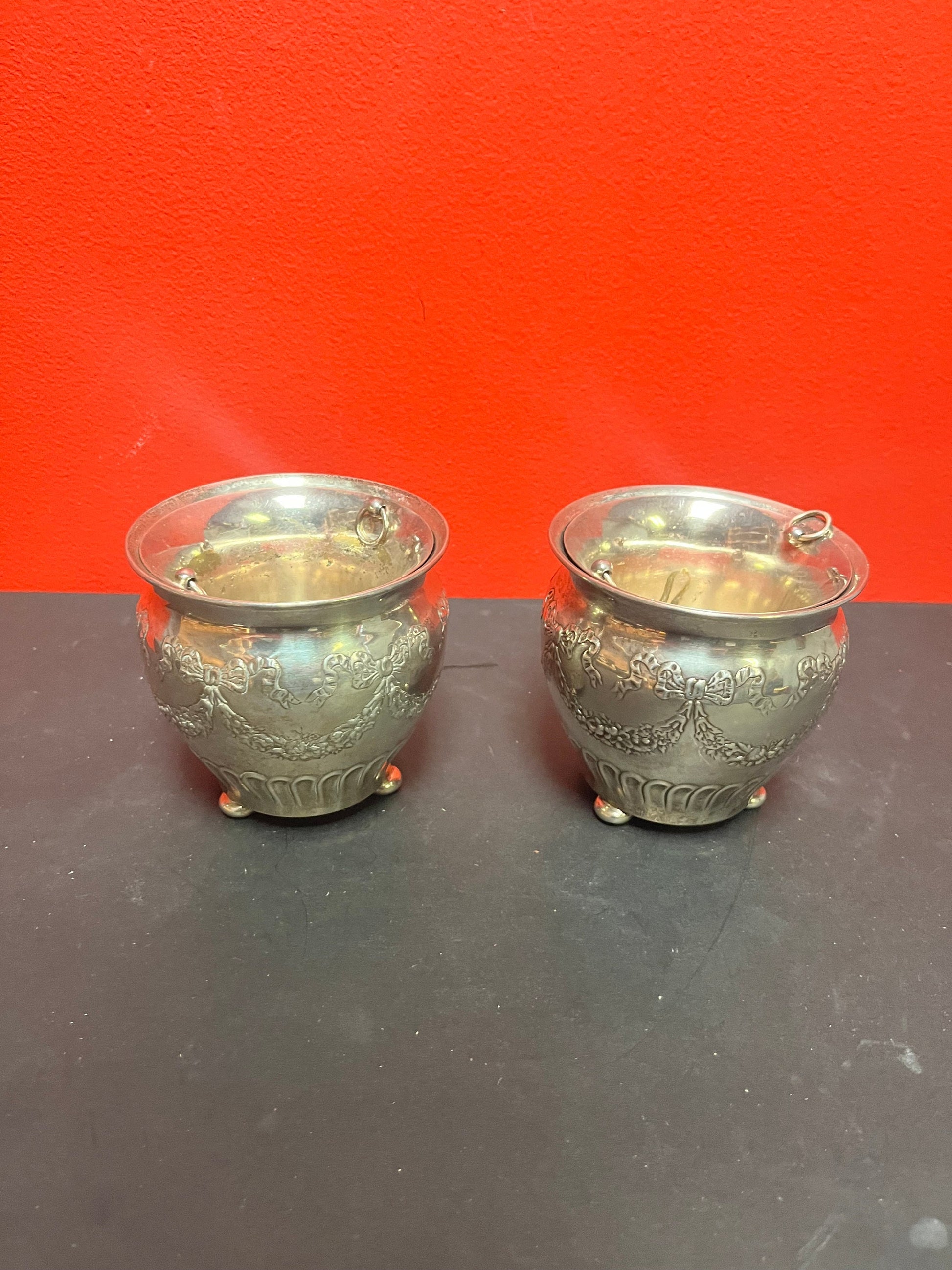 A Lovely pair of heavy 4 inch high sterling silver planters with silver plated liners antique top quality value priced