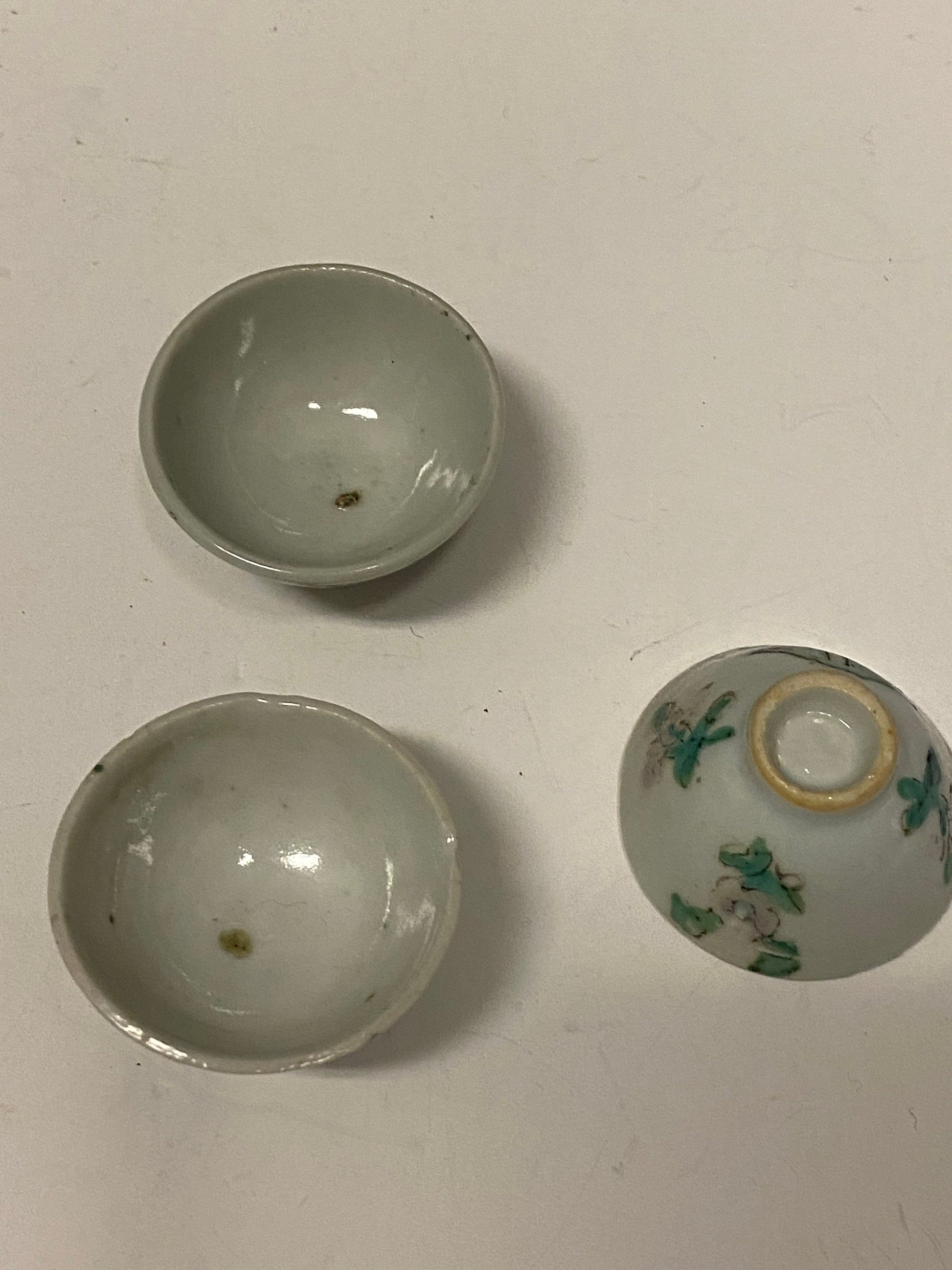 A Set of 3 antique Chinese hand decorated bowls 2 inches each Spectacular decoration and condition very very old