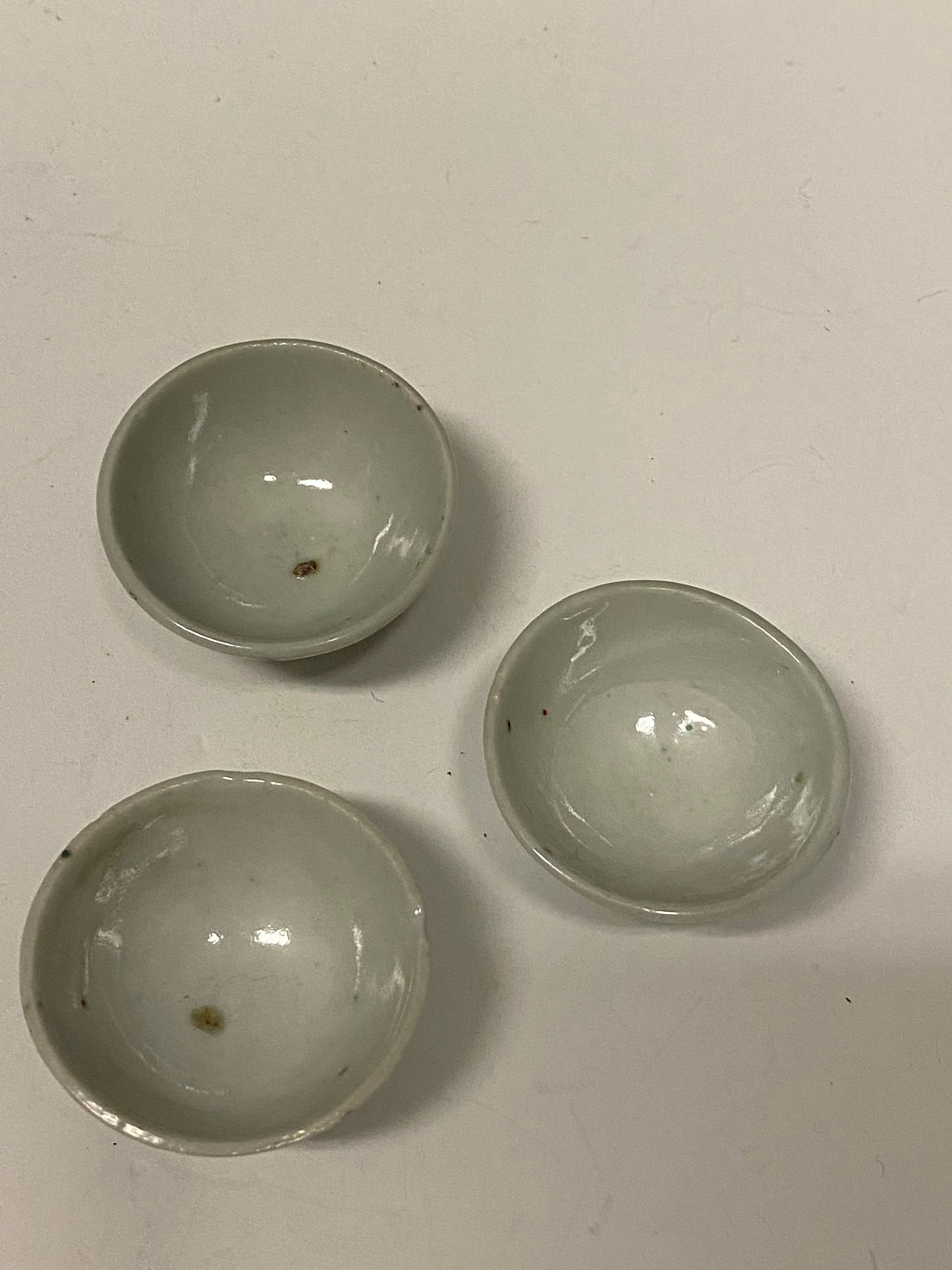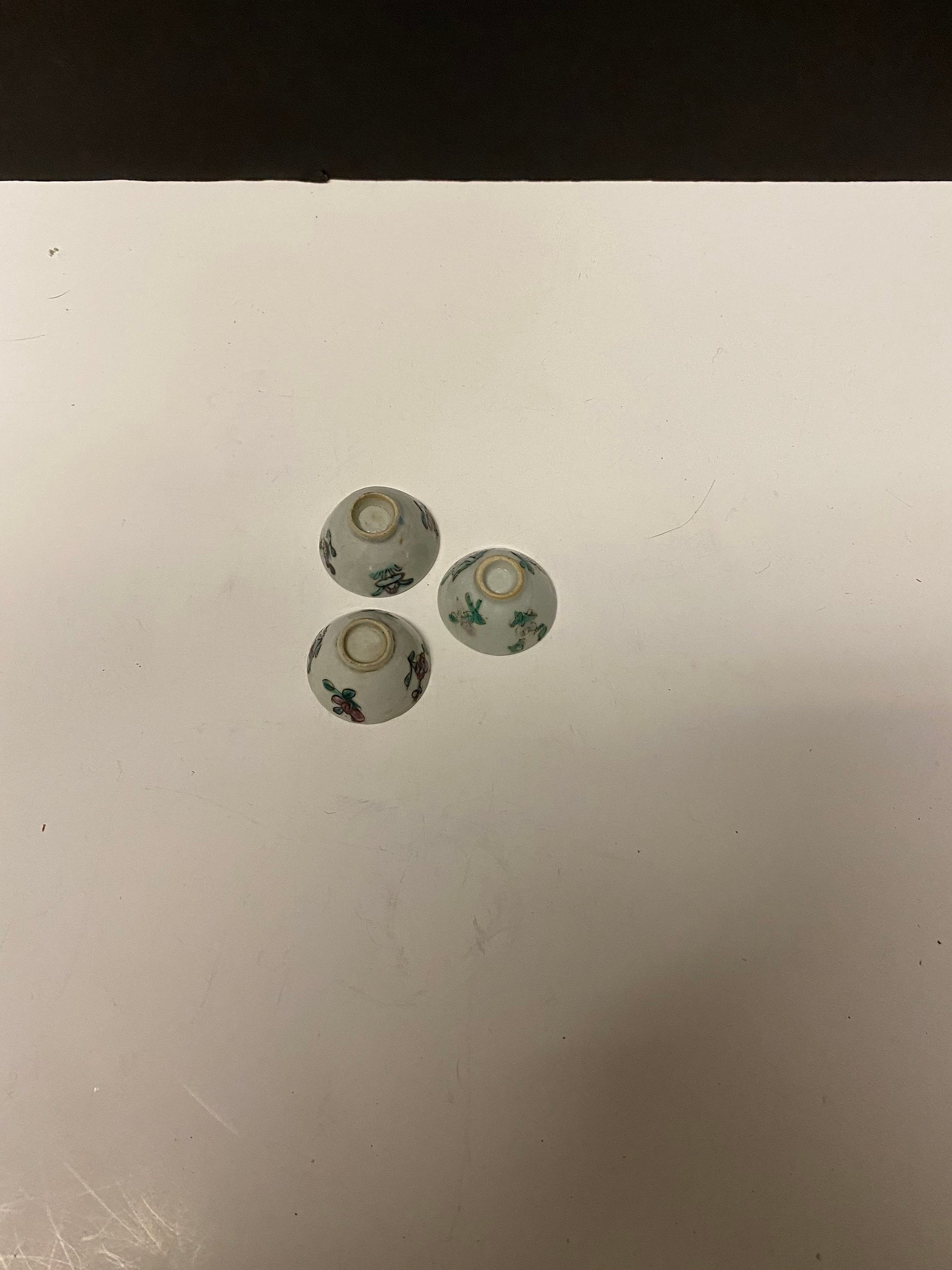 Set of 3 antique Chinese hand decorated bowls 2 inches each Spectacular decoration and condition