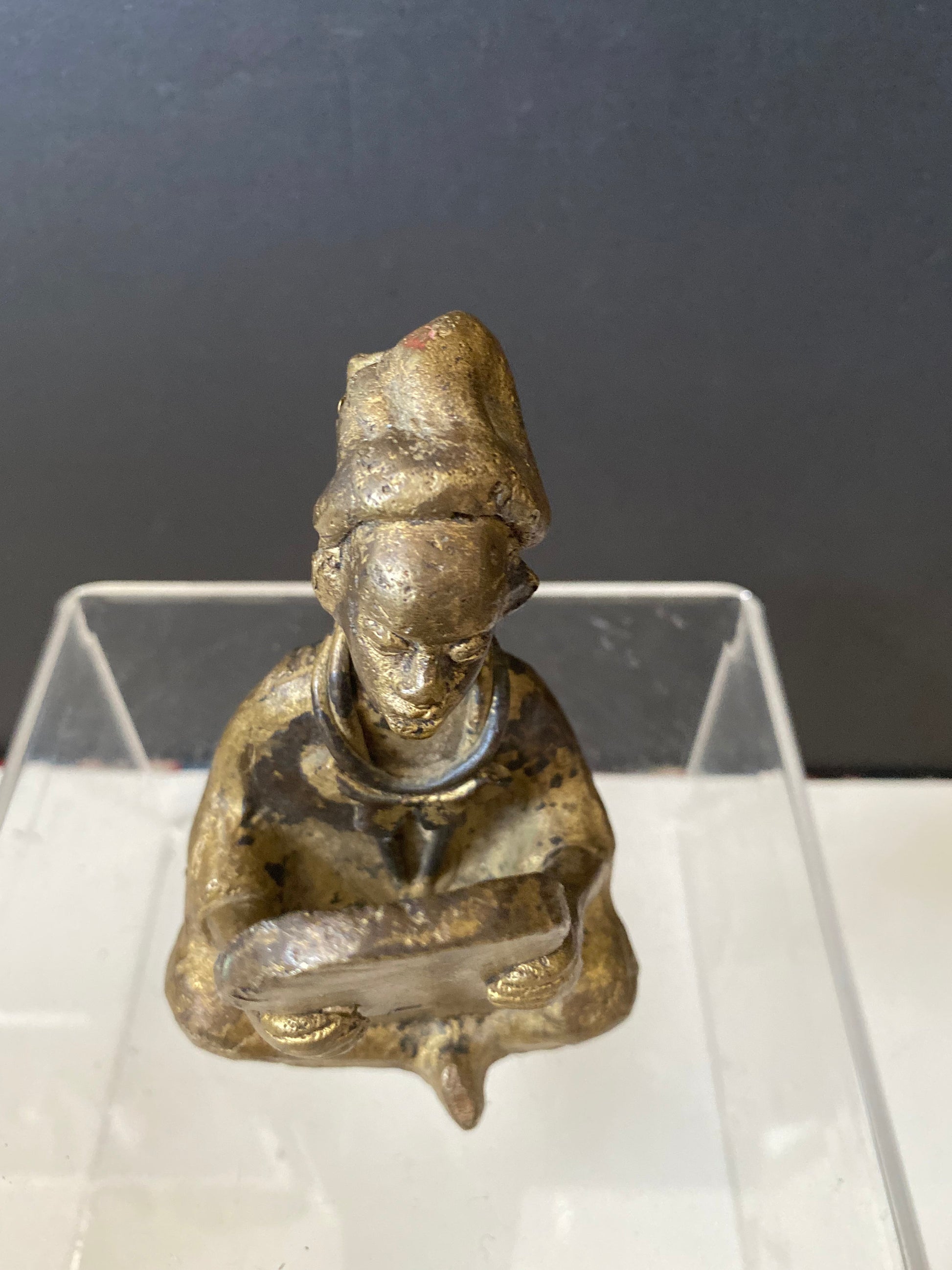 Stunning 5 inch tall African Benin bronze of a woman looking in a mirror Amazing Patina