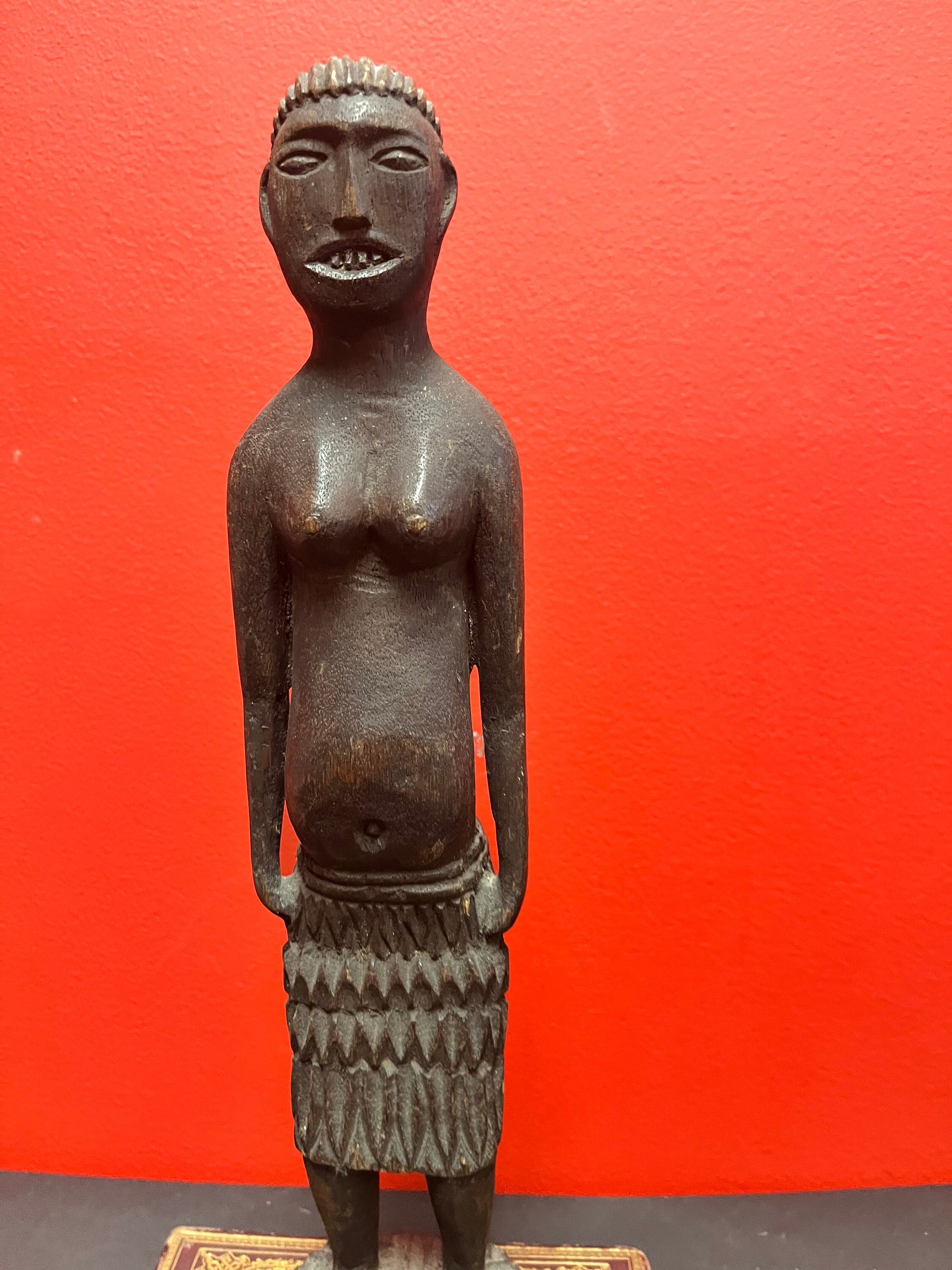 A Stunning antique 14 inch tall western African statue of a lady wonderful Patina and detail