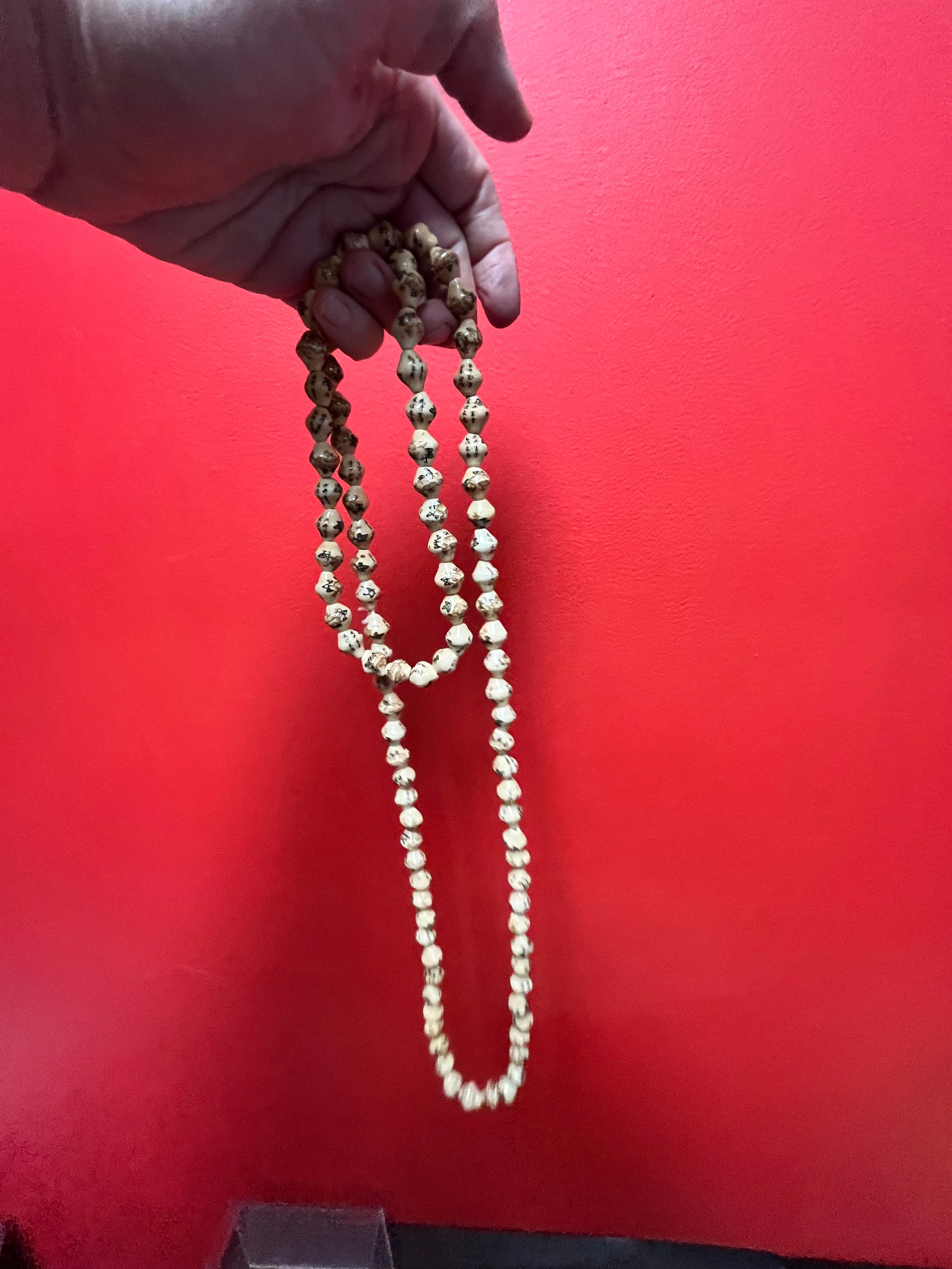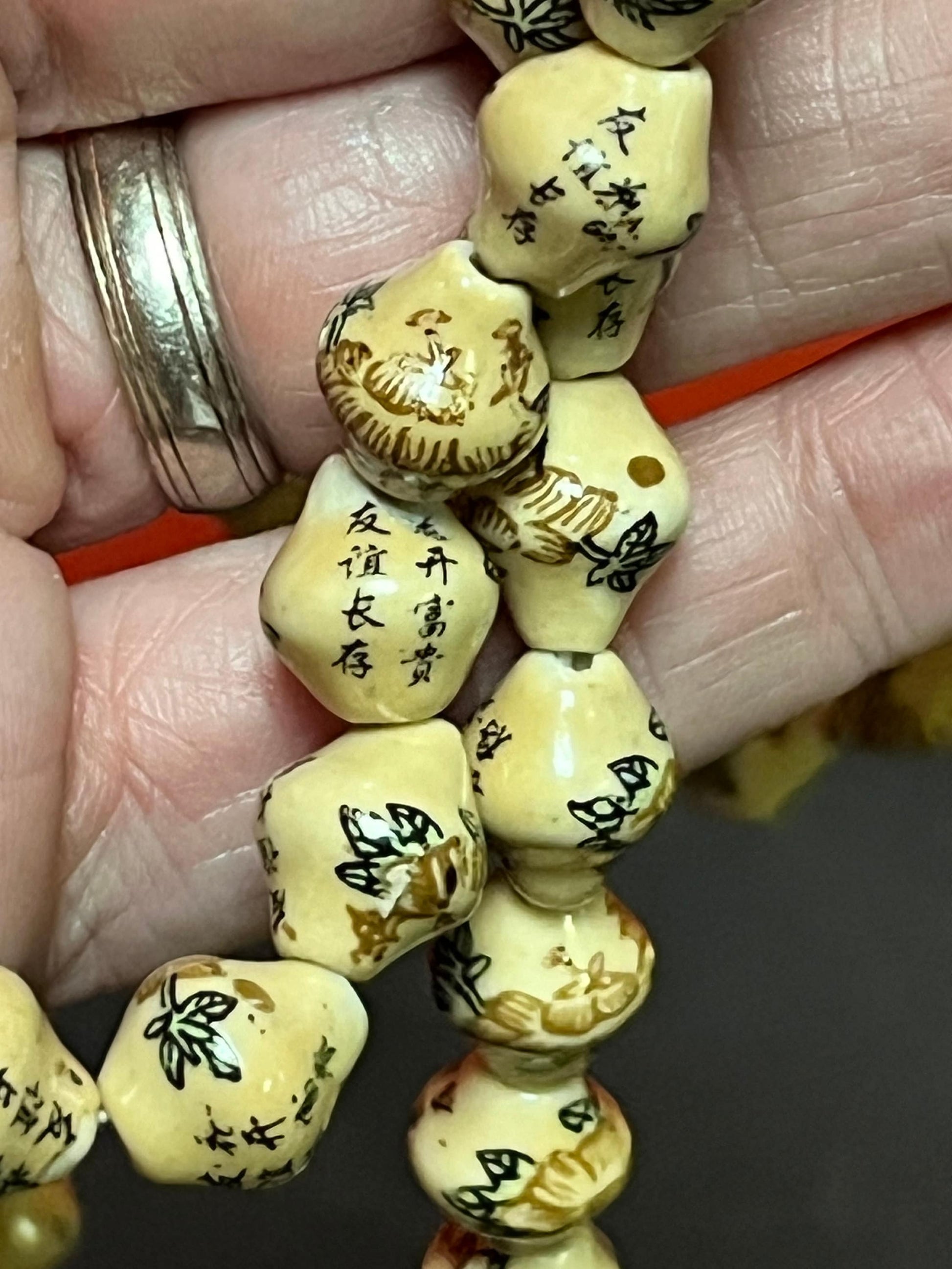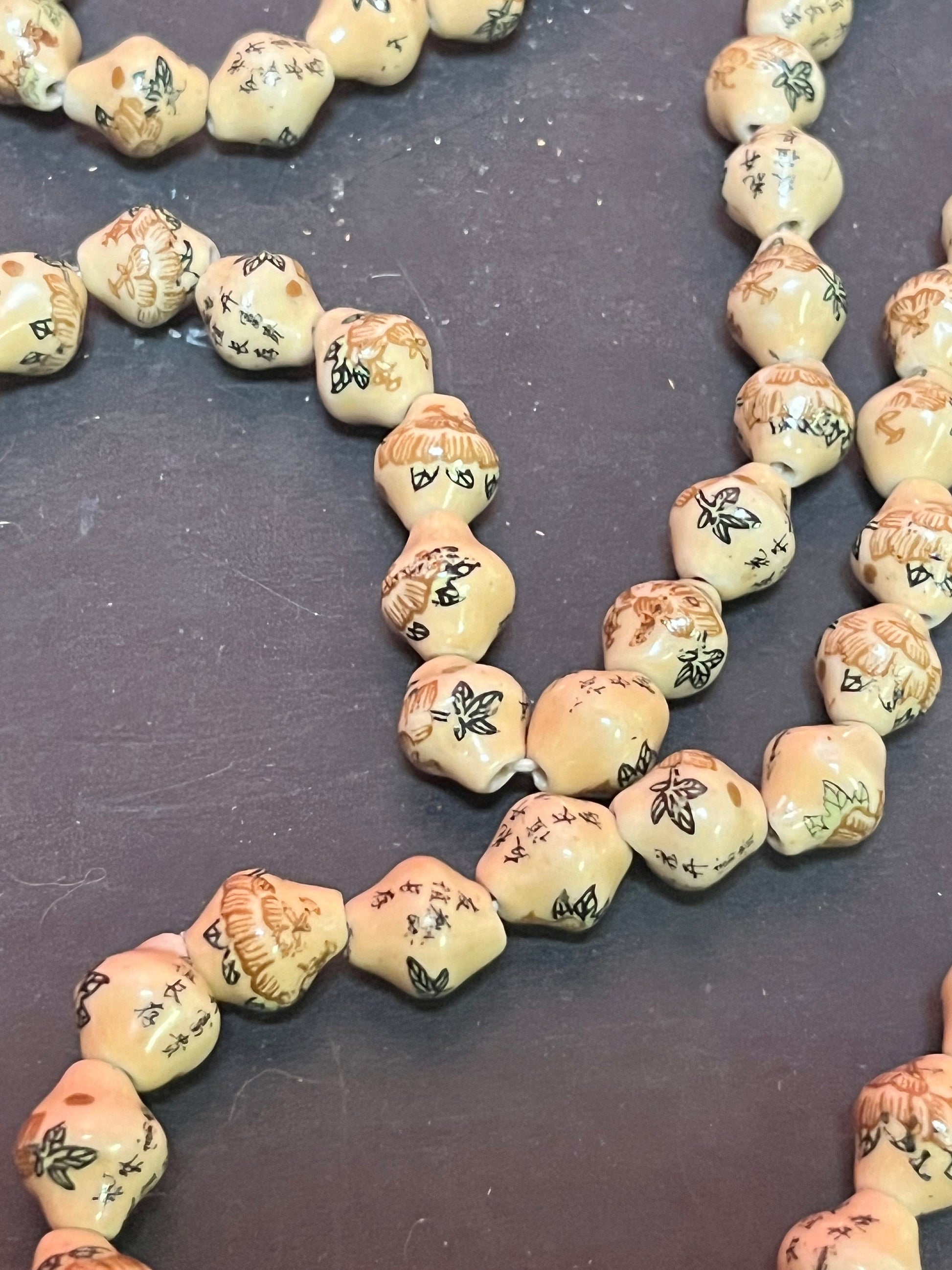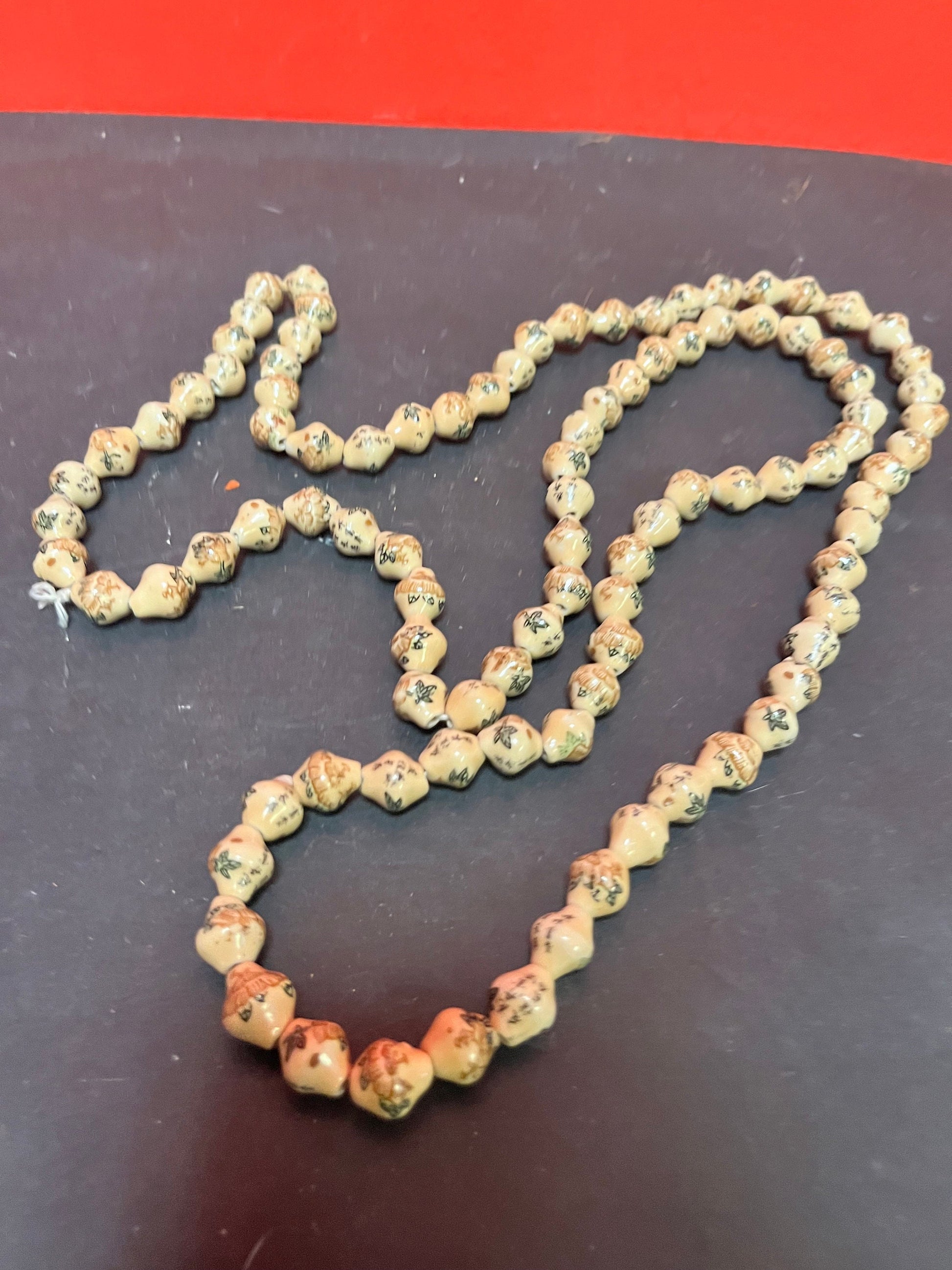 Stunning antique Chinese individually, signed pottery bead necklace approximately 52 inches long - amazing