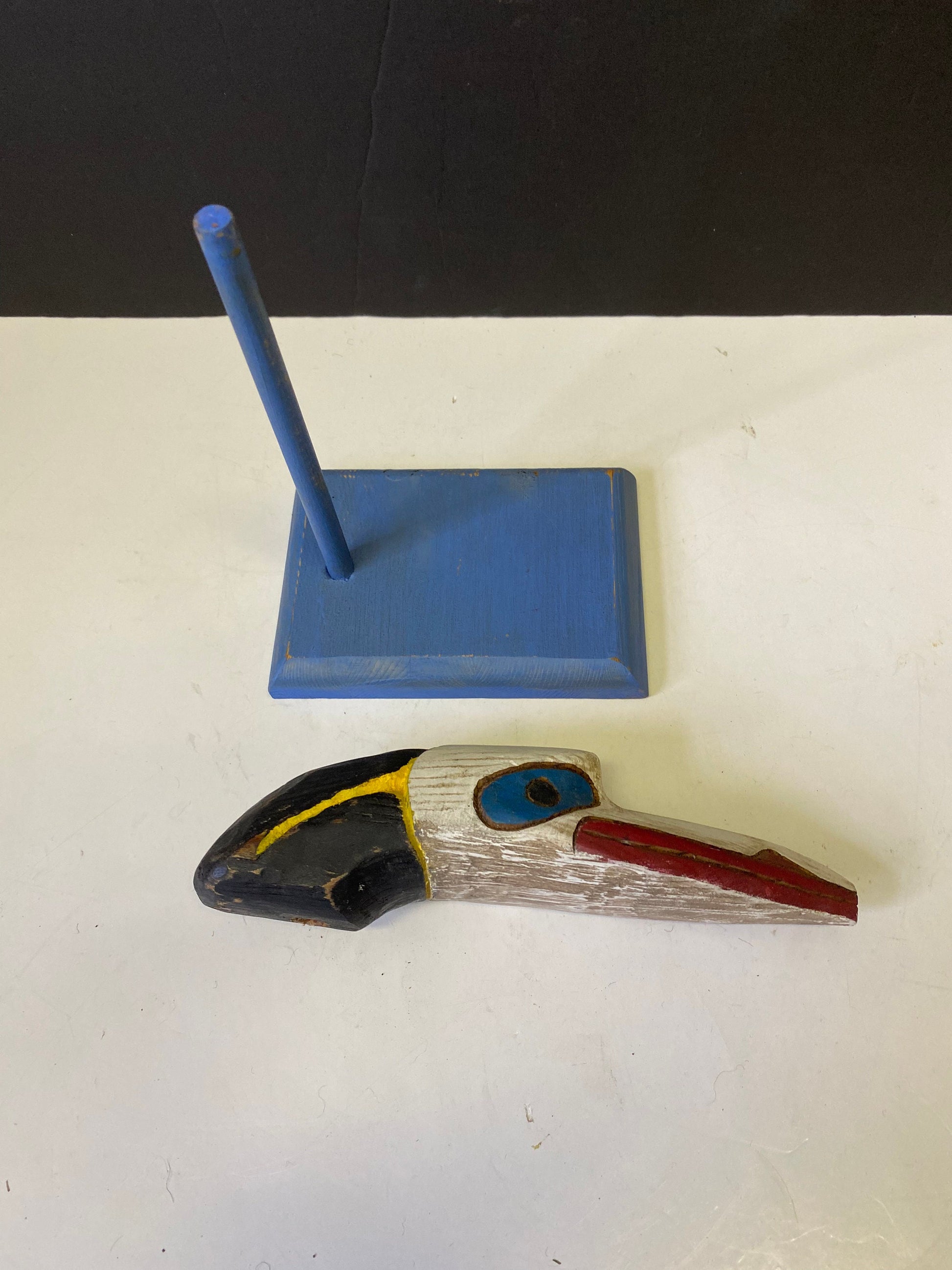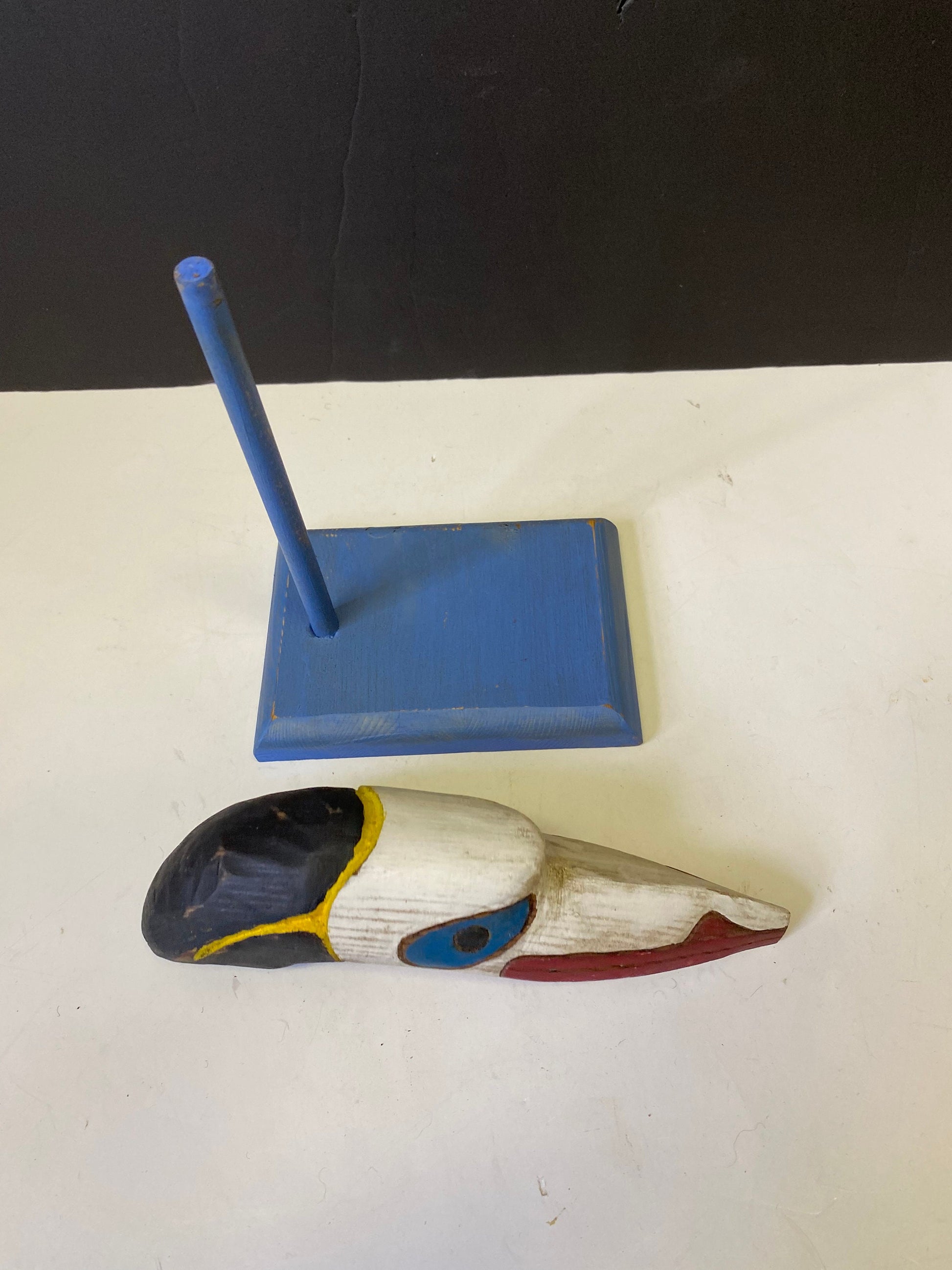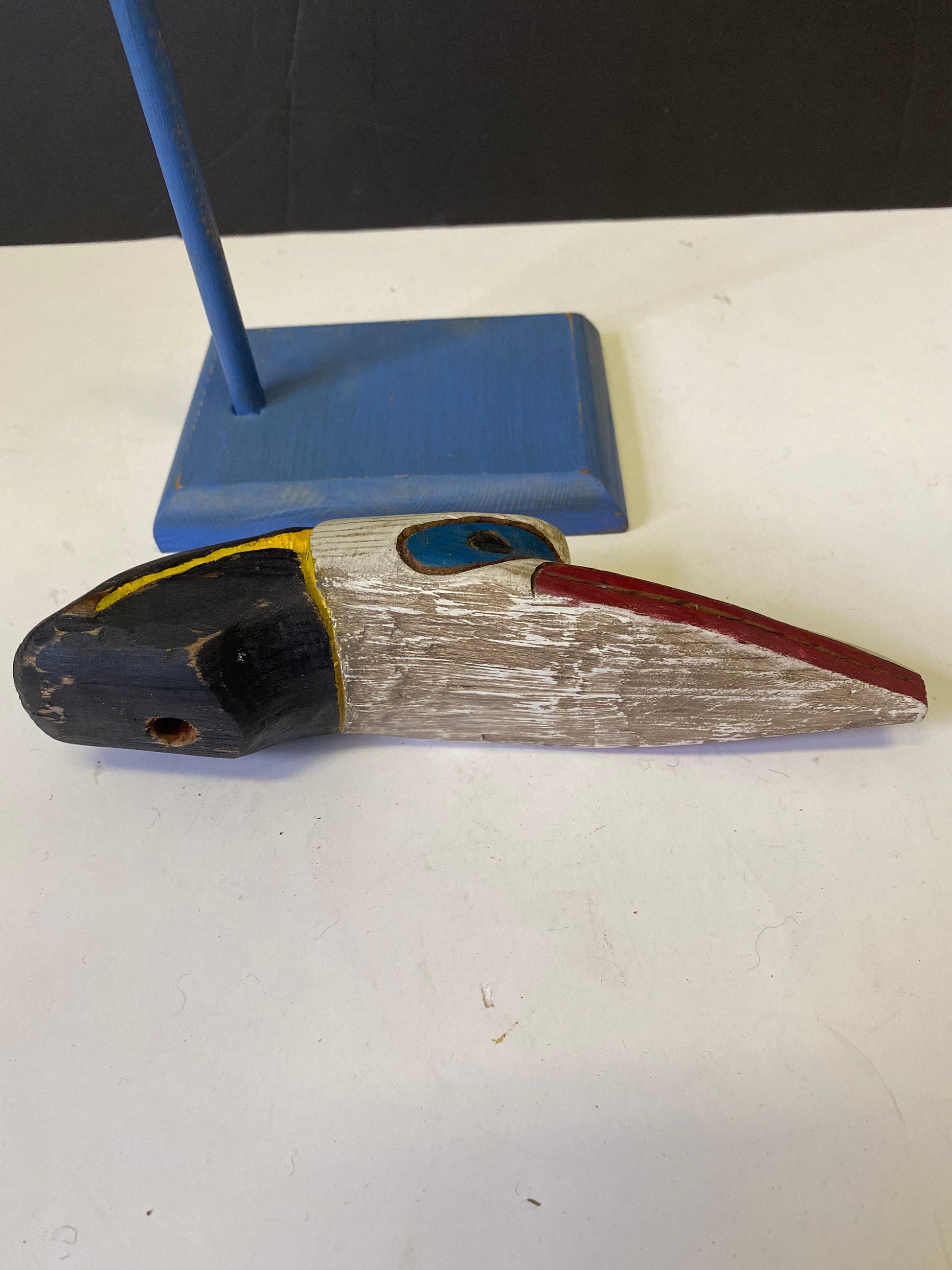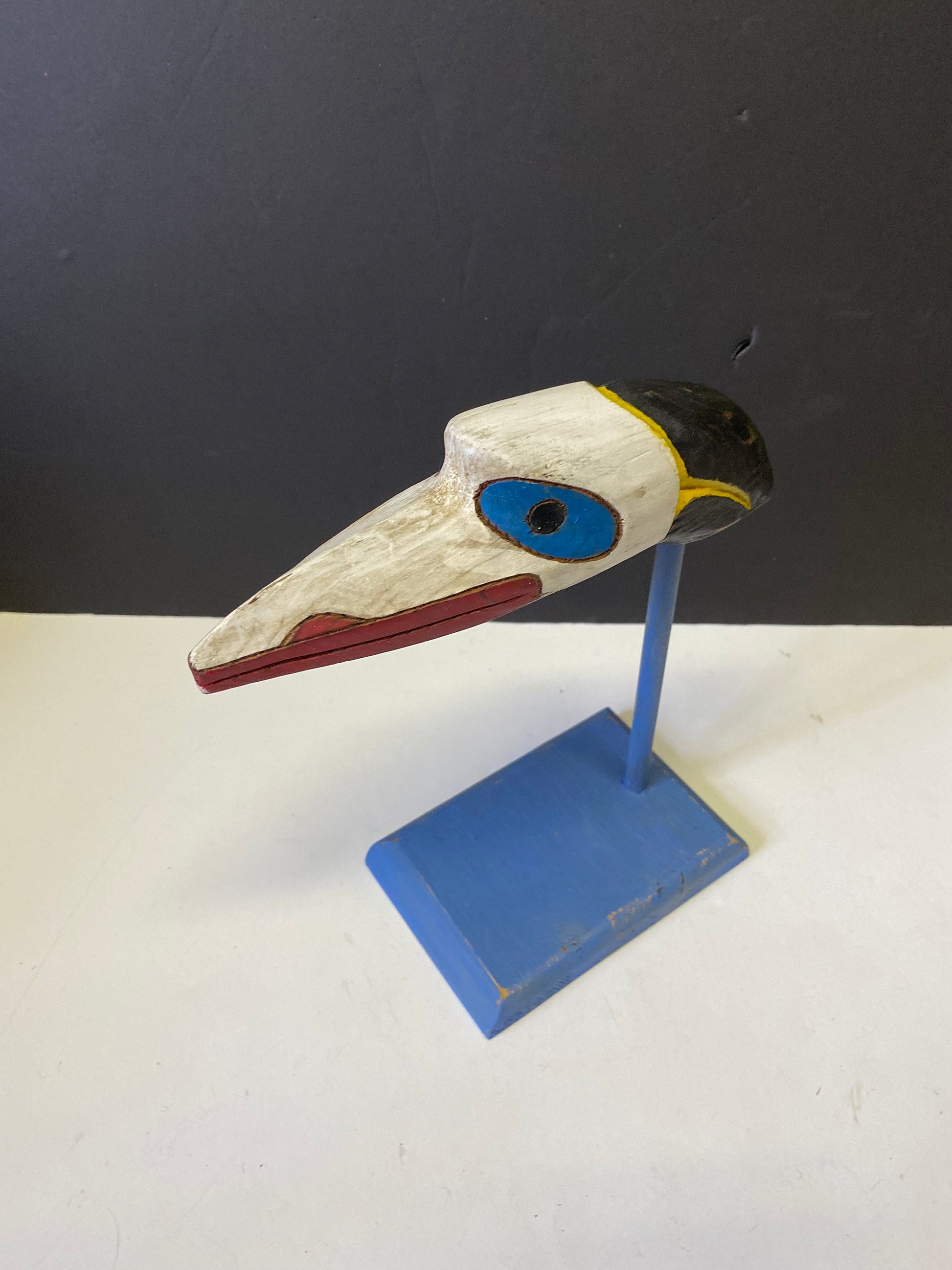 A Stunning antique indigenous First Nations 8 x 10 long bird statue in Polychrome form Absolutely fabulous painting wow