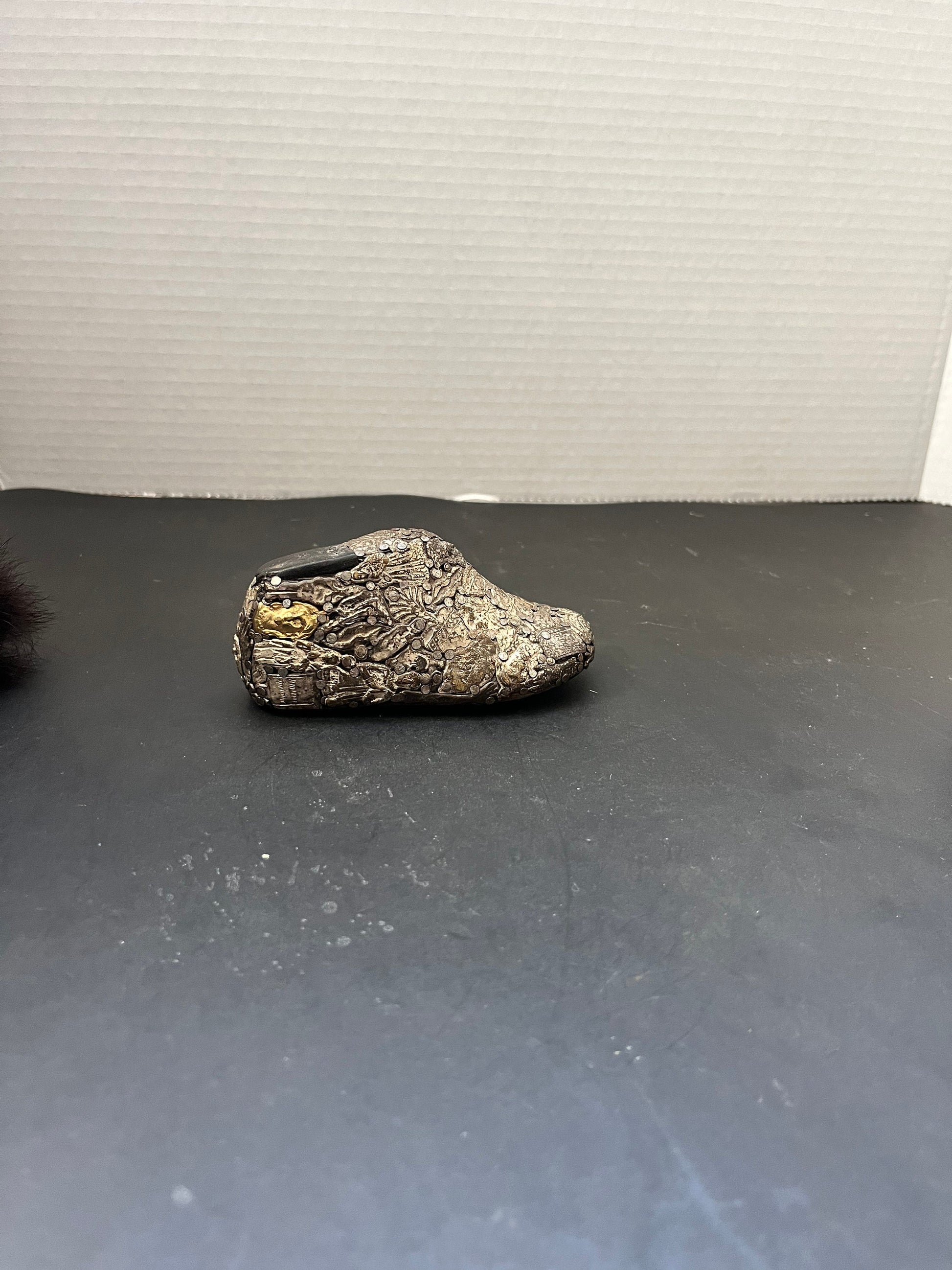 Absolutely amazing antique Persian silver and wooden foot Great detailing and super old nails make this amazing and unusual - gift time