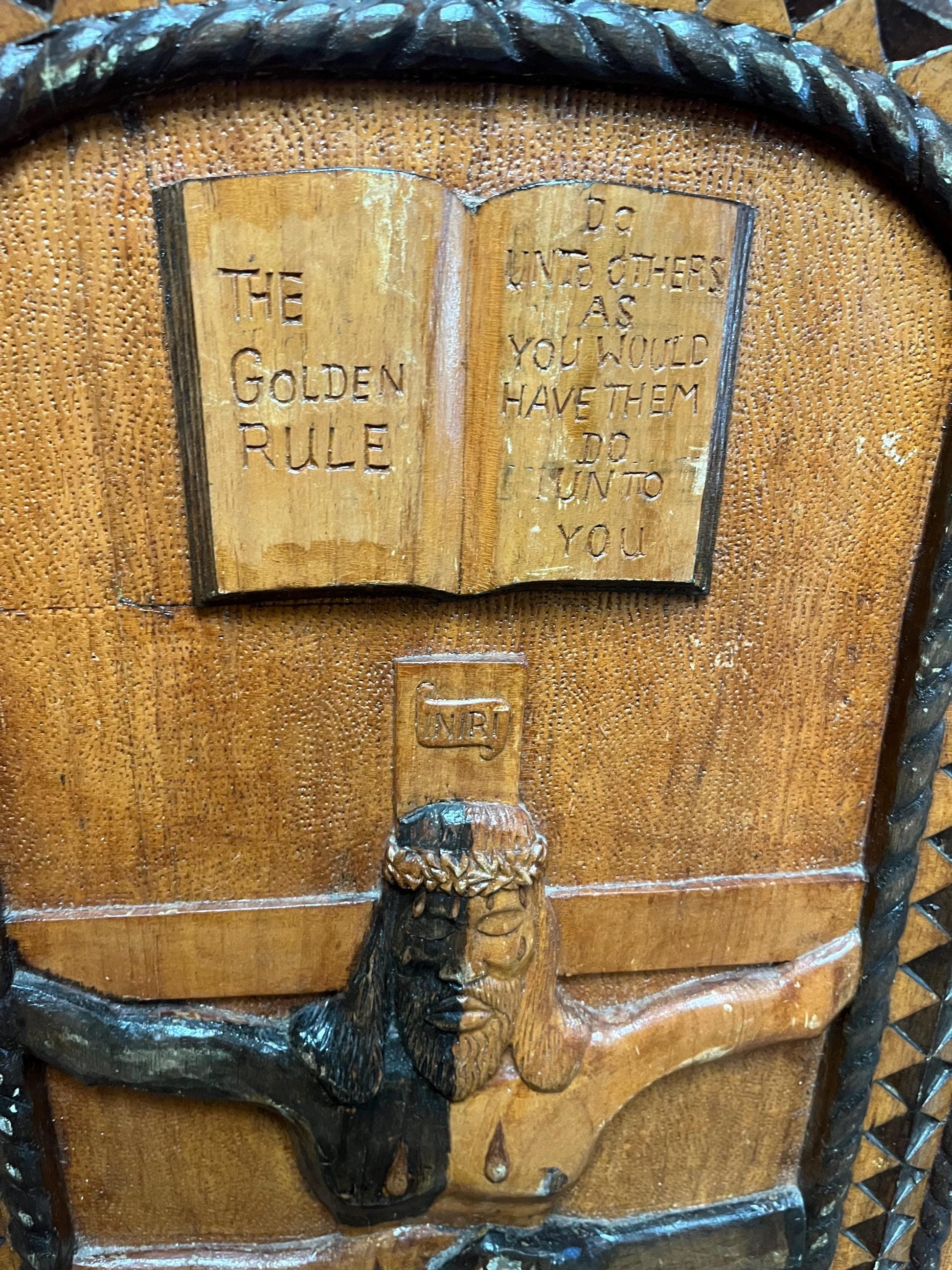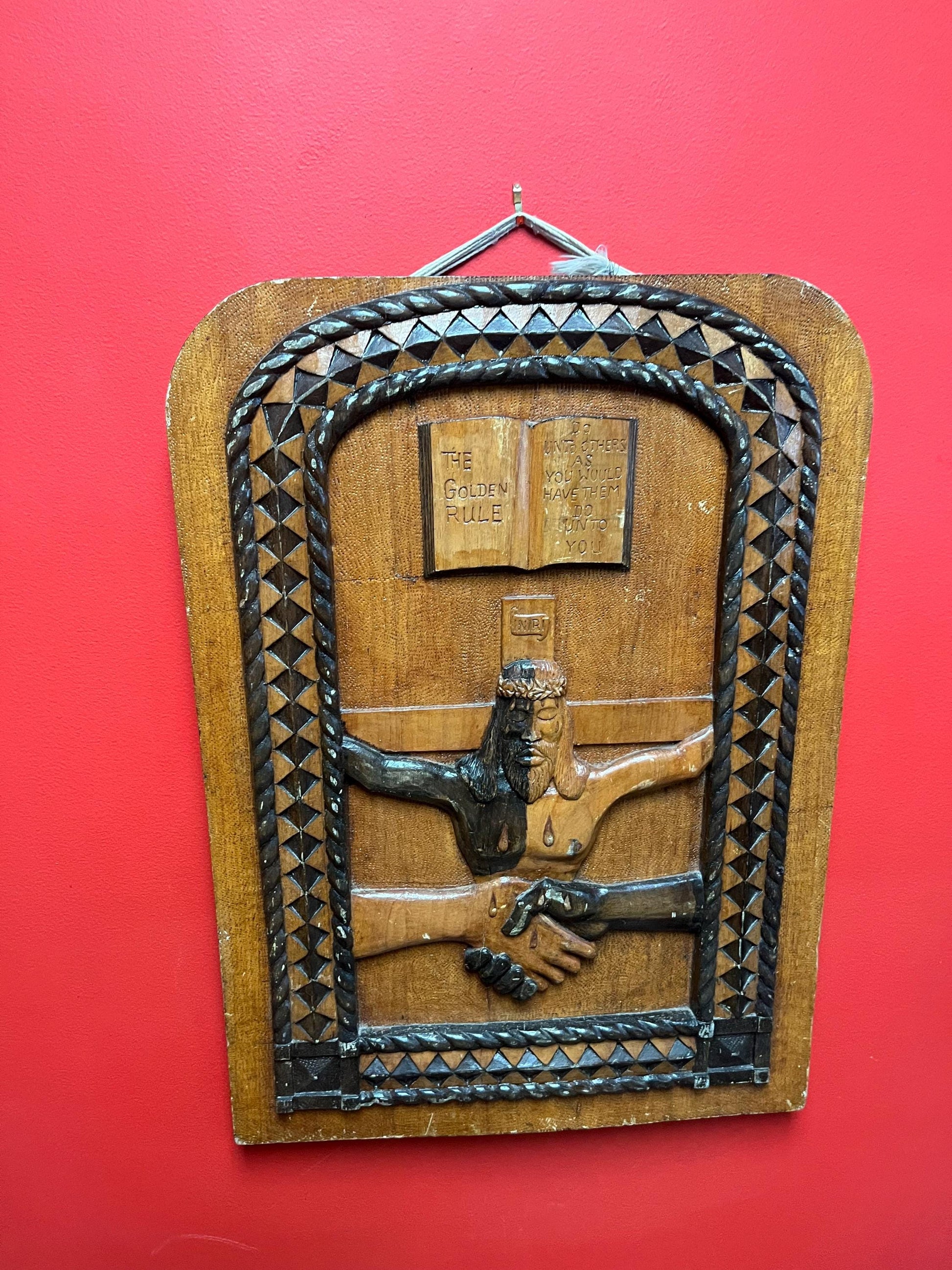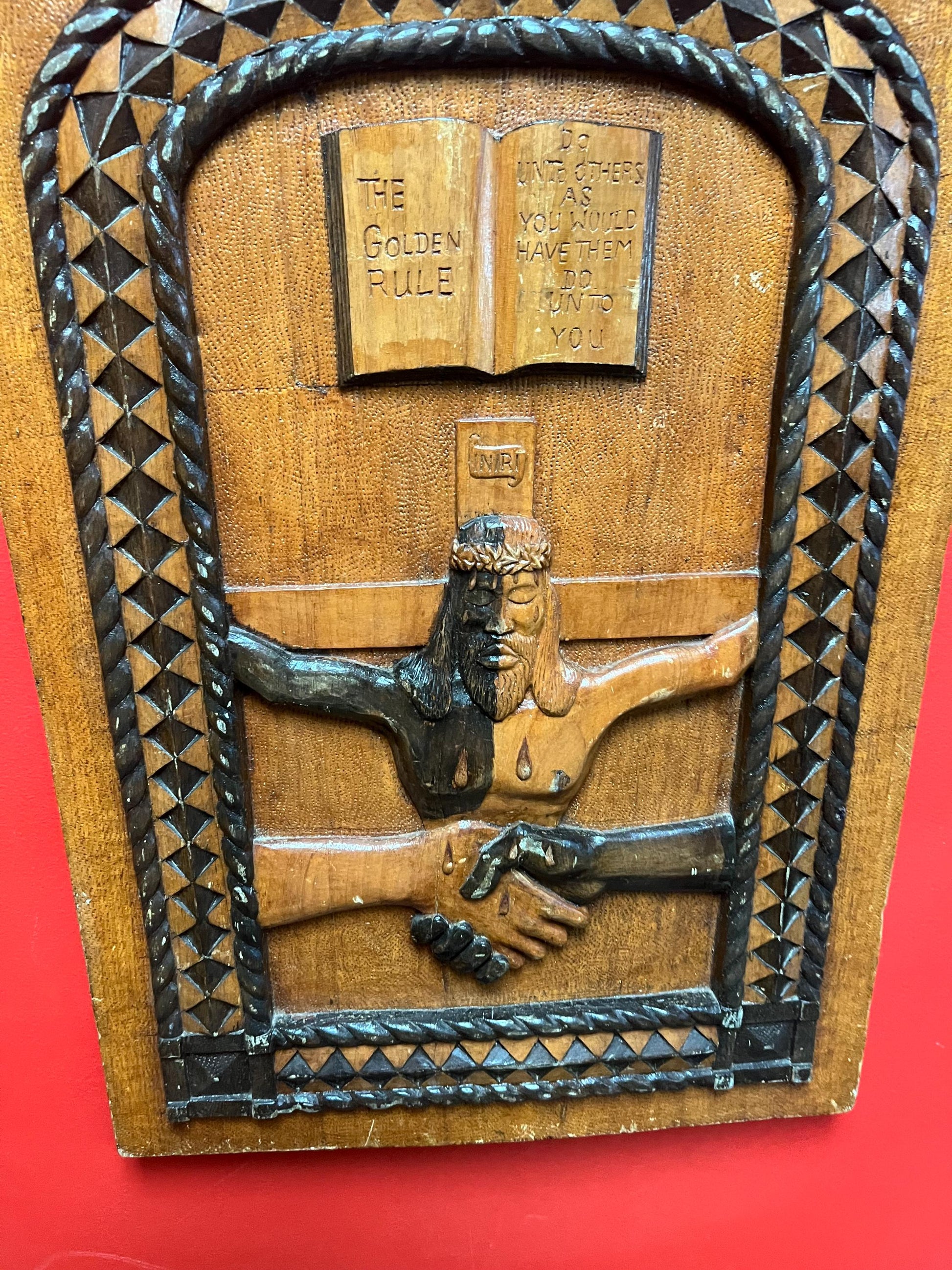 Absolutely fabulous antique African religious 27 x 16 x 1 inch thick plaque wonderful imagery and very unusual African Christianity wow