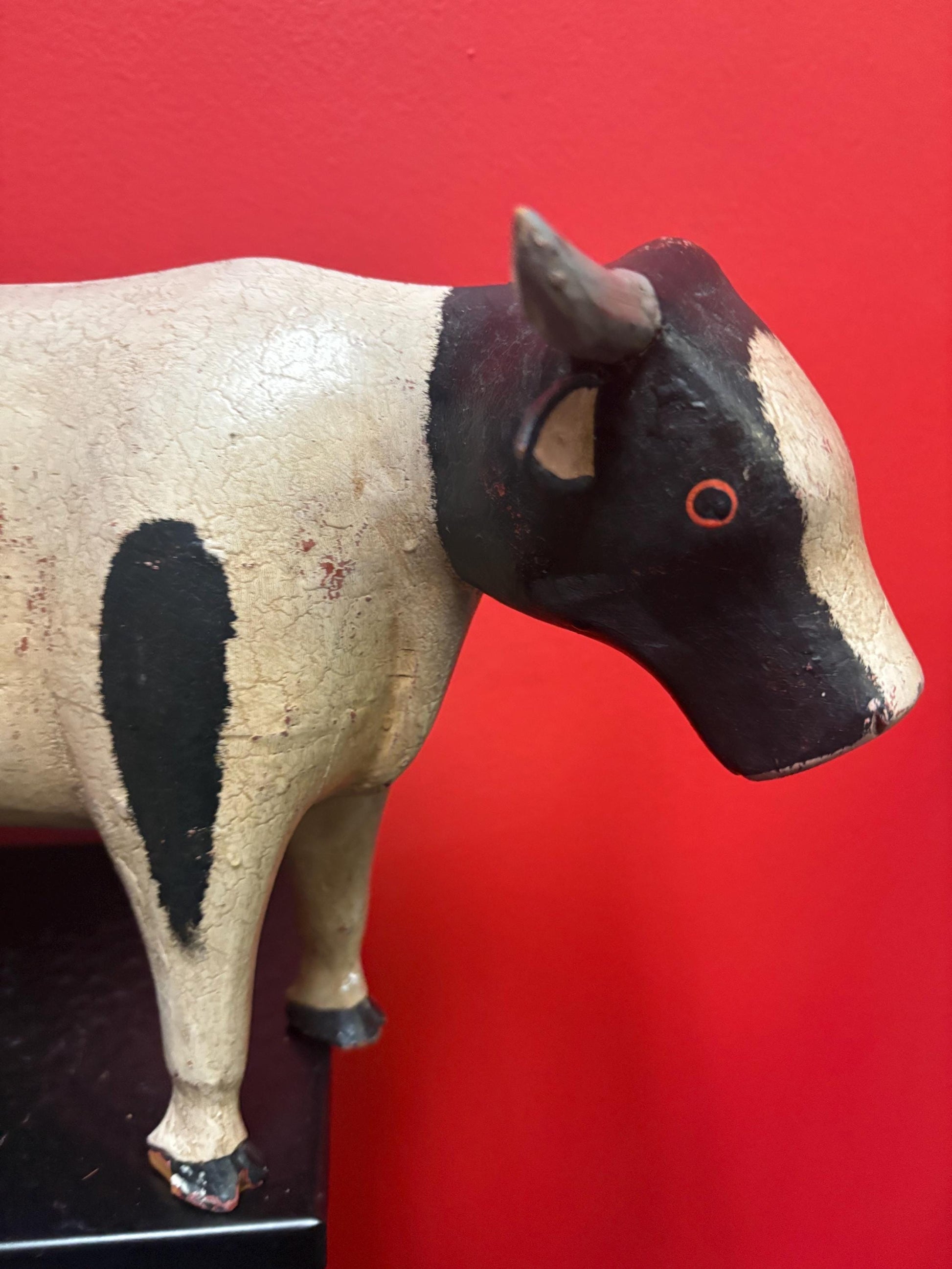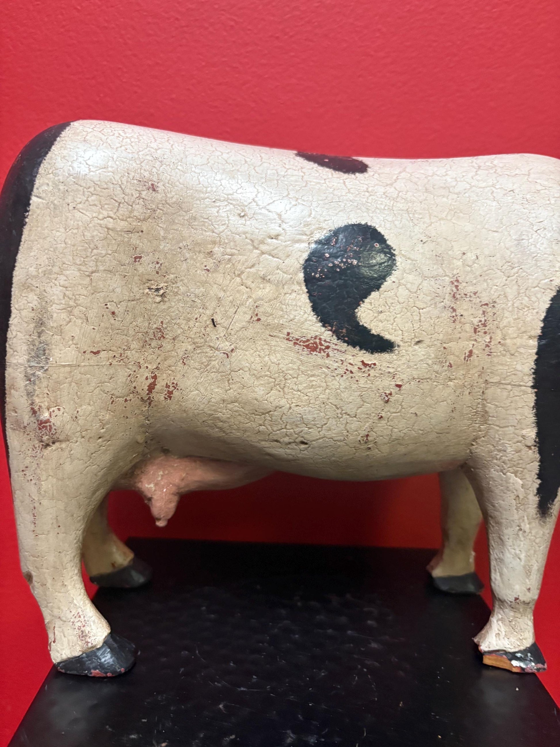 Absolutely fabulous folk art wooden cow great detail and beautiful patina older piece and great gift - 13 x 8 high