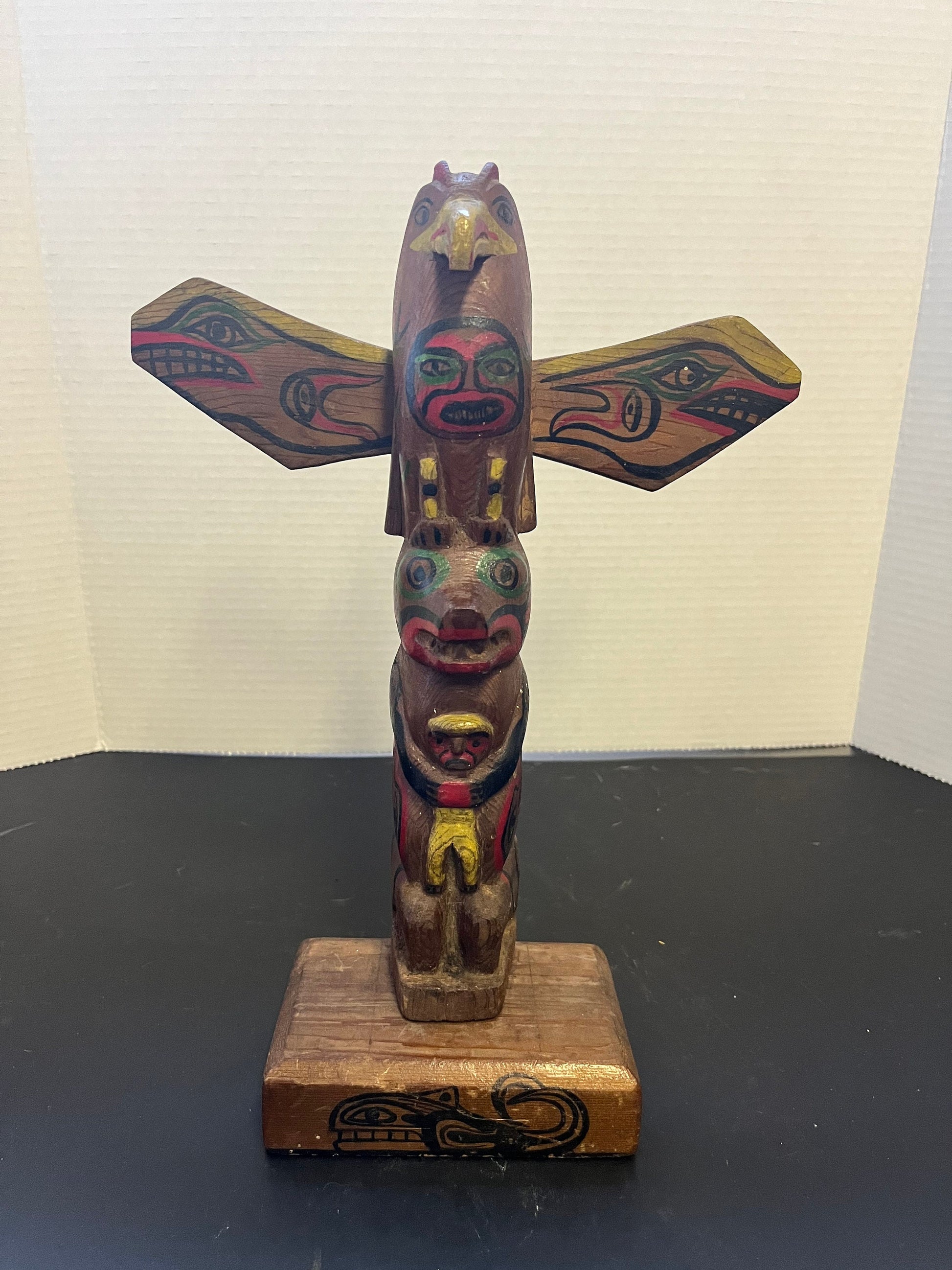 Absolutely fantastic 12 inch high by 9 inch wide antique Pacific Northwest indigenous first nations Polychrome painted and carved totem pole