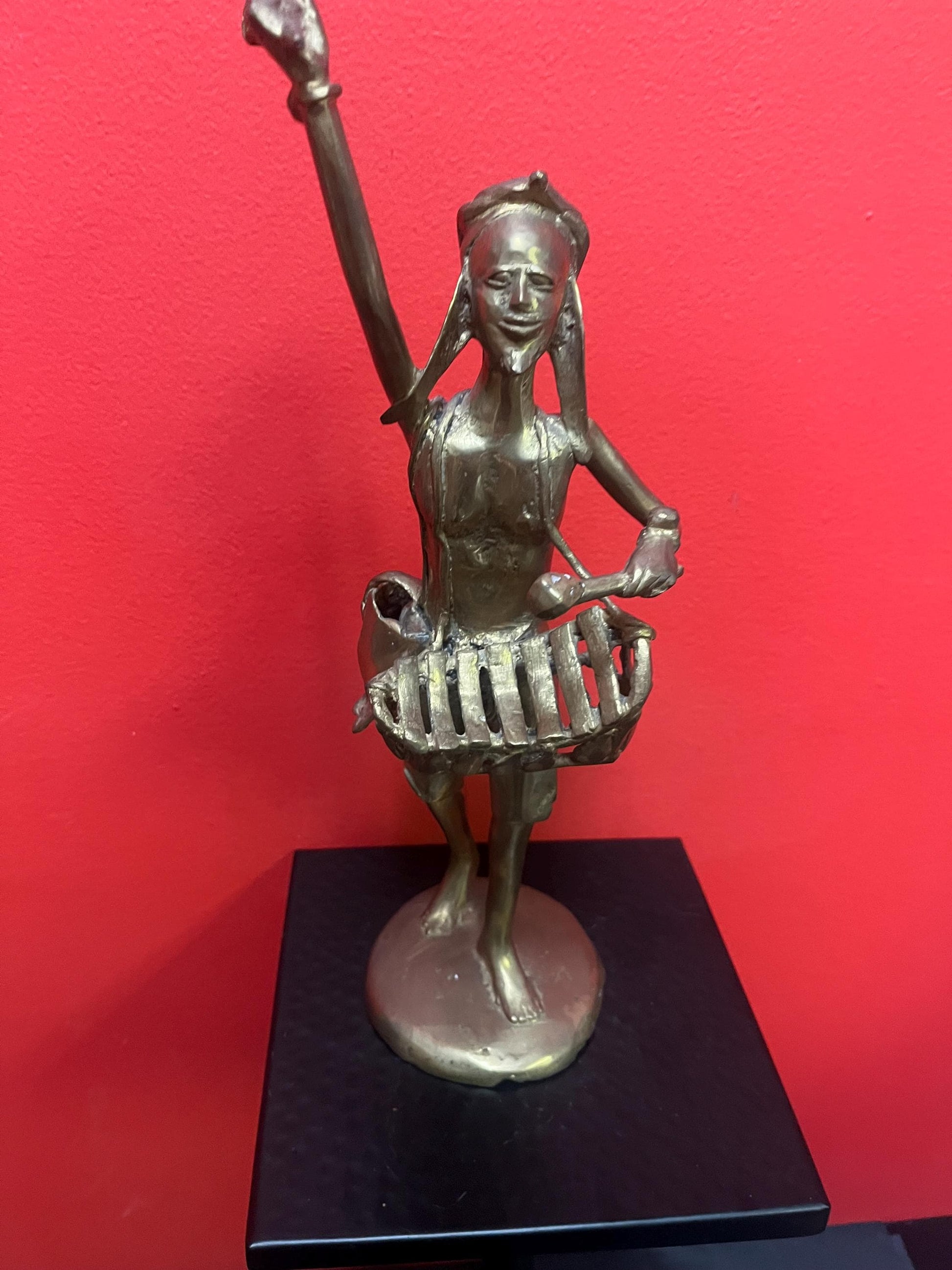 Absolutely stunning 14 inch tall, antique Ashanti African bronze statue of a drummer from major collection with amazing patina