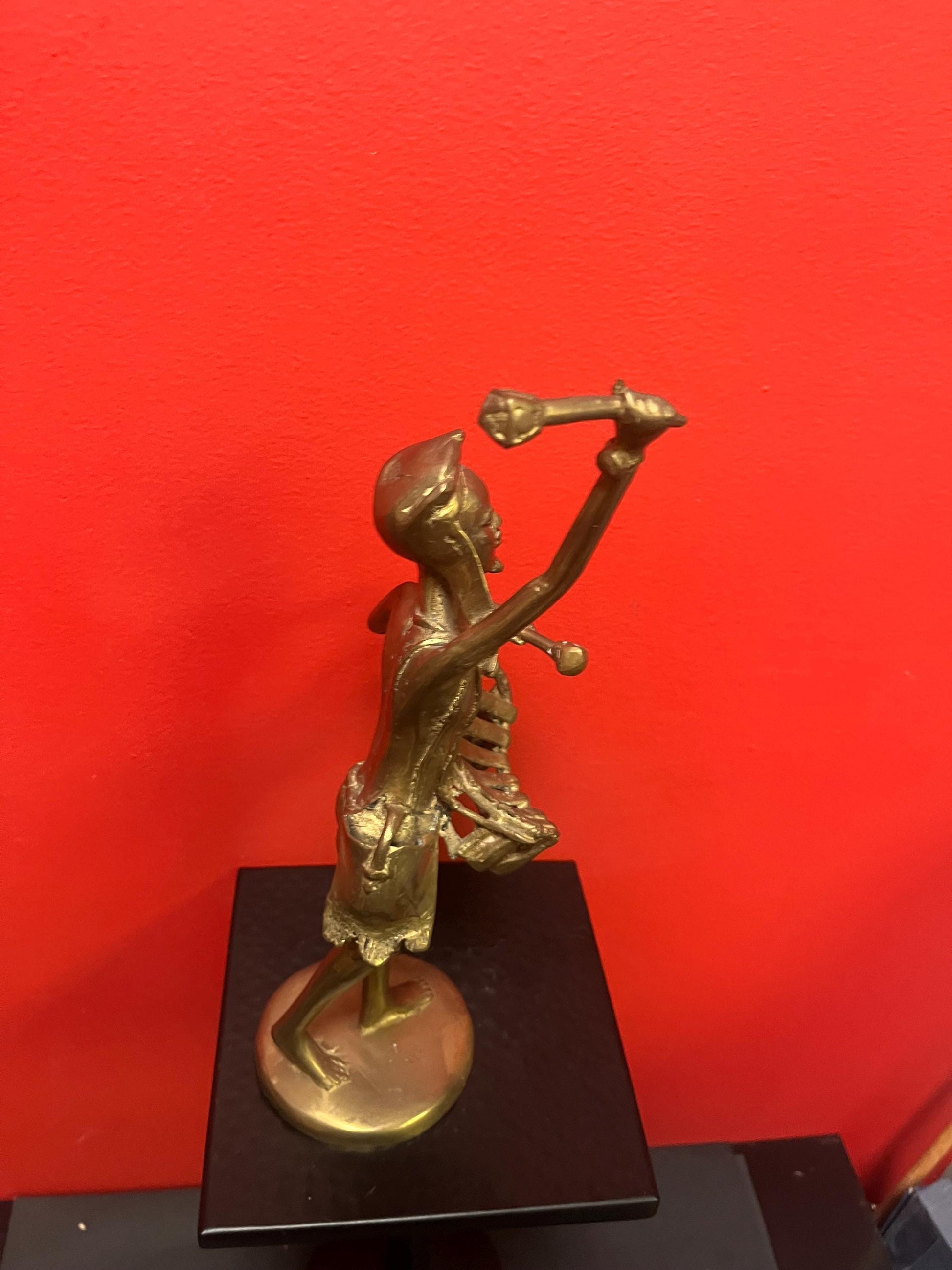 Absolutely stunning 14 inch tall, antique Ashanti African bronze statue of a drummer from major collection with amazing patina