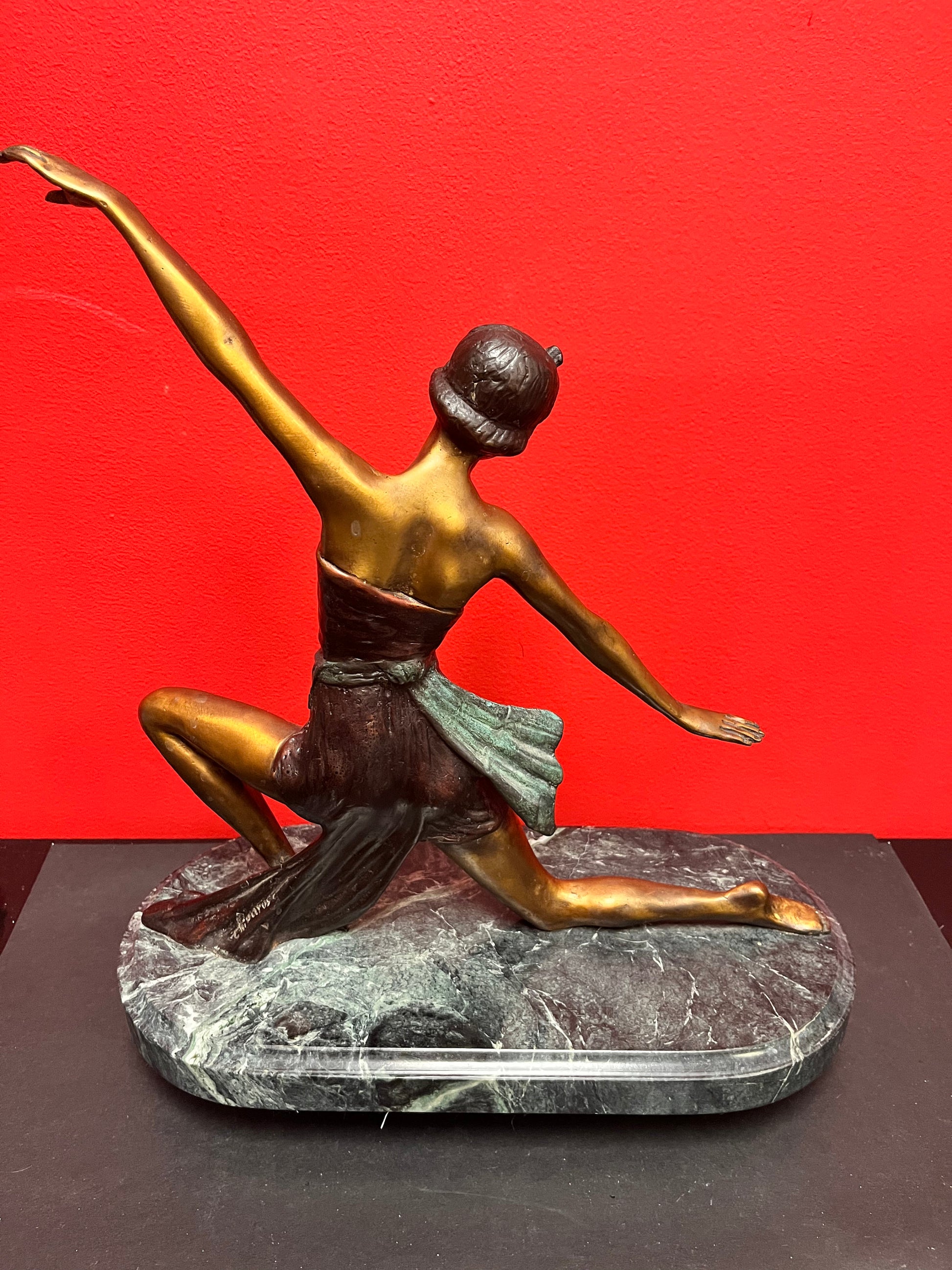Absolutely stunning 16 x 16 signed bronze Chiparus dancer on marble stand impressive and heavy