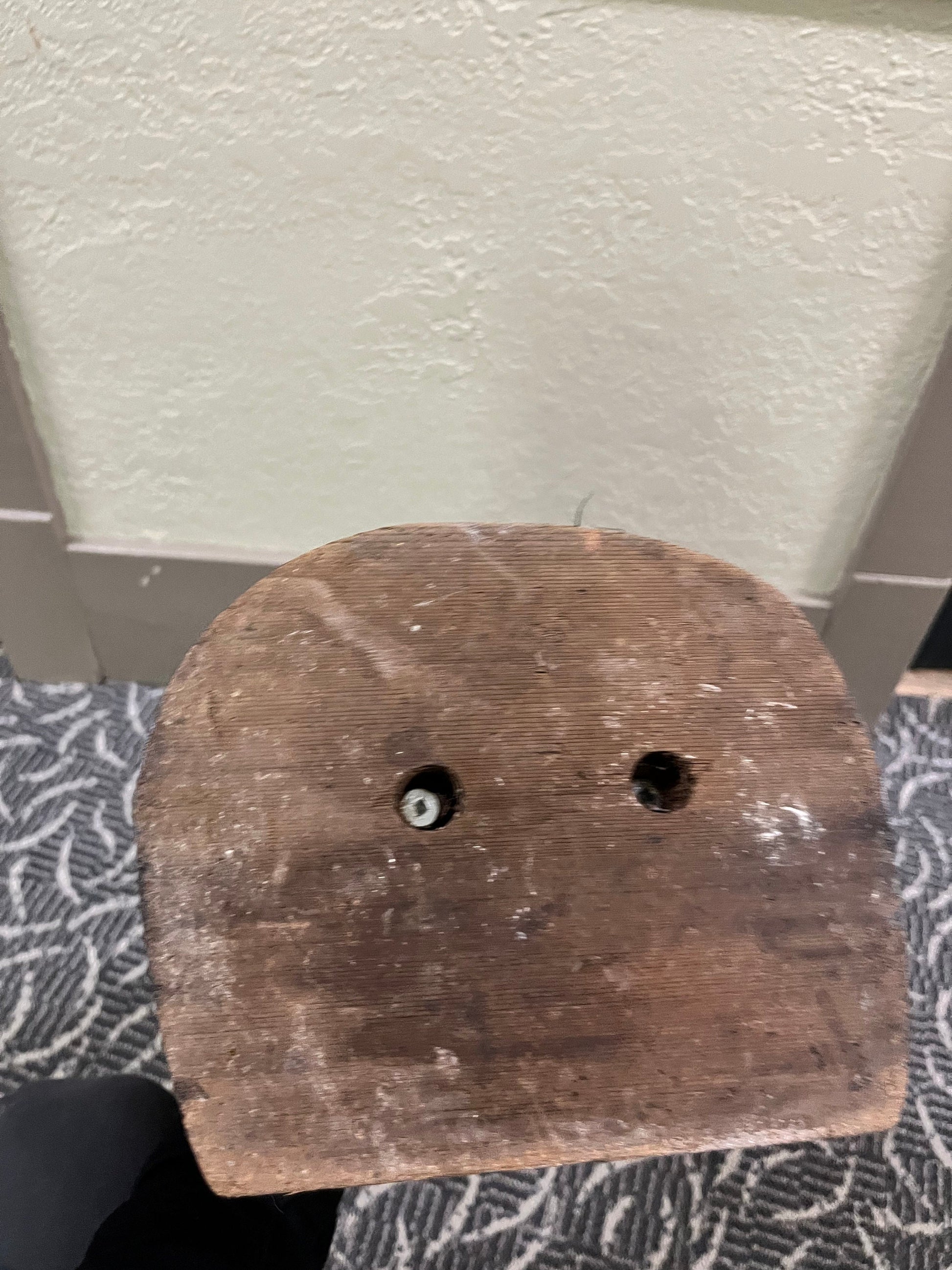 We believe the base may be reattached at some point with the screws because they look much newer than the piece