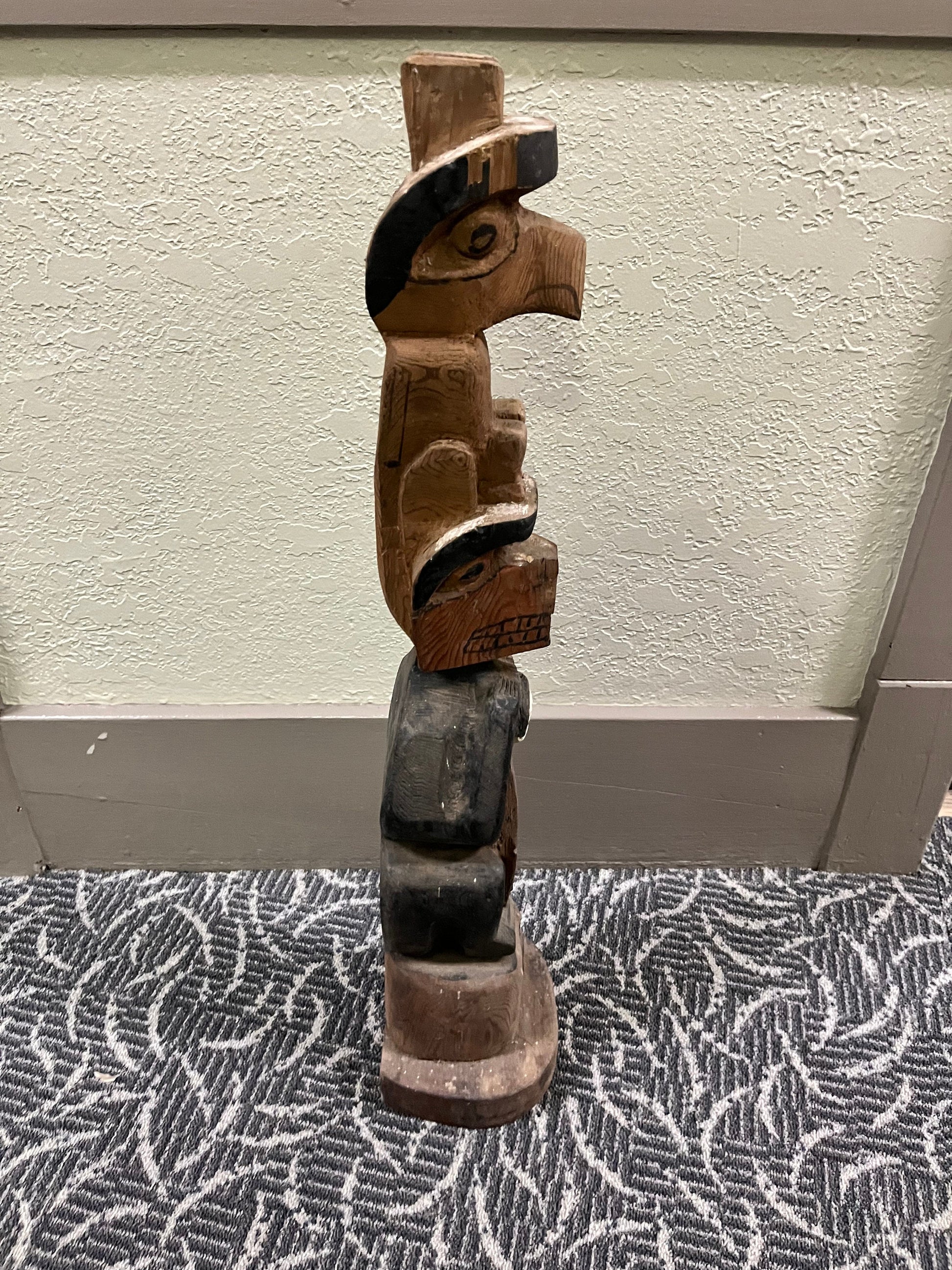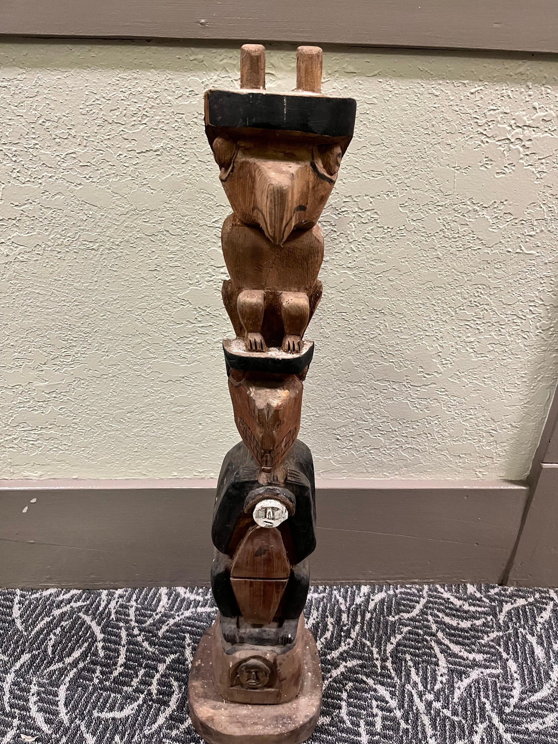Absolutely stunning 32 inch high antique museum quality indigenous, first nations, West Coast haida totem pole