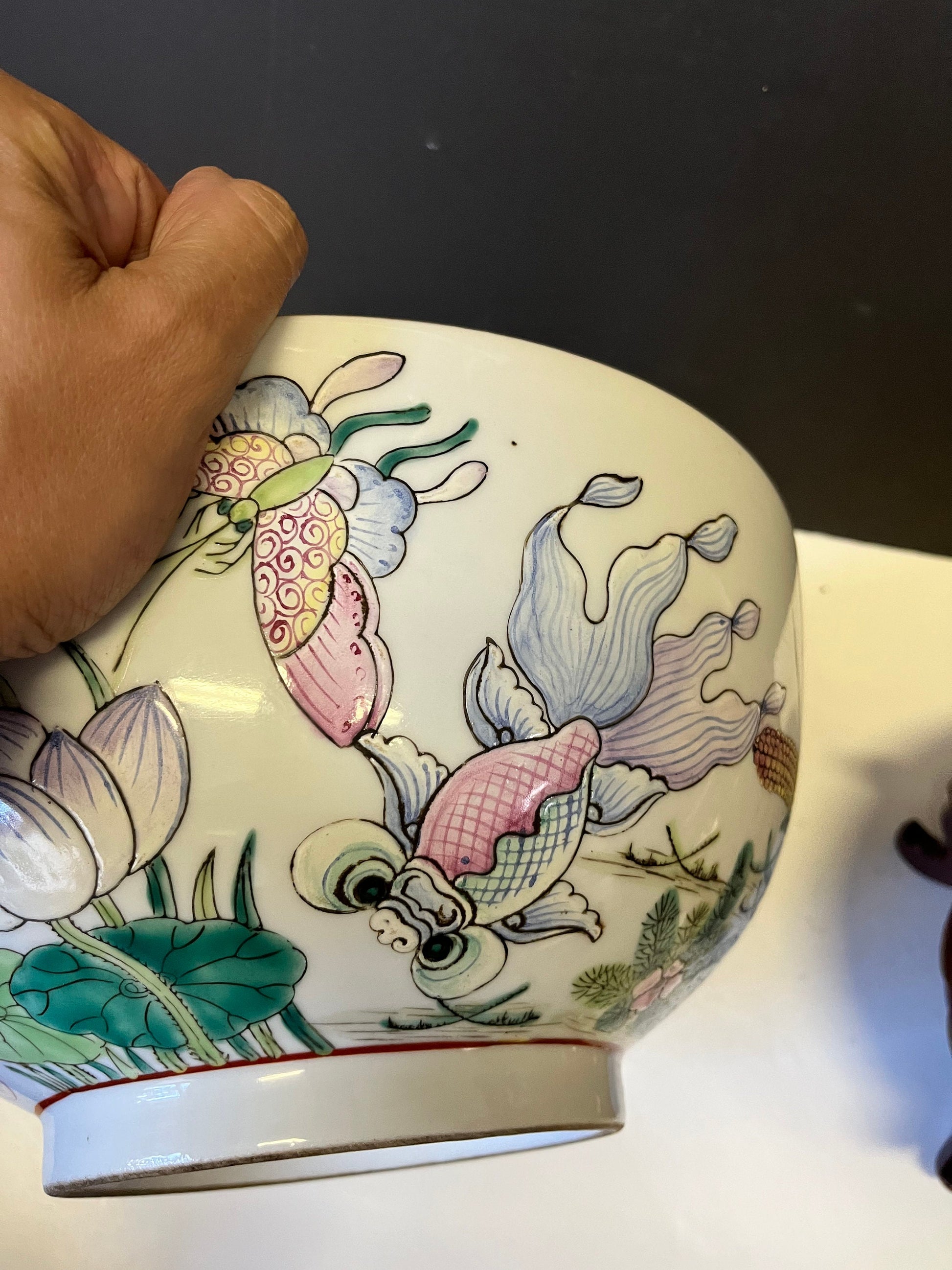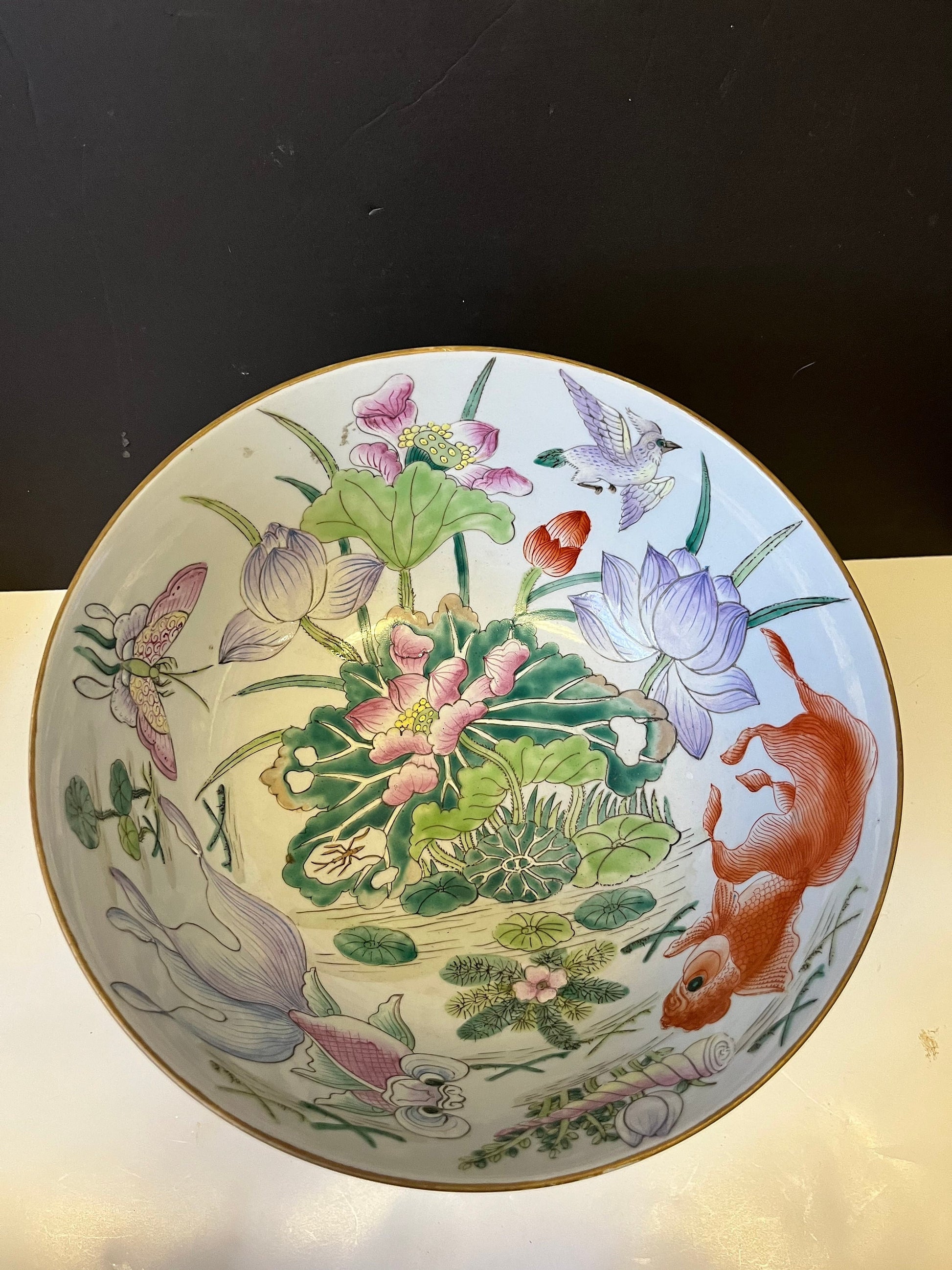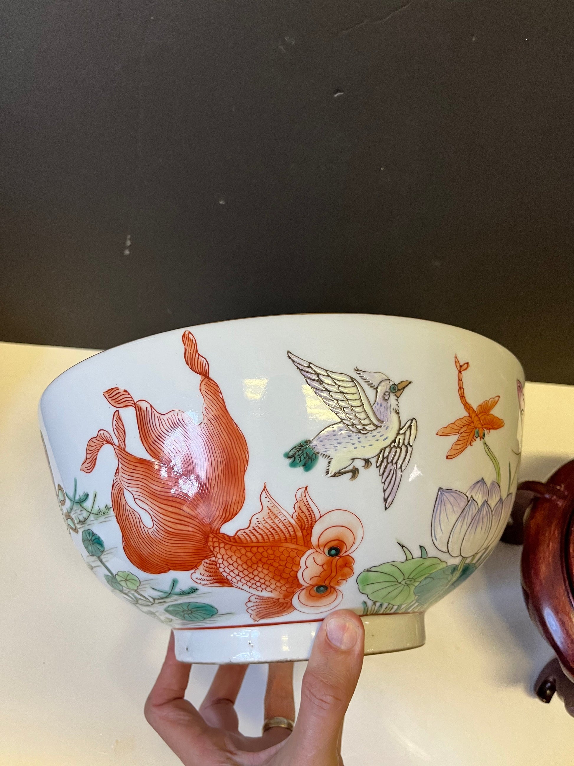 Absolutely stunning Chinese 12 inch signed Polichrome heavily decorated bowl on Rosewood stand Unbelievable quality & detail - great price