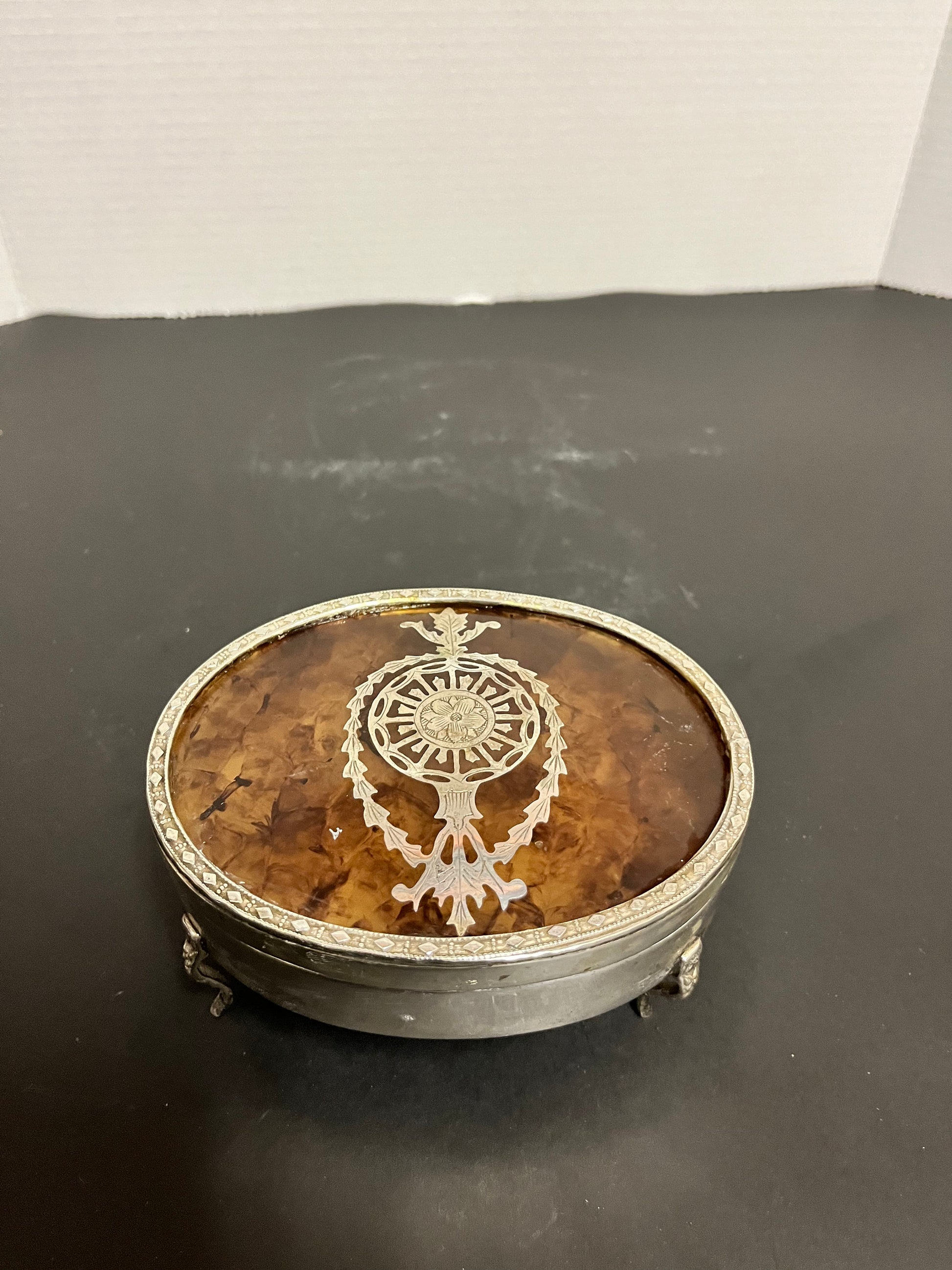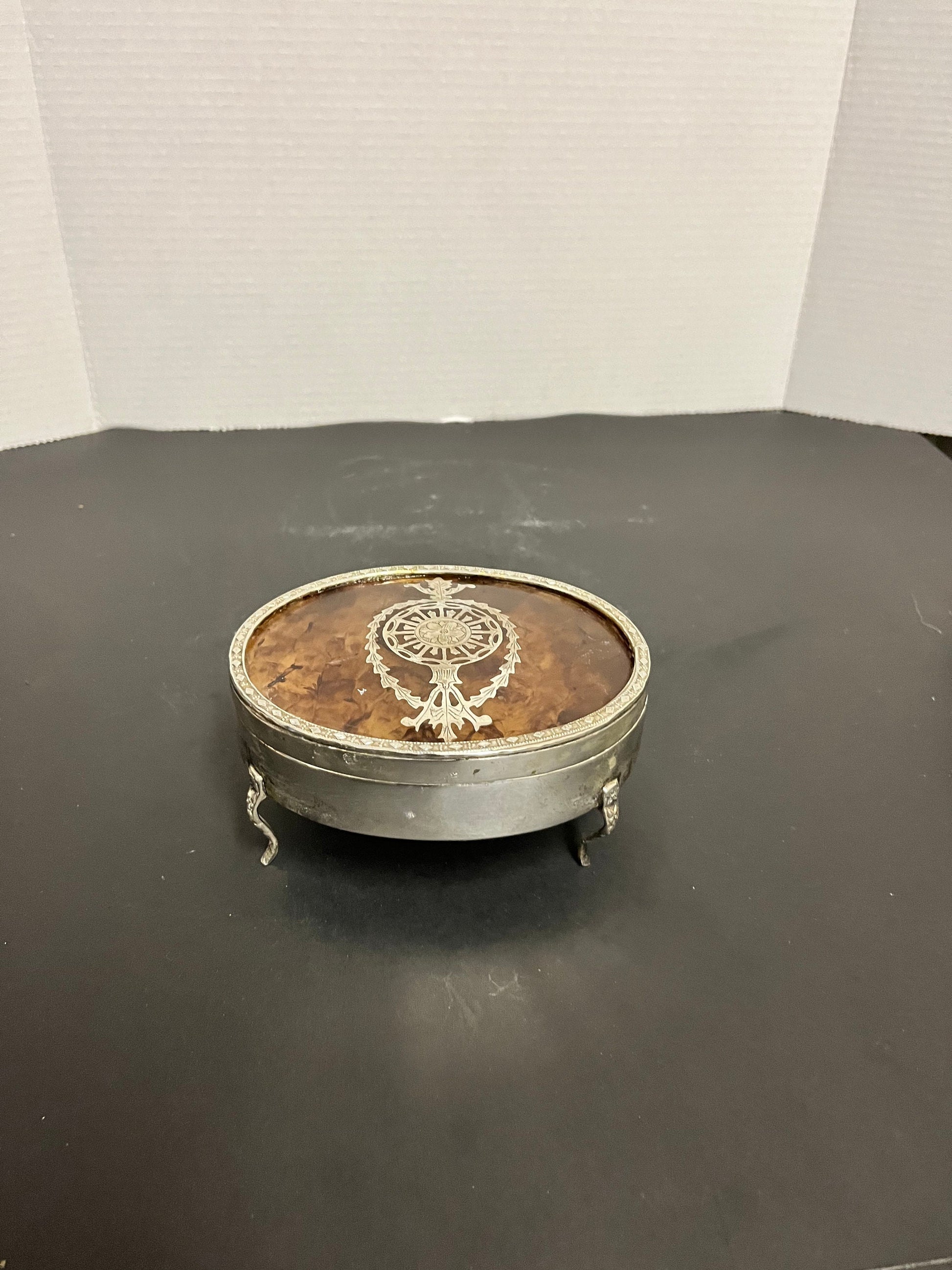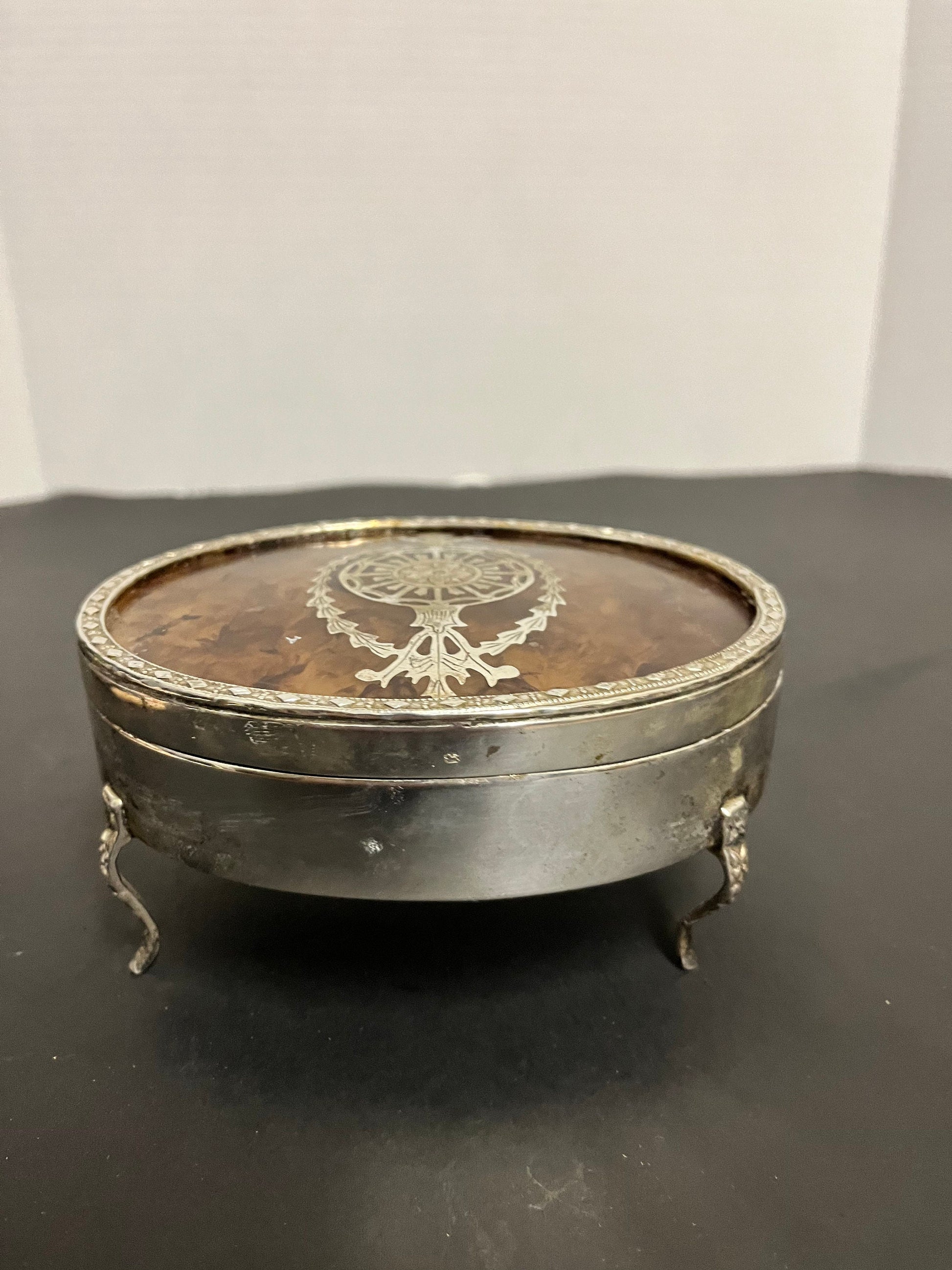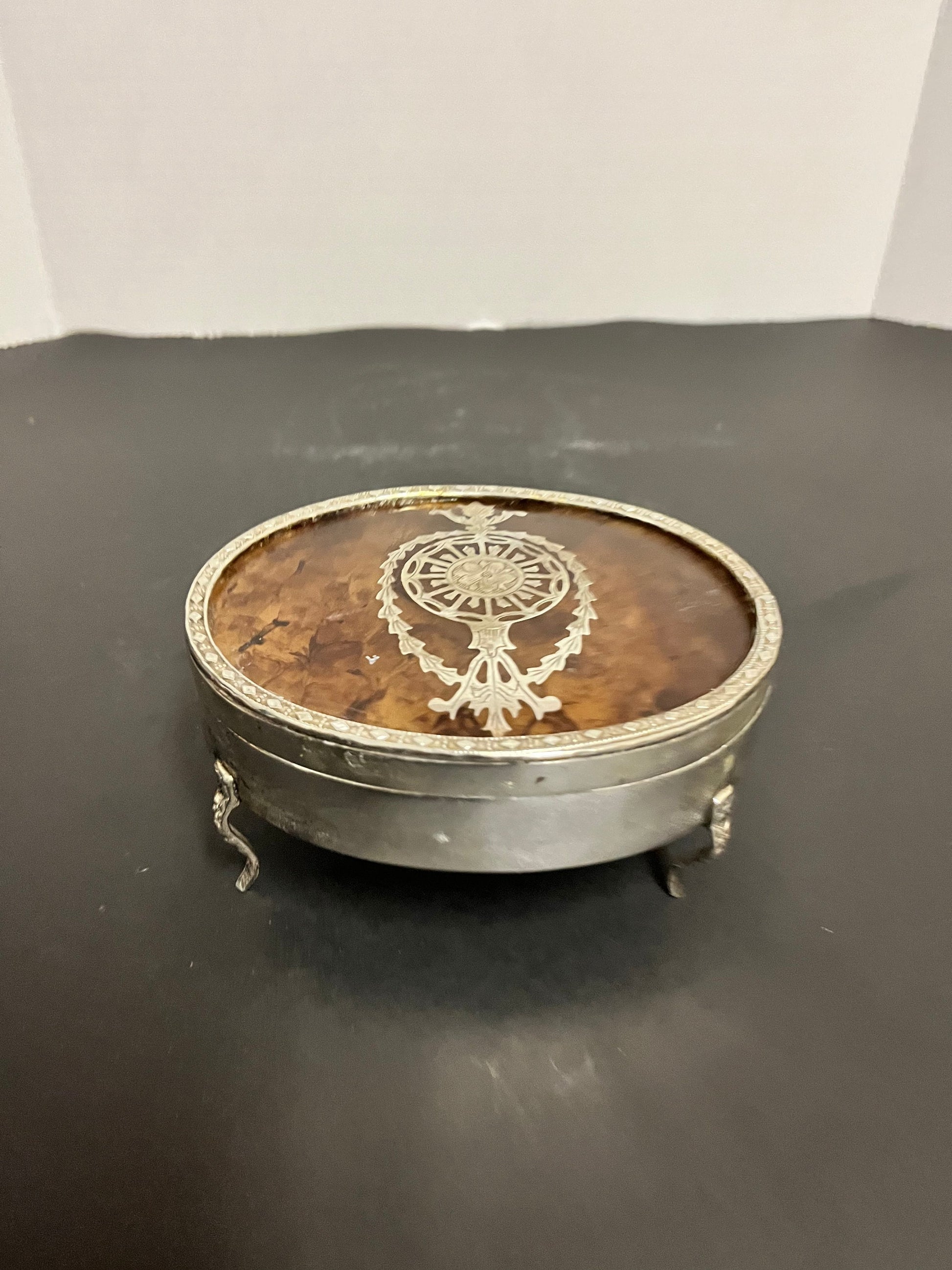 Absolutely stunning solid silver and tortoiseshell lidded box with sexy legs stunning condition, and a wonderful piece for a gift