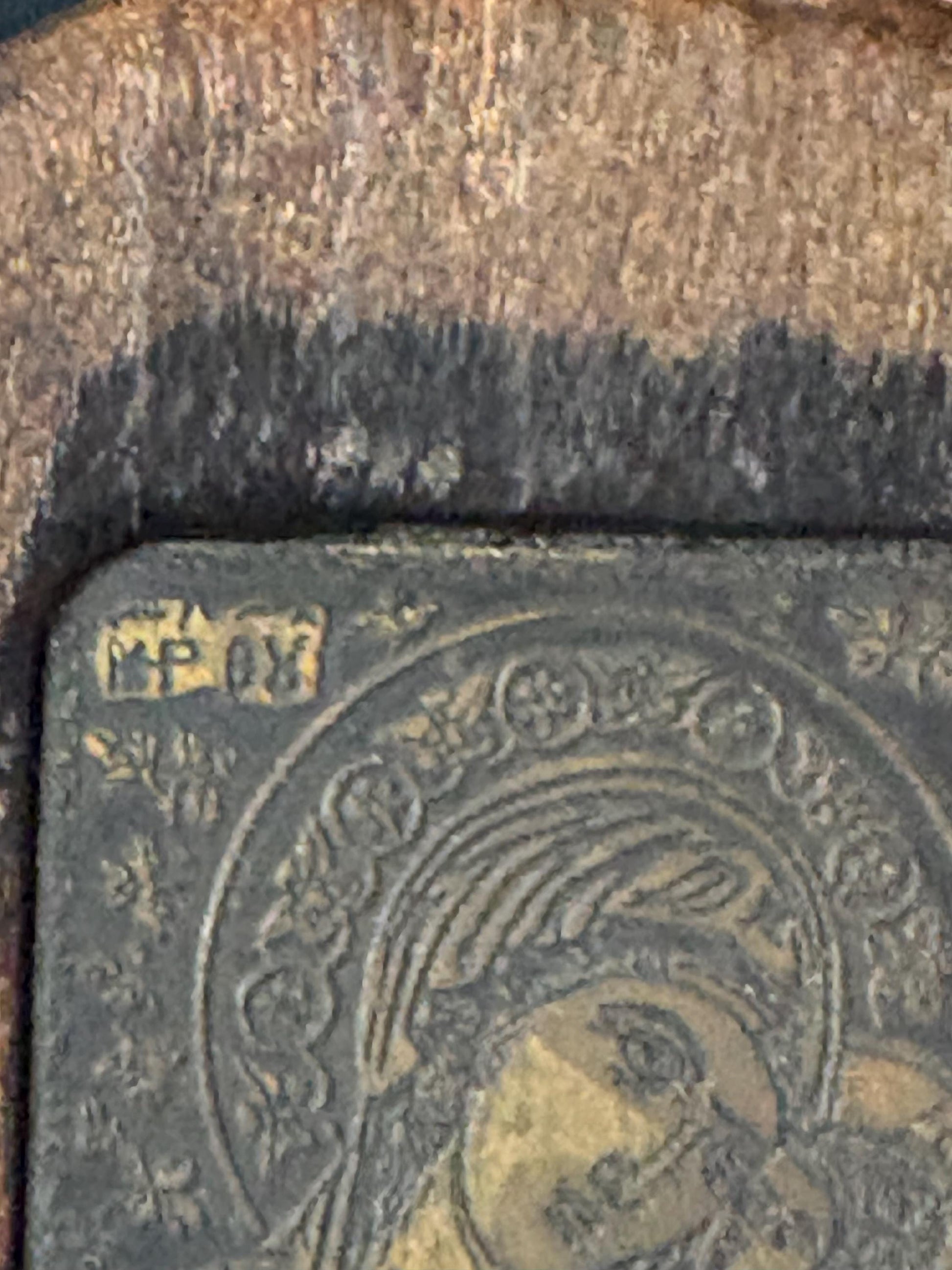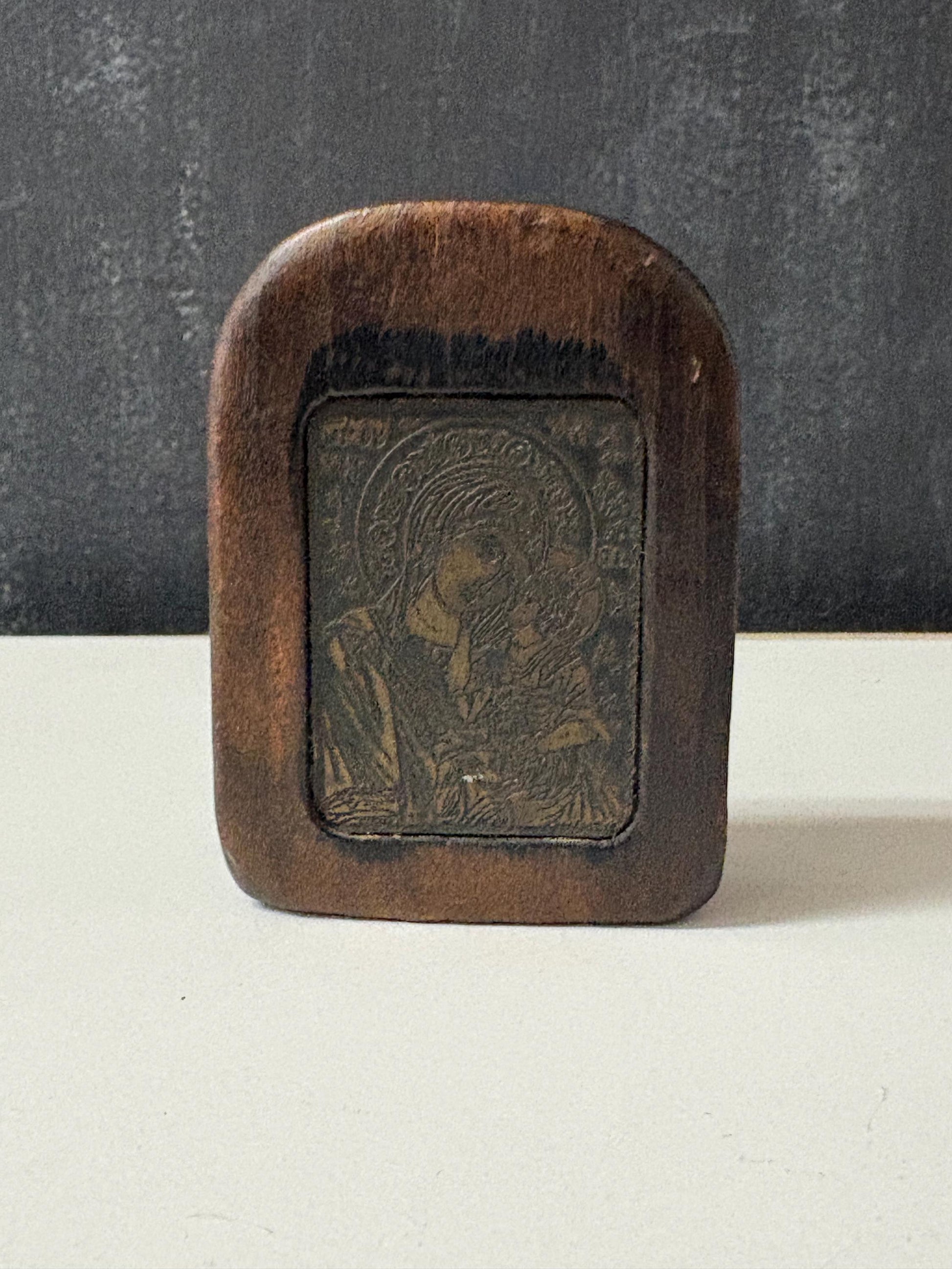 Absolutely wonderful antique European bronze and wooden icon with stand intricate detail 3 inches tall - powerful piece