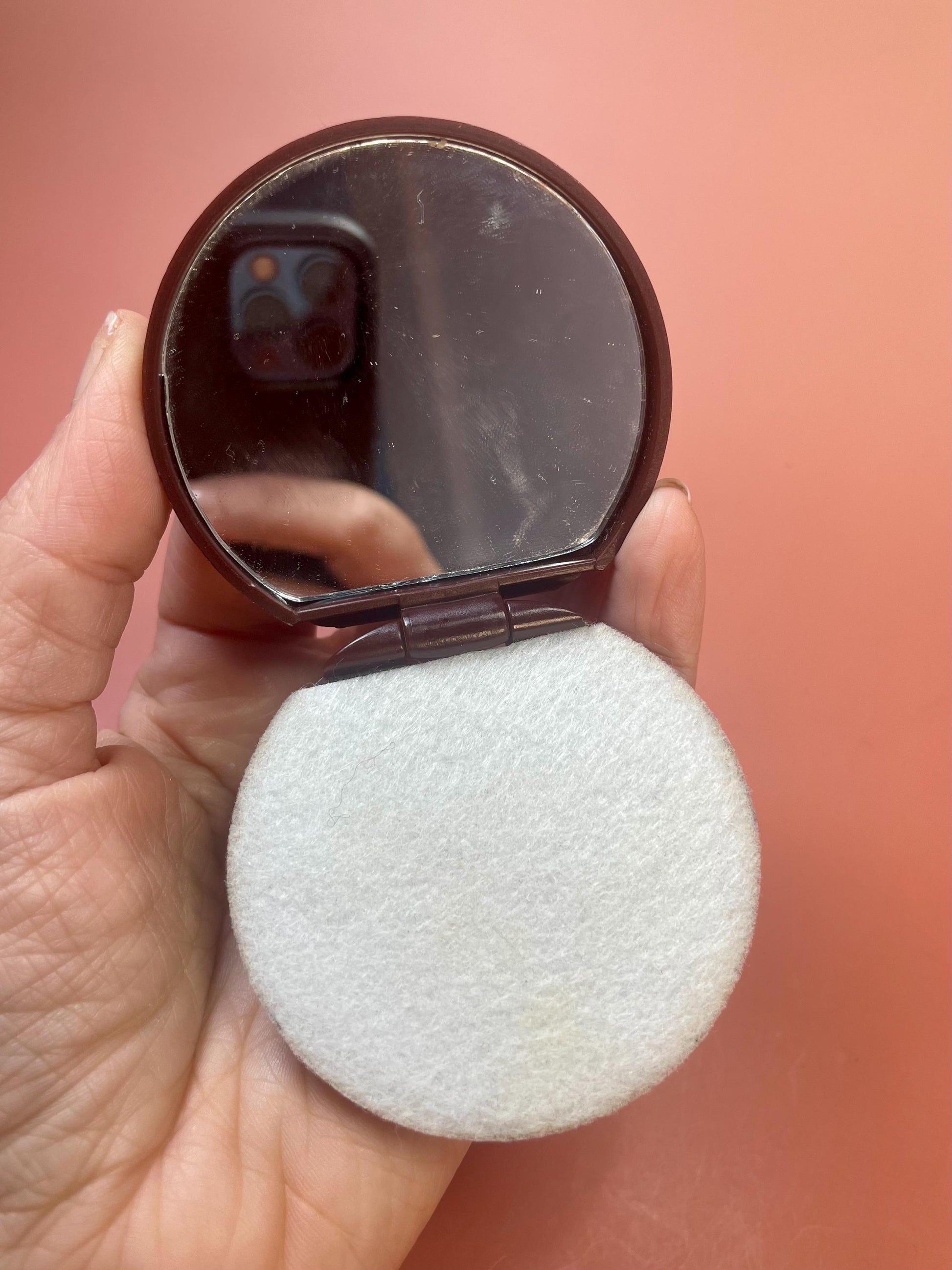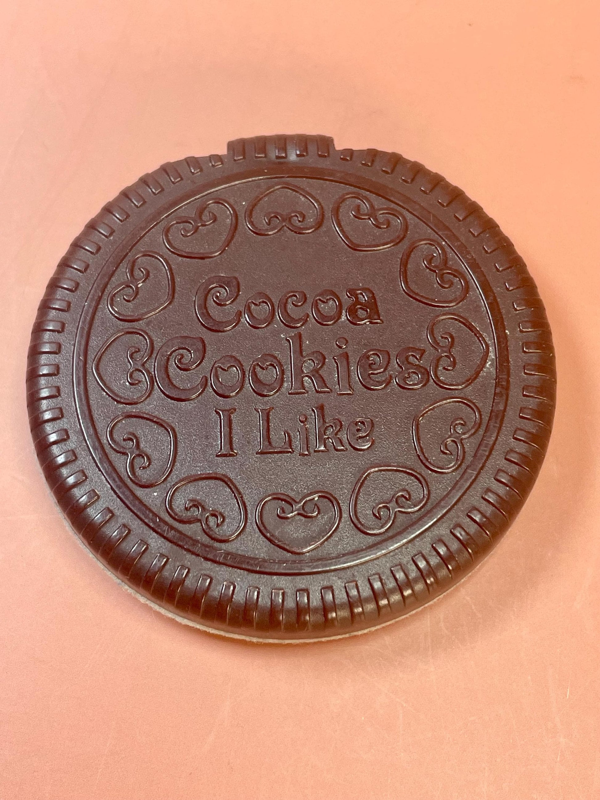 This adorable vintage compact mirror is designed to look just like a cookie, adding a bit of whimsy to your beauty routine. Pocket-sized for quick touch-ups anywhere.