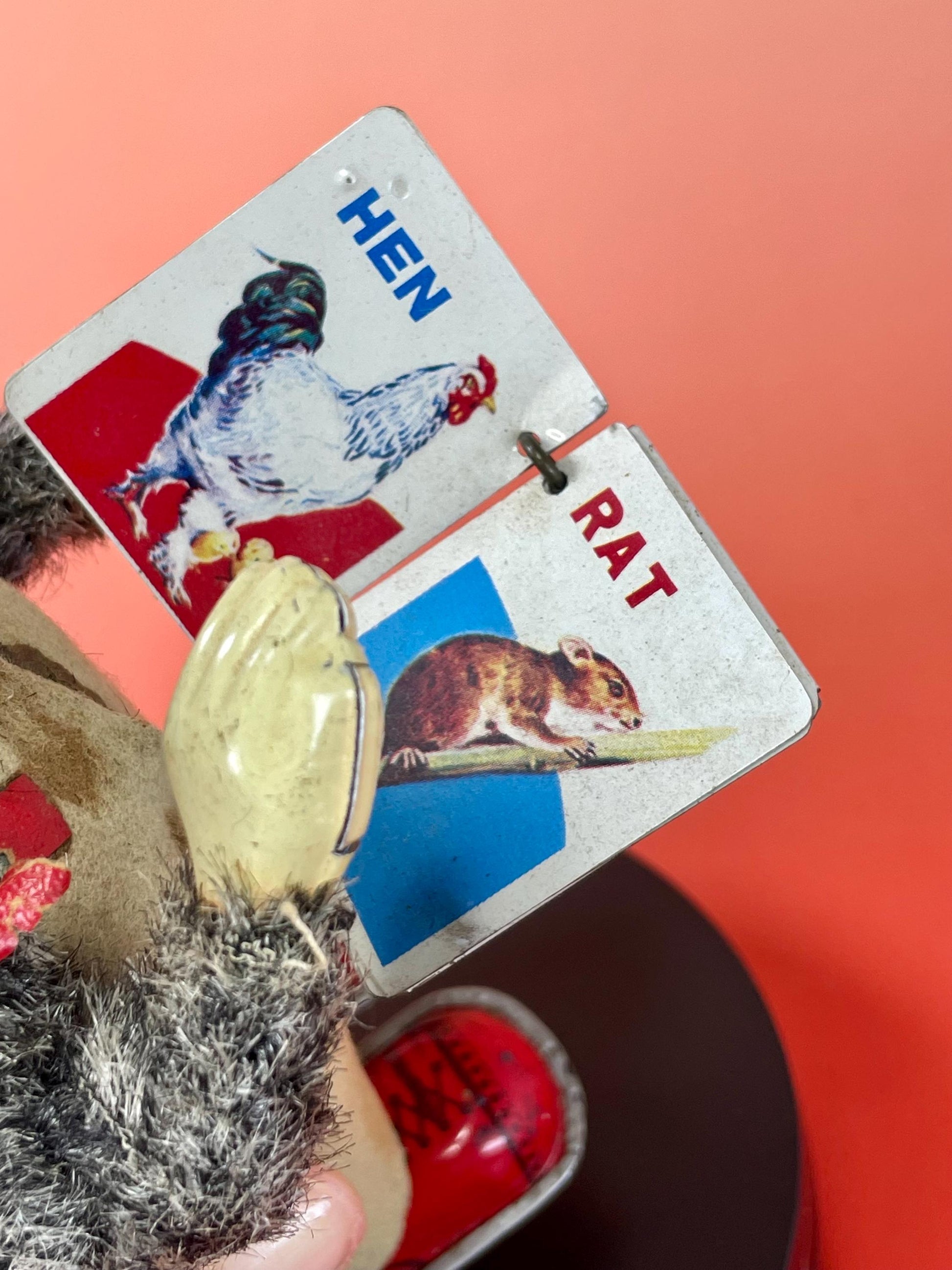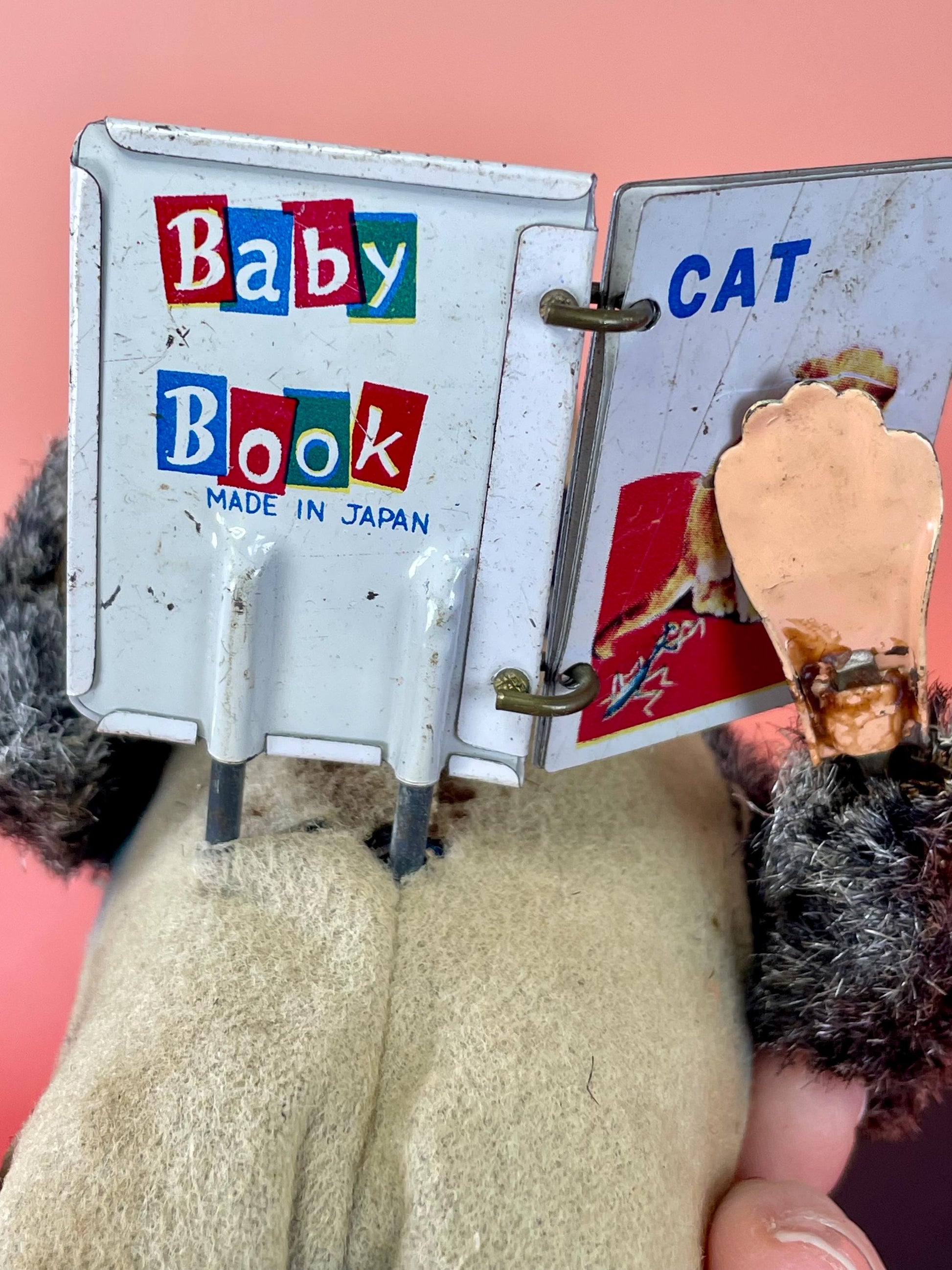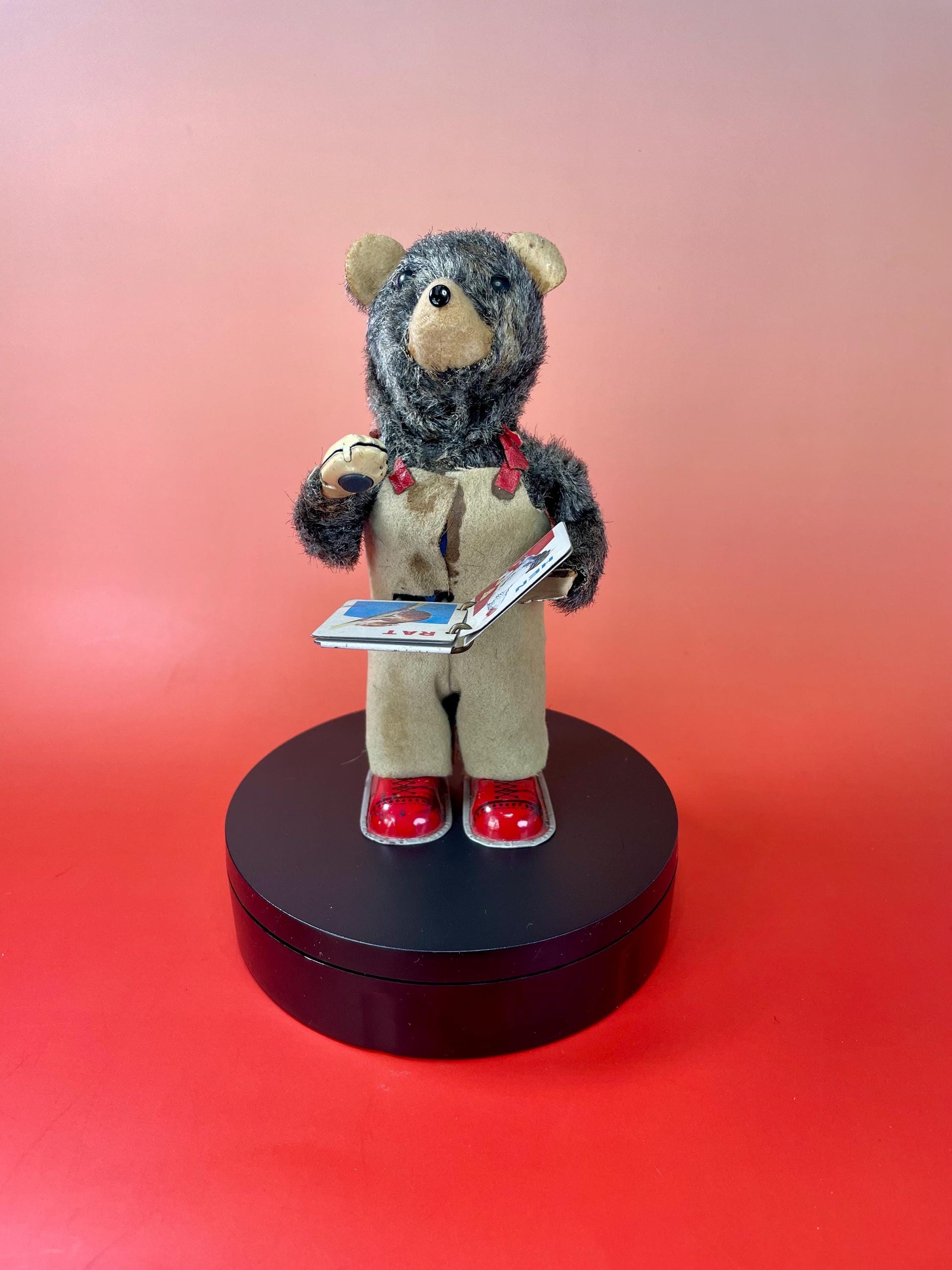 Delightfully nostalgic, this vintage wind-up bear charmingly flips through a book with every turn of the key. A whimsical collectible that brings storytime to life!