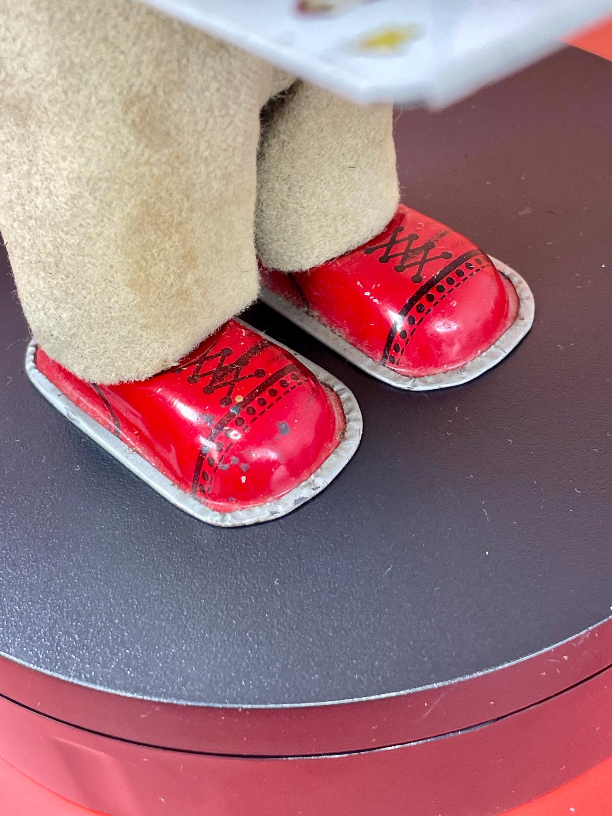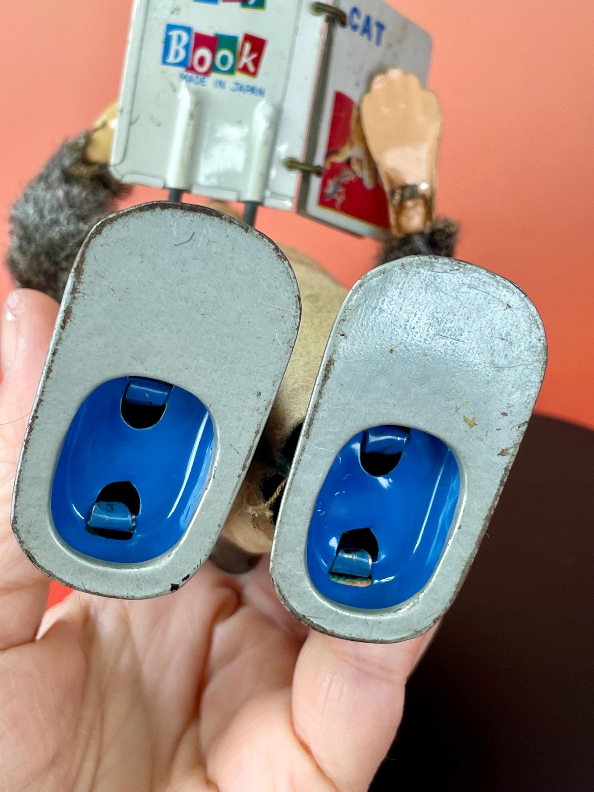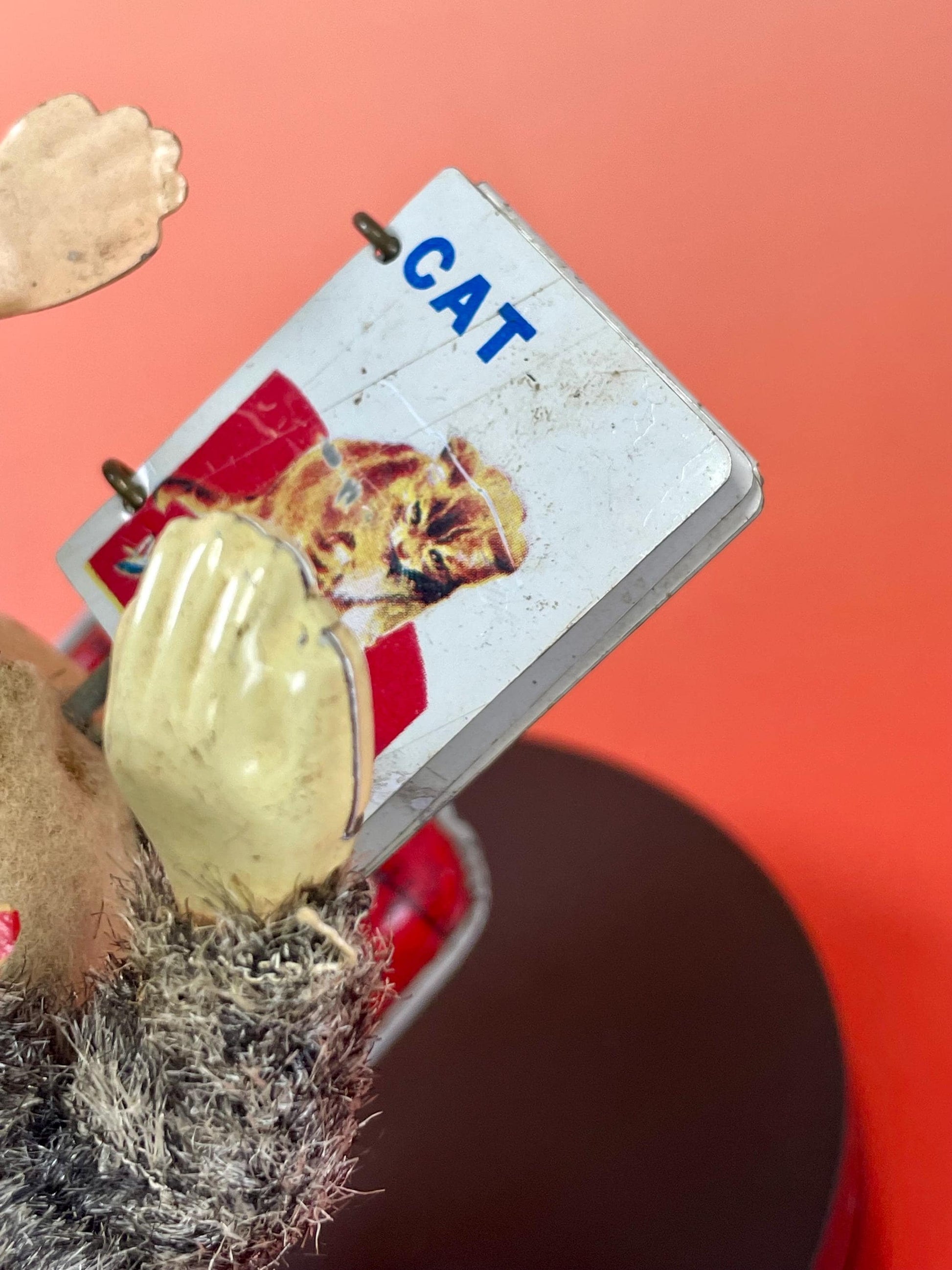 Delightfully nostalgic, this vintage wind-up bear charmingly flips through a book with every turn of the key. A whimsical collectible that brings storytime to life!