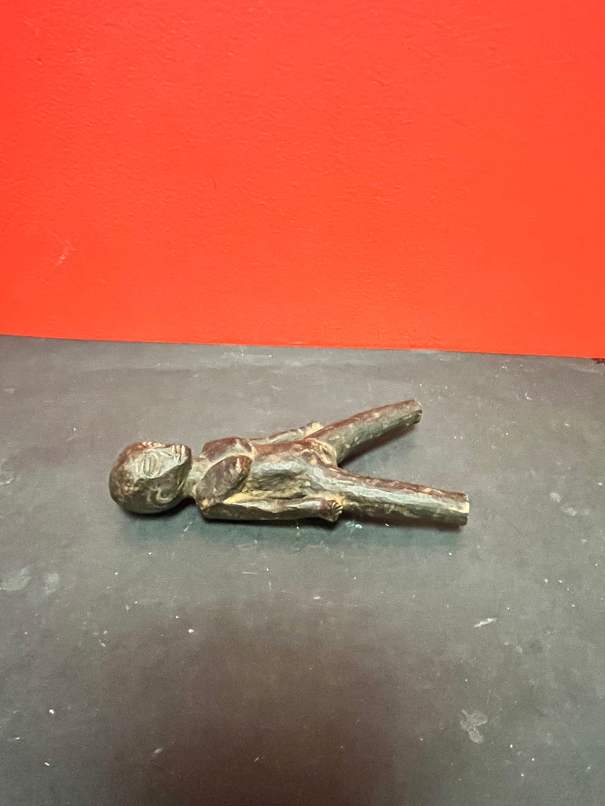 African antique 9 inch lovely wooden statue needs assistance to stand great patina good value