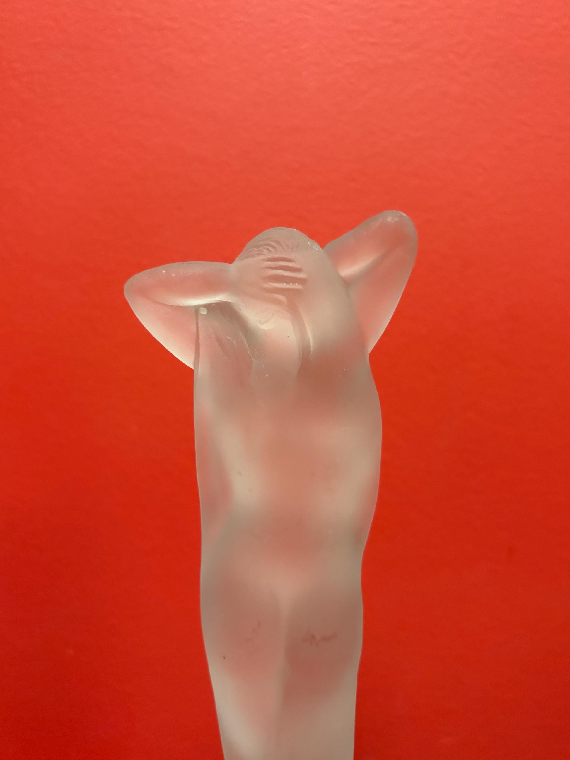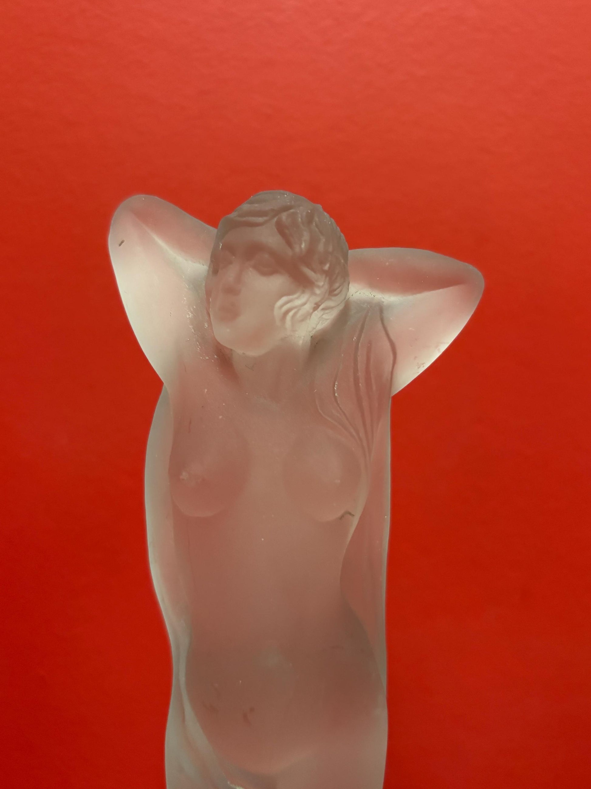 Amazing 10 inch tall antique European frosted art glass nude on wooden stand amazing detail great value and great gift wow