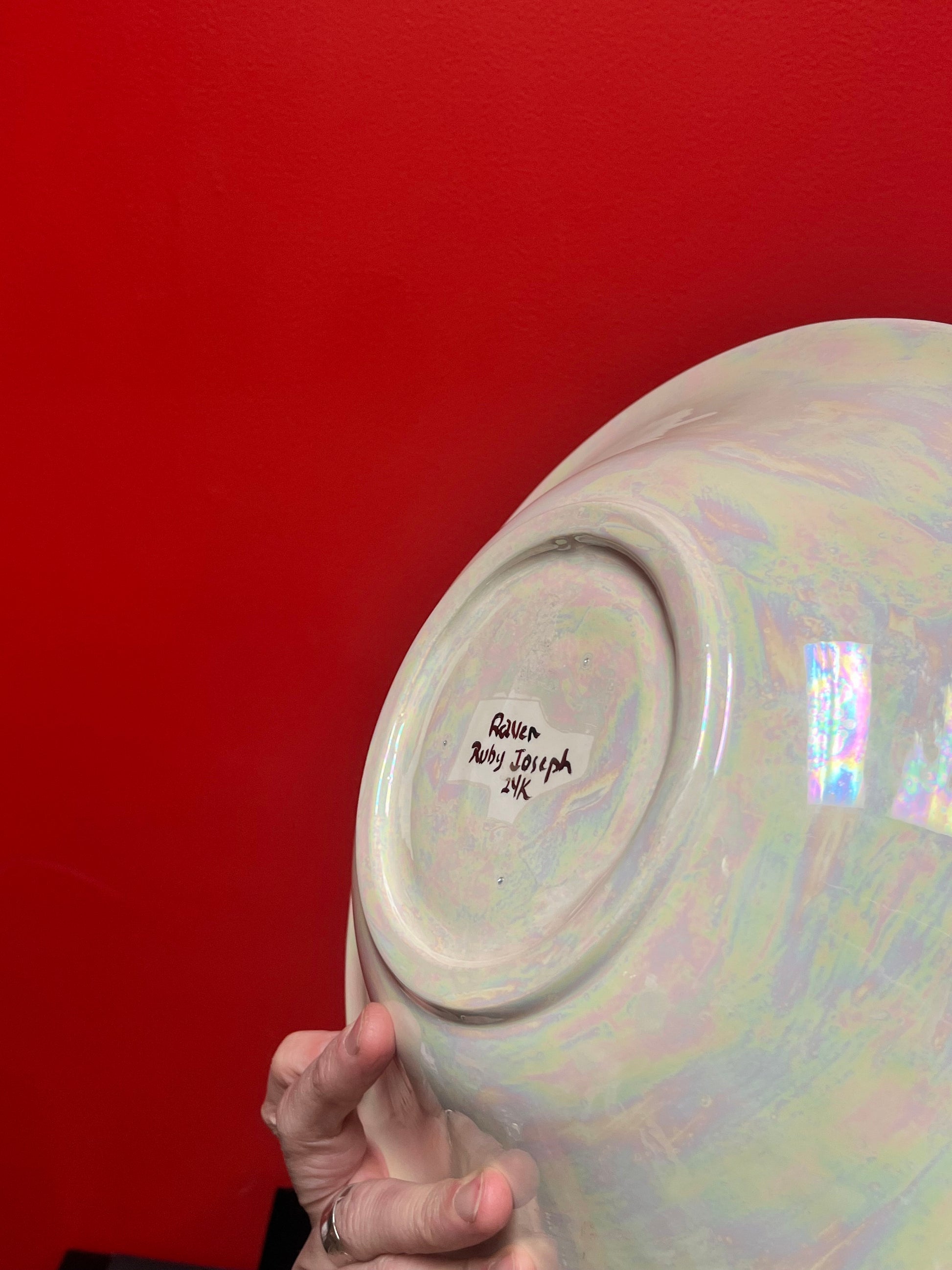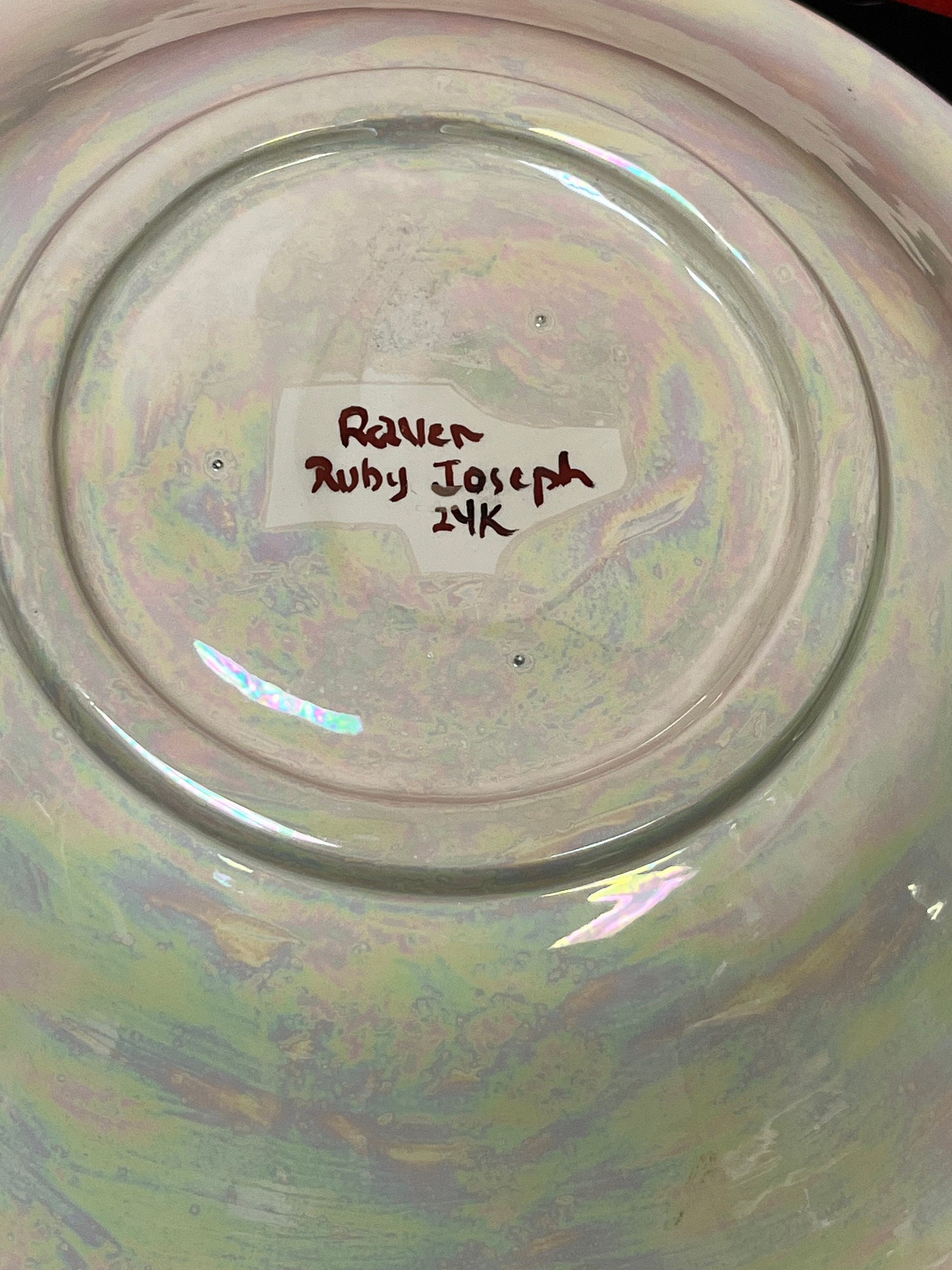 Amazing 12 inch indigenous First Nations raven bowl with 24k gold by ruby Joseph intense quality and craftsmanship