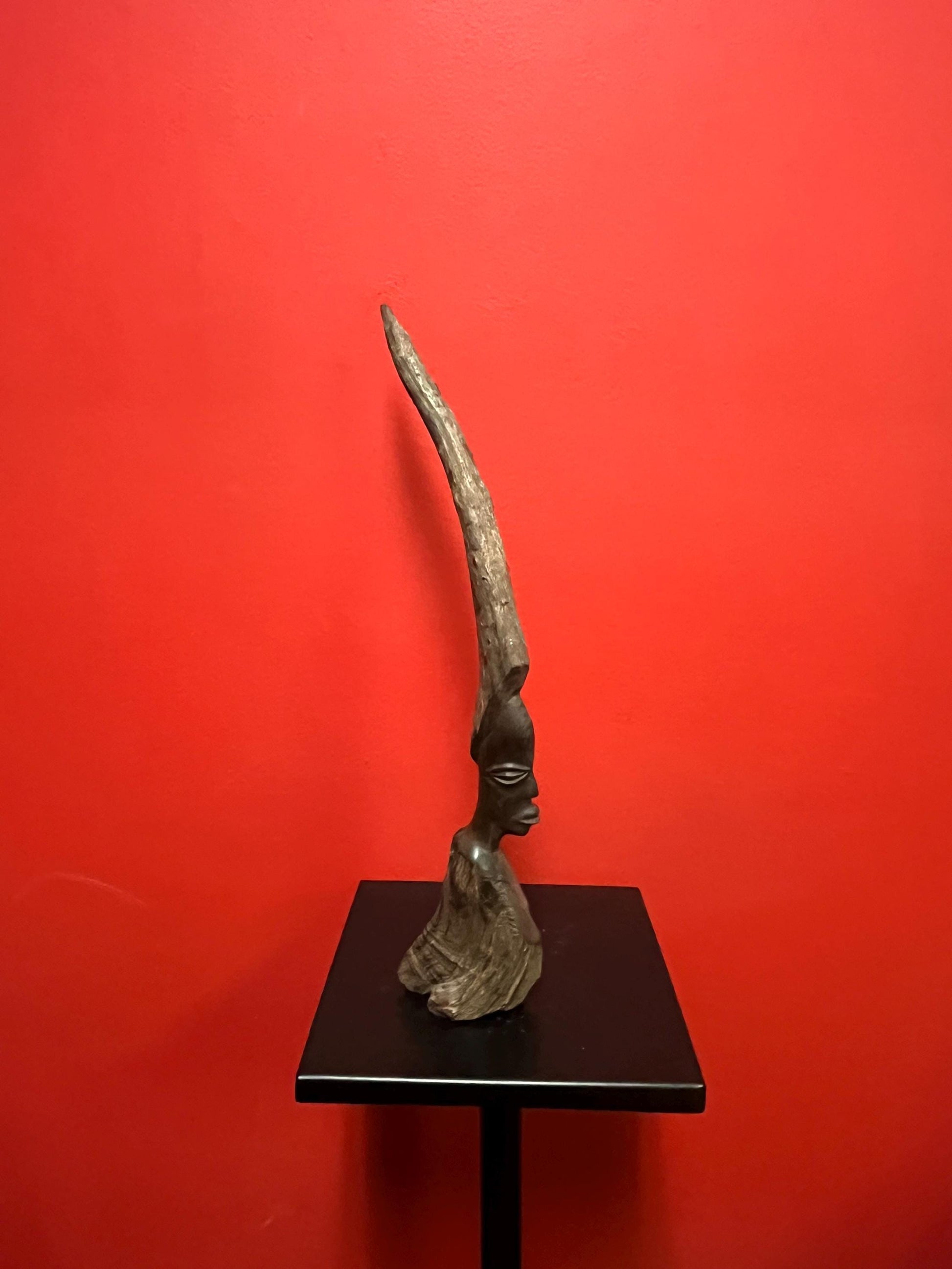 Amazing 15 inch tall African wooden ironwood carved statue of a lady
