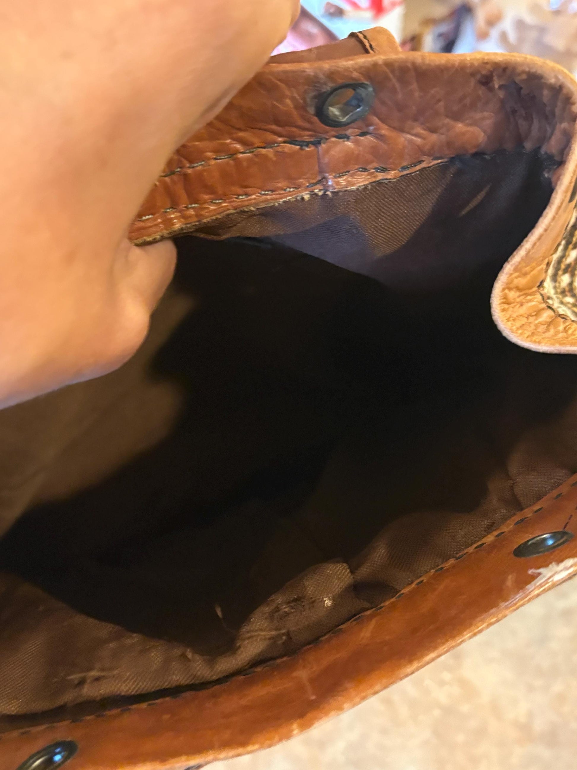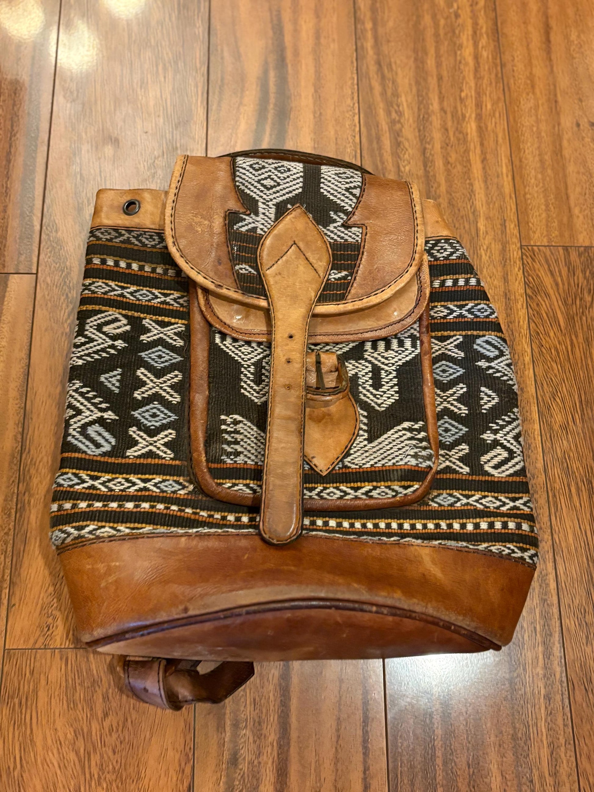 amazing 1970s South American leather and fabric BoHo backpack— approximately 14 x 12“ wide in amazing condition — ready to use— beauty-