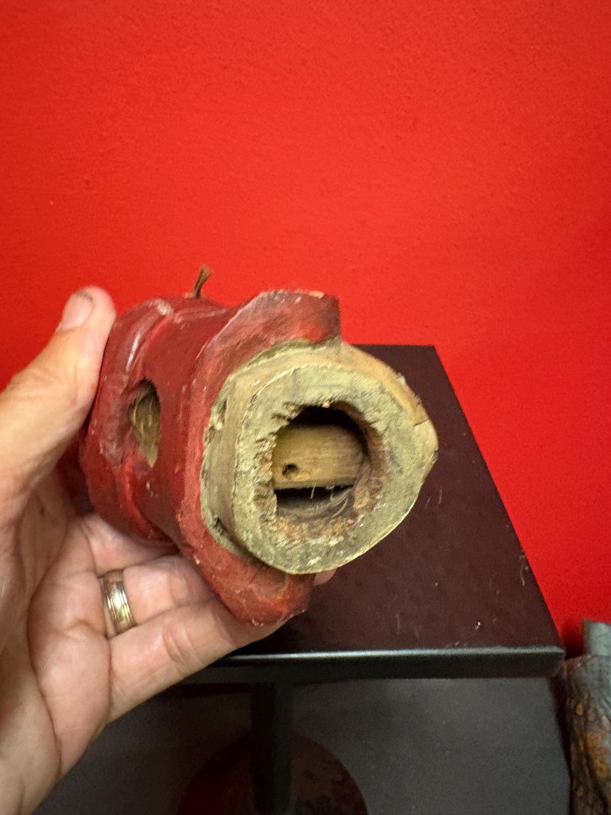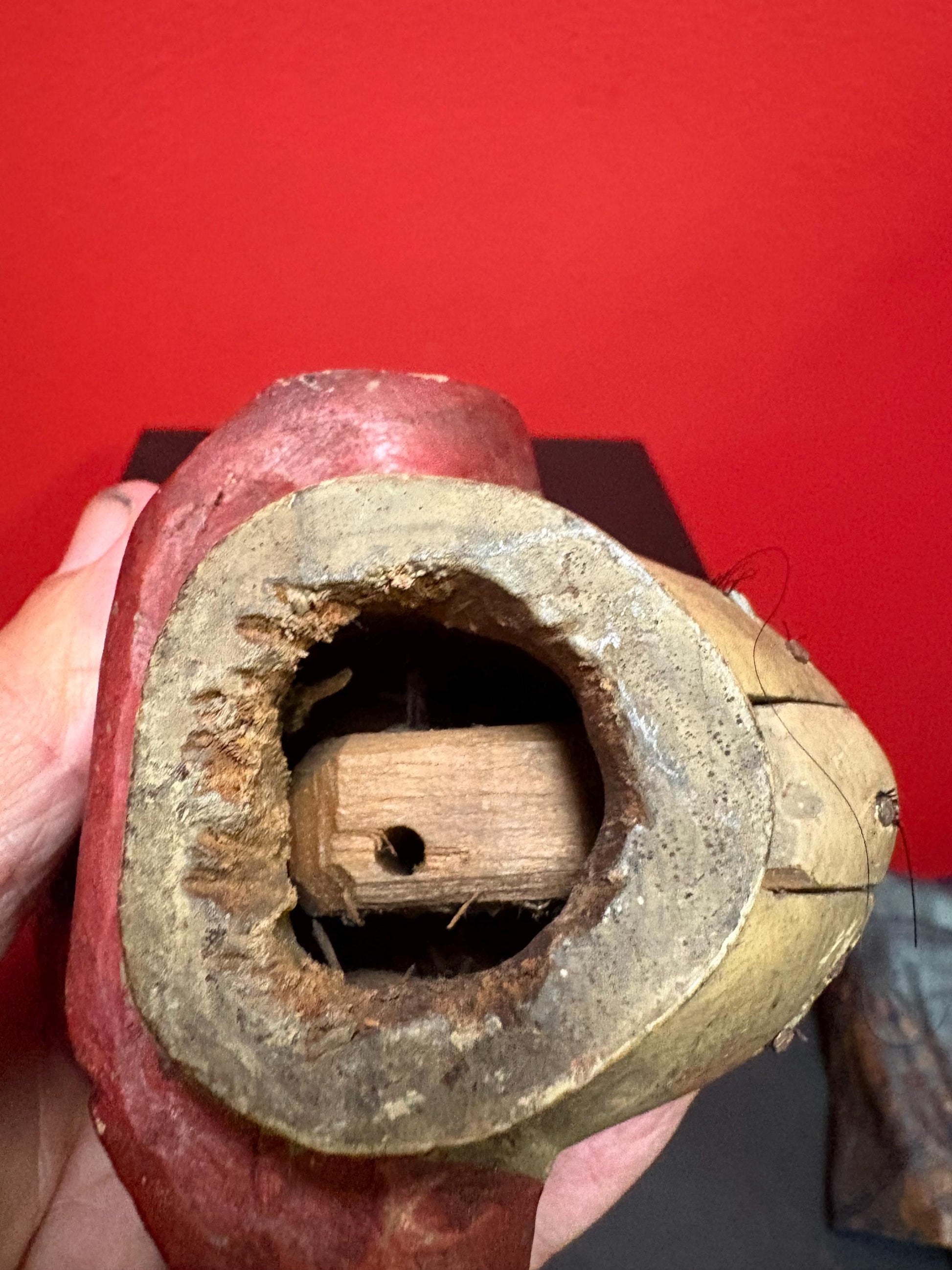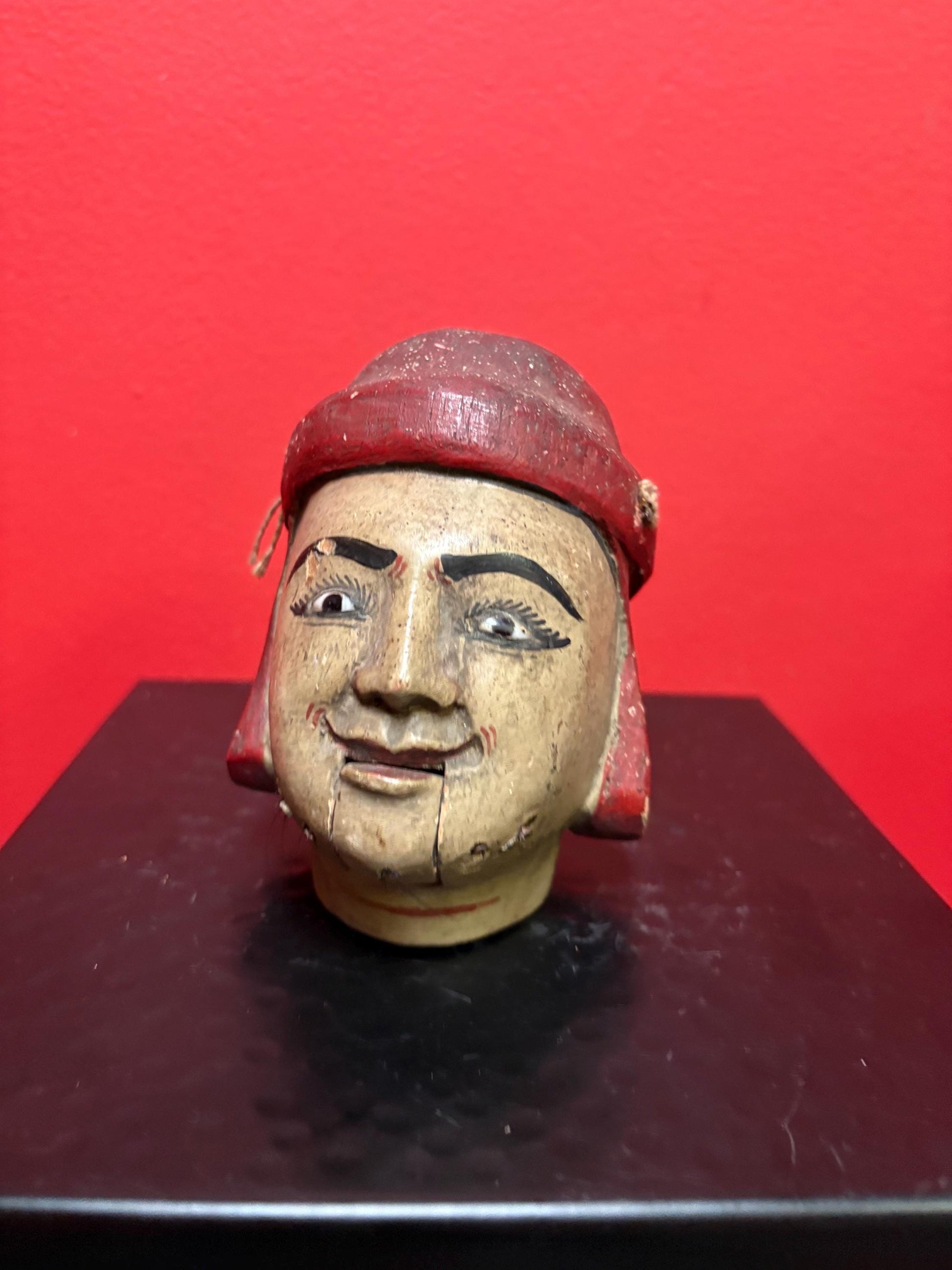 Amazing antique polychrome wooden puppet head 5 inches tall