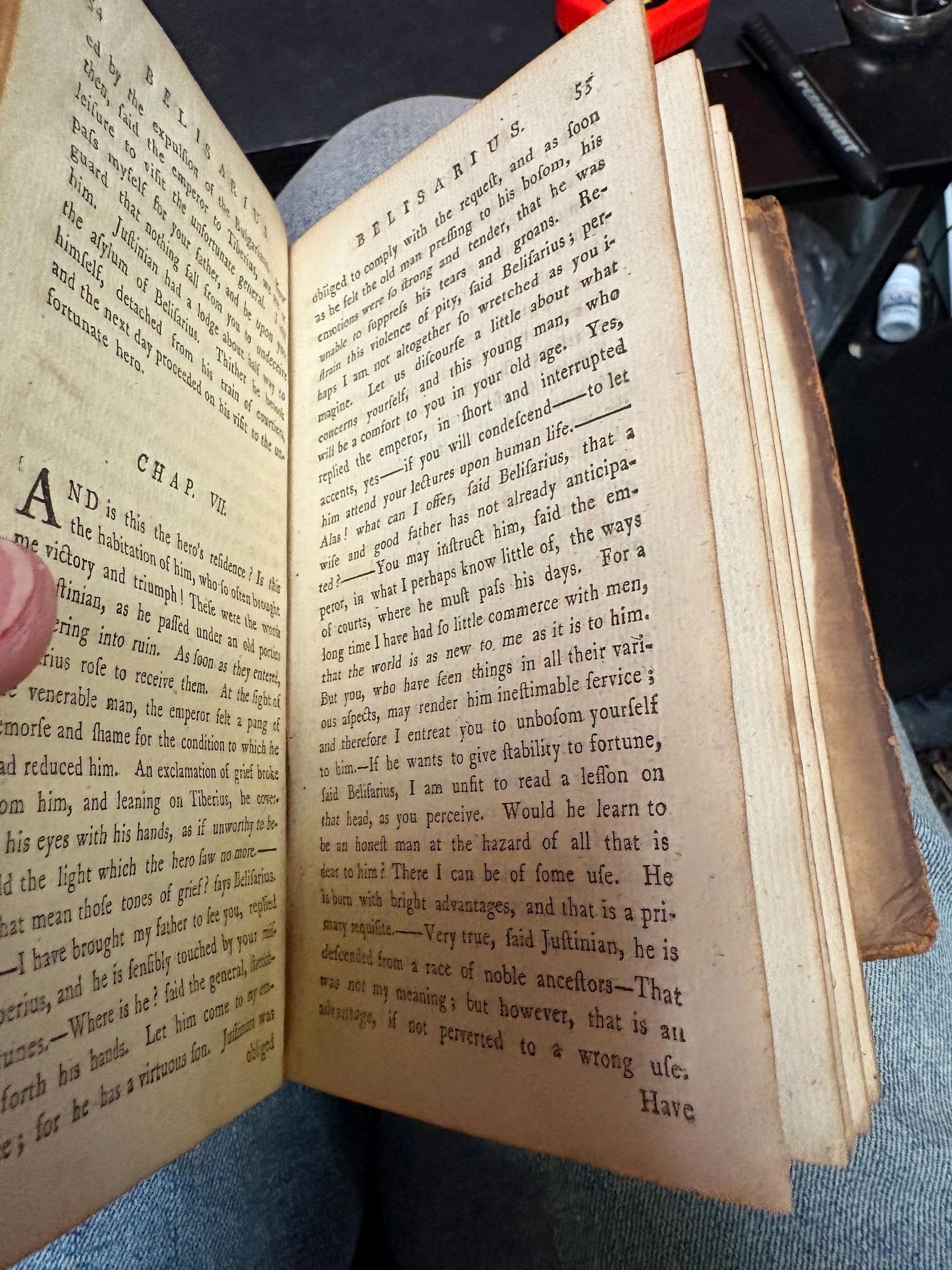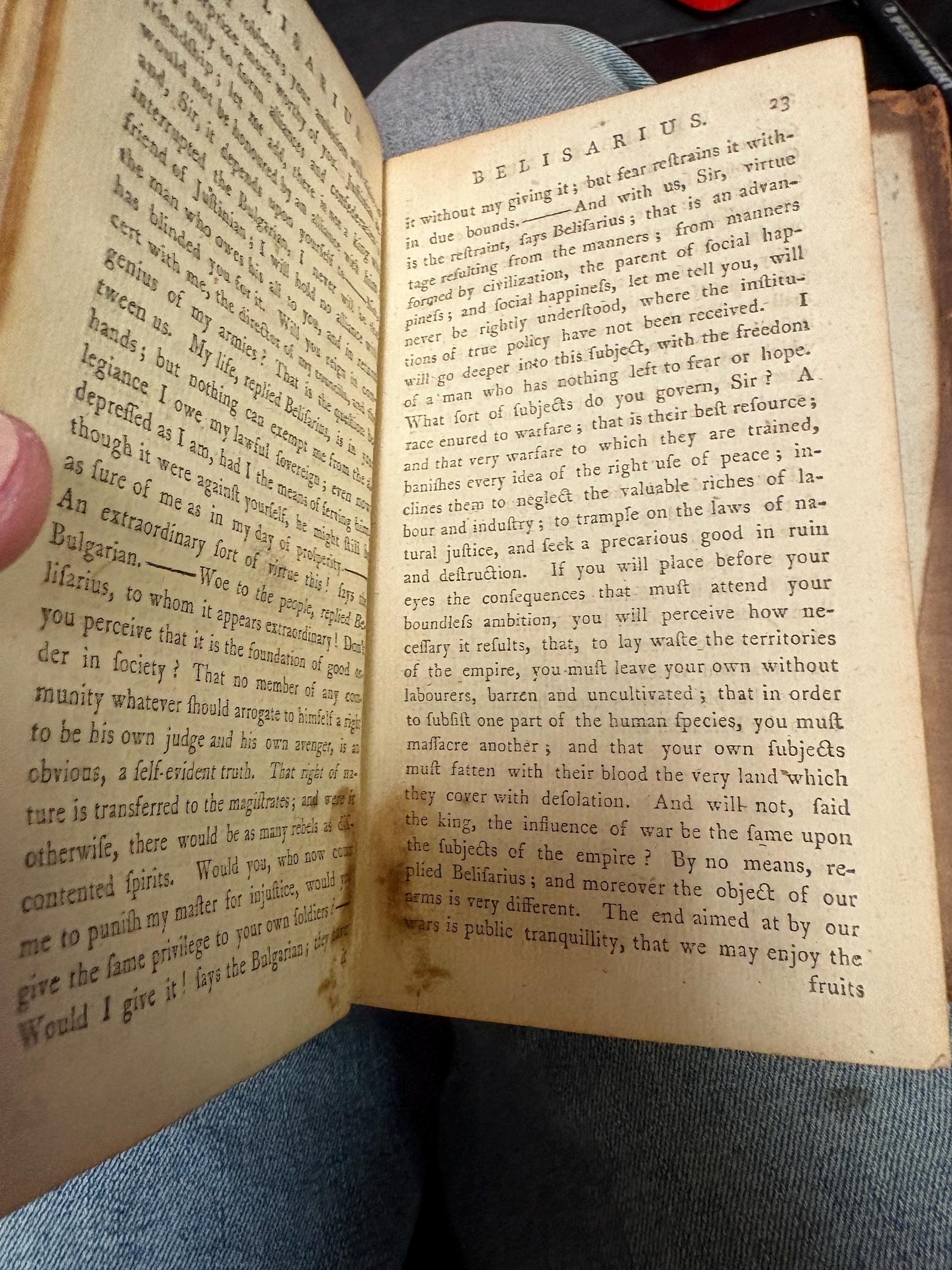 Amazing English first edition 1781 copy of BELISARIUS by M.MARMONTEL in rough condition — still an awesome book for good value