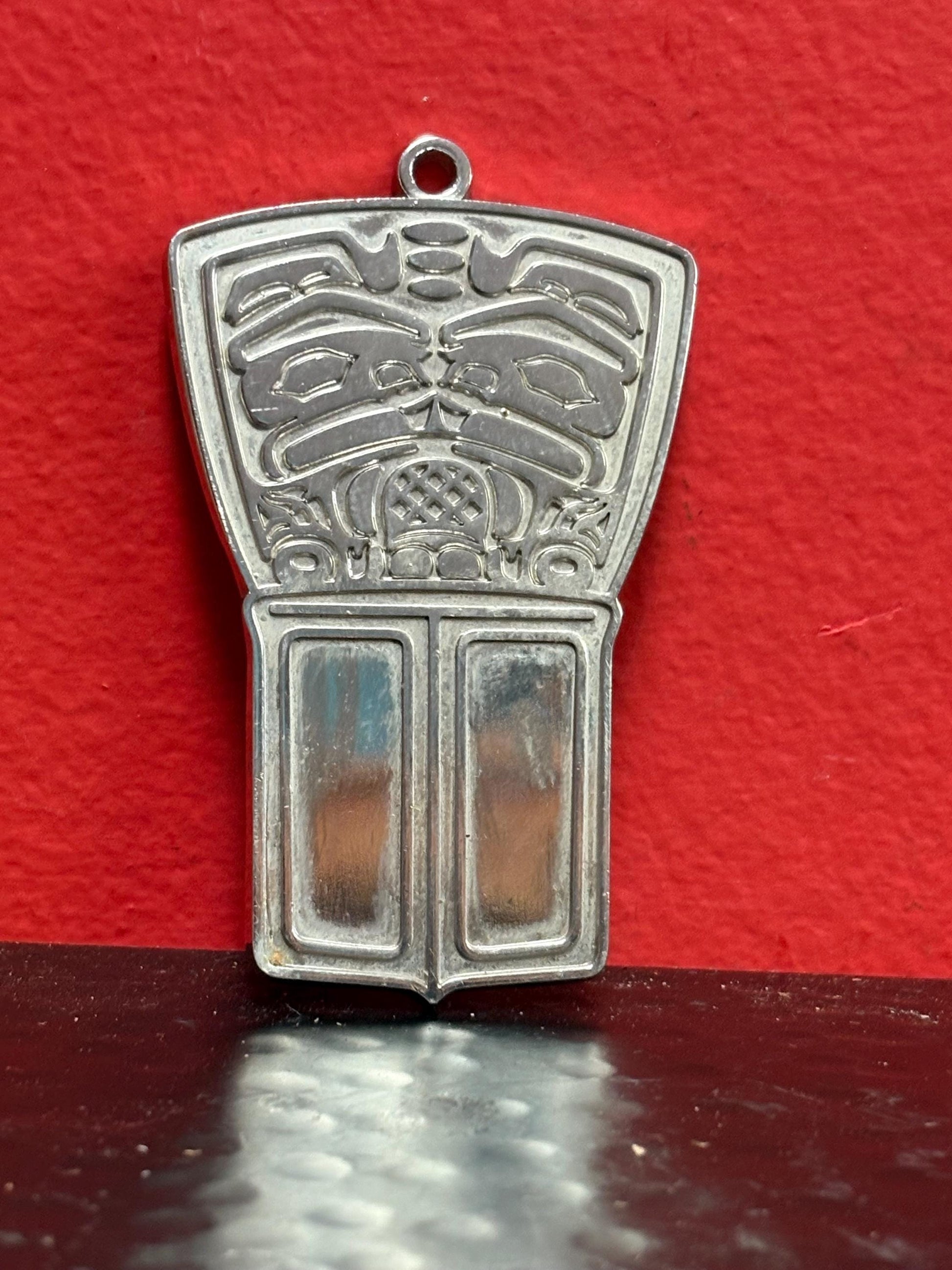 Amazing heavy unsigned, silver indigenous first nation Pacific Northwest coast “copper pendant great detail 3 inches tall
