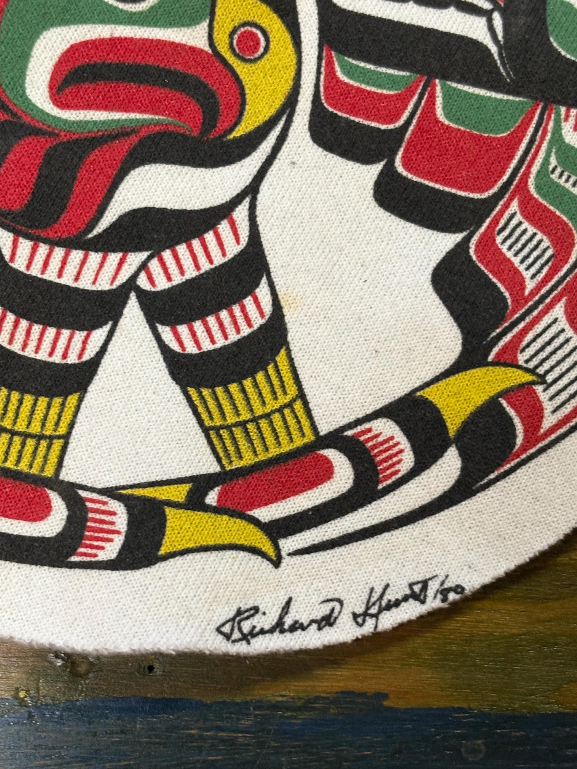 Amazing indigenous first nations Pacific north West Coast signed Richard Hunt felt patch — 11 1/2 inches — wow